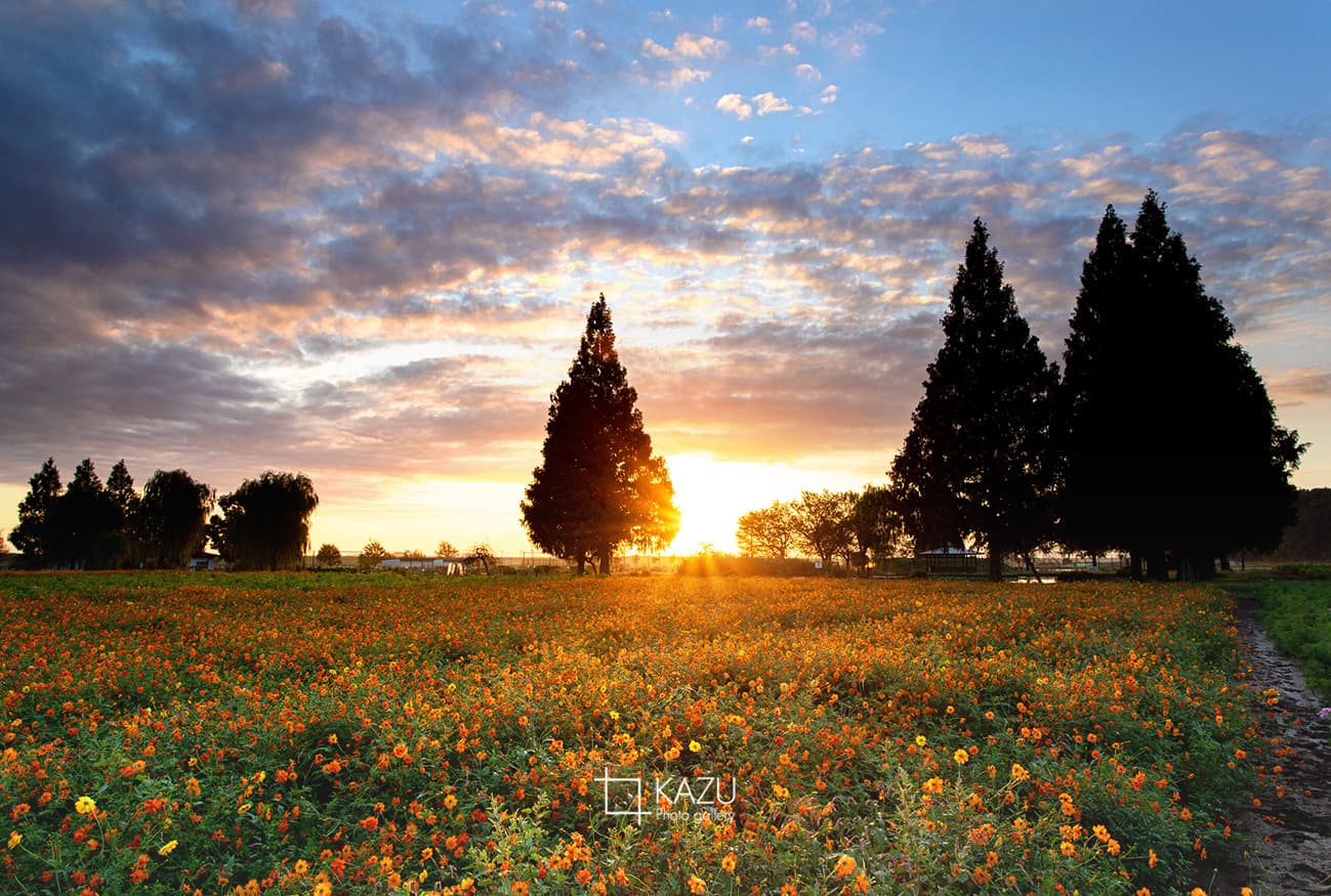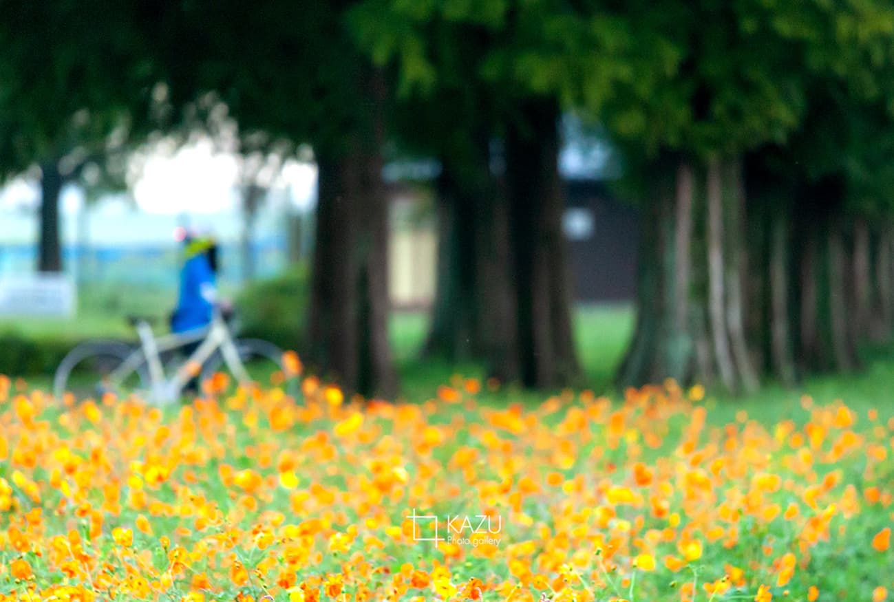 連日の雨でコスモス畑が水浸しです