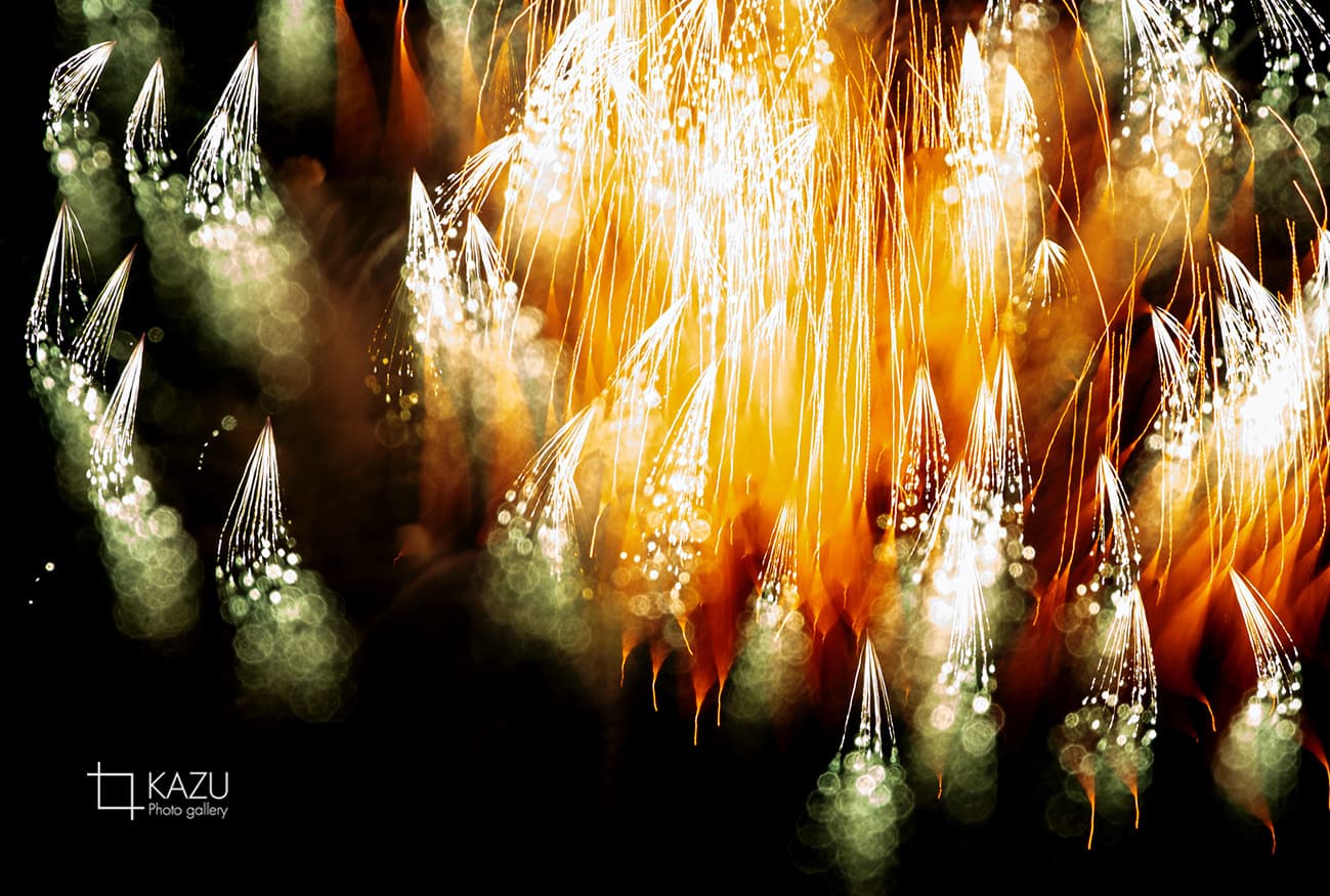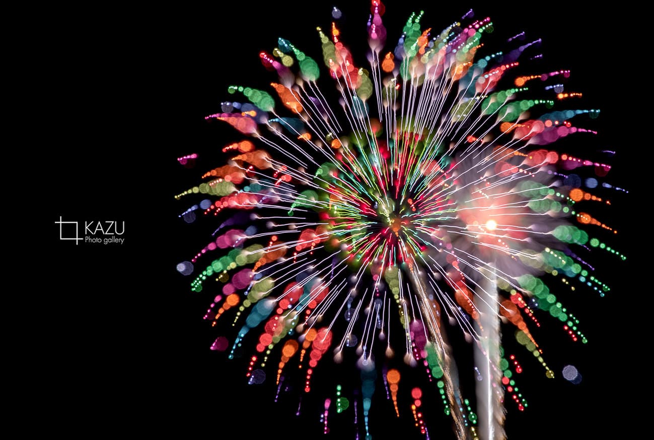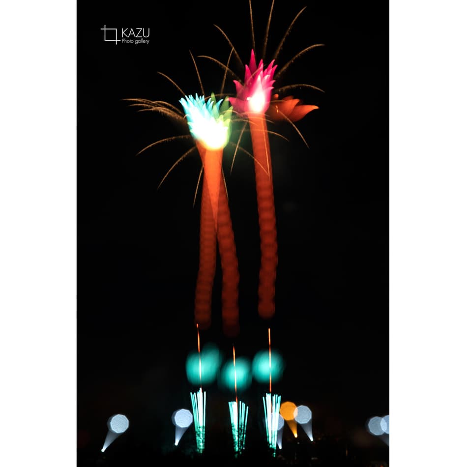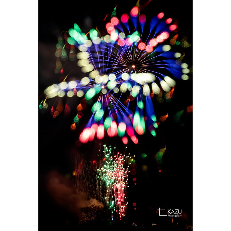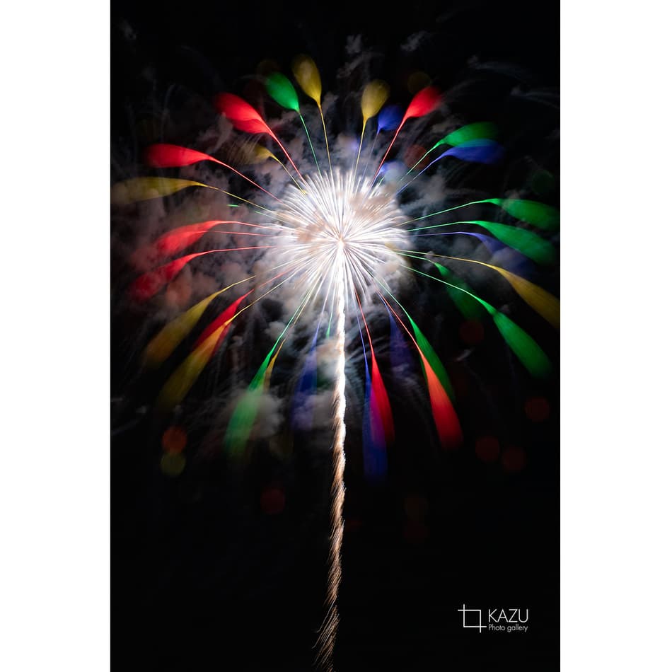 アップで、年々花火は光が強くカラフルになっています、数年前のぼかしたほんわか写真は撮りづらくなりました、シャープでカッコ良い感じで撮りましょう