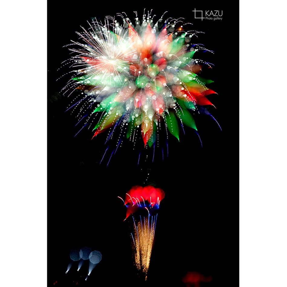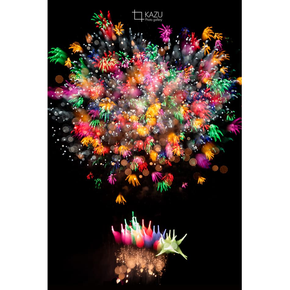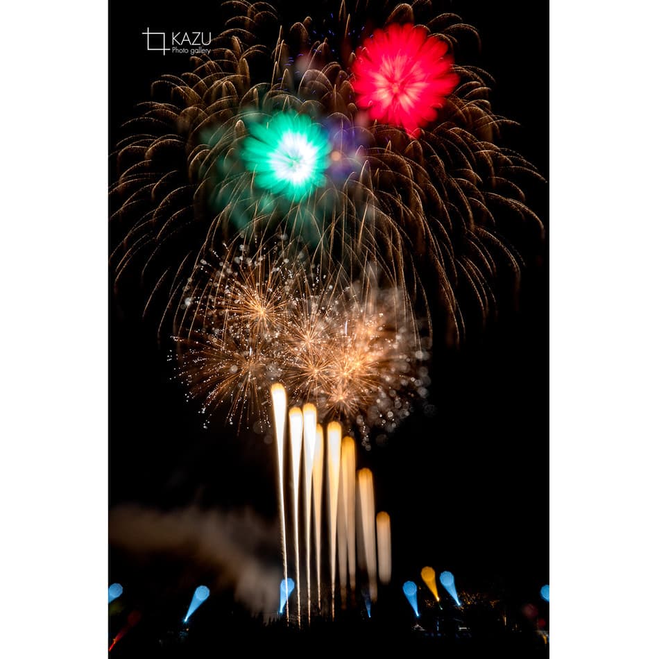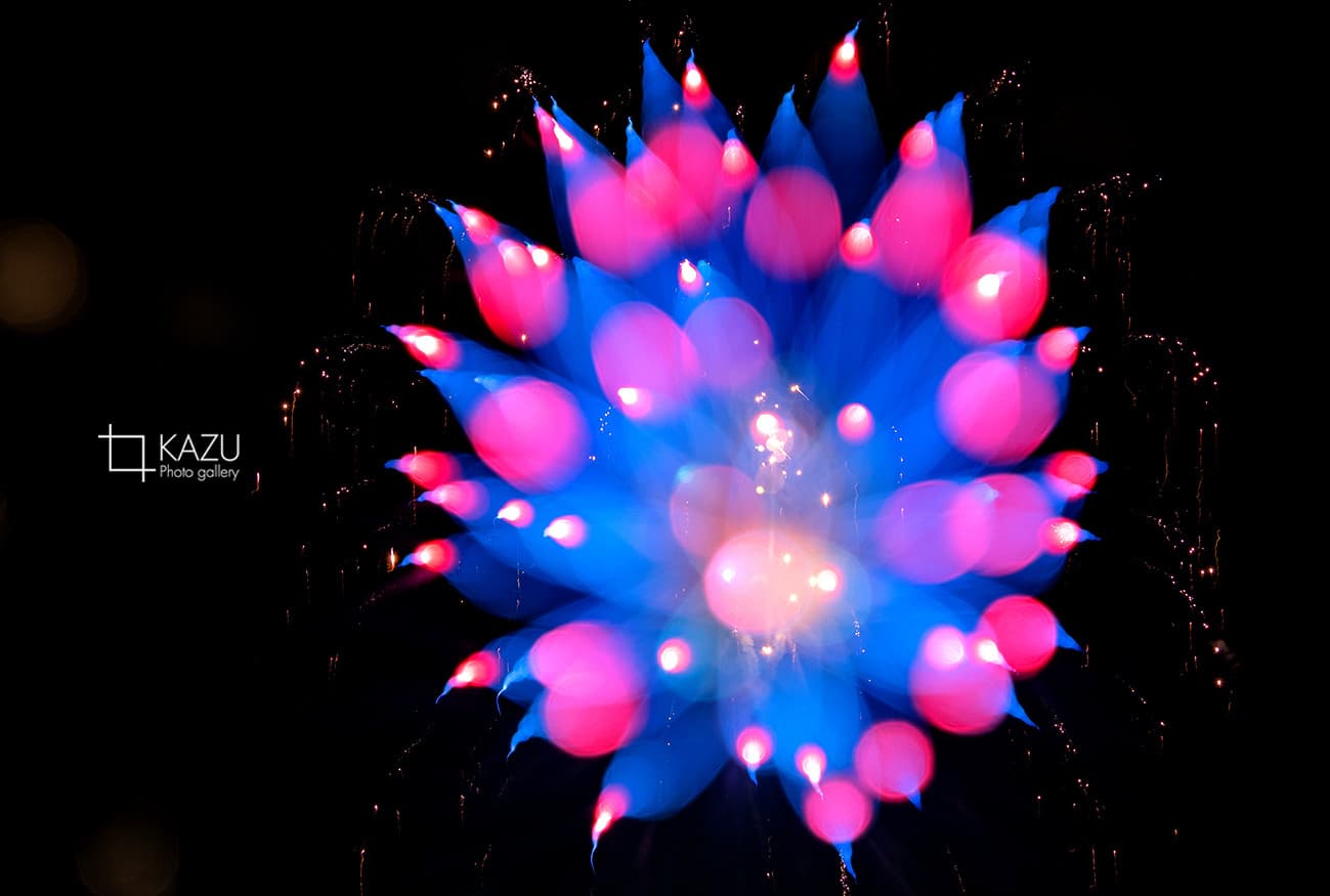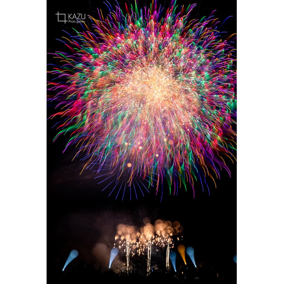 アップで、年々花火は光が強くカラフルになっています、数年前のぼかしたほんわか写真は撮りづらくなりました、シャープでカッコ良い感じで撮りましょう