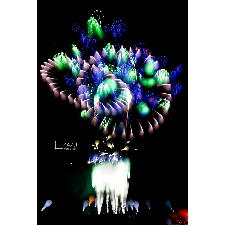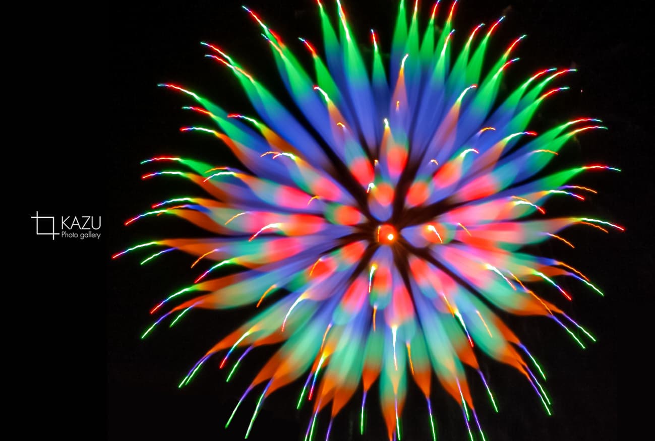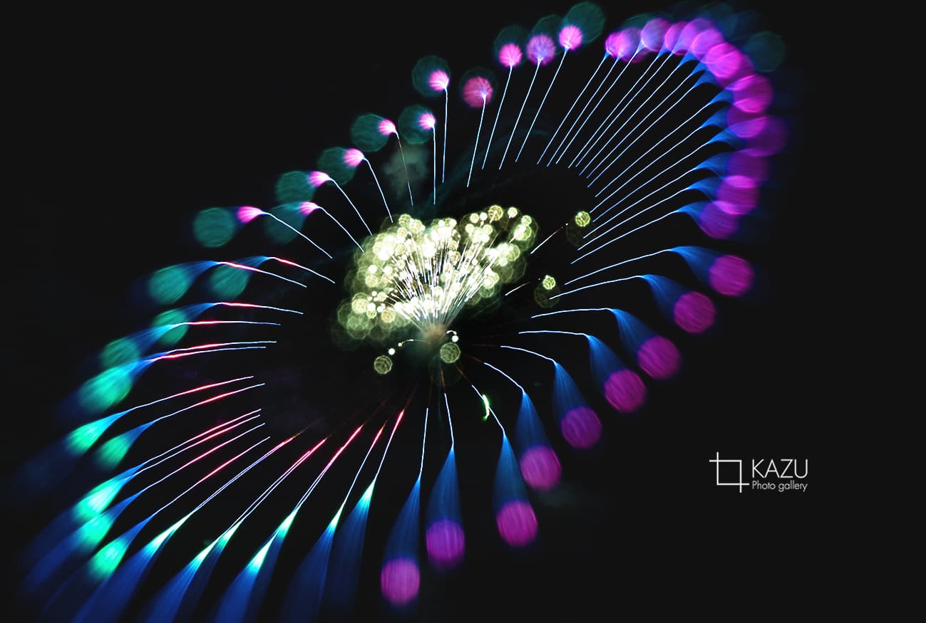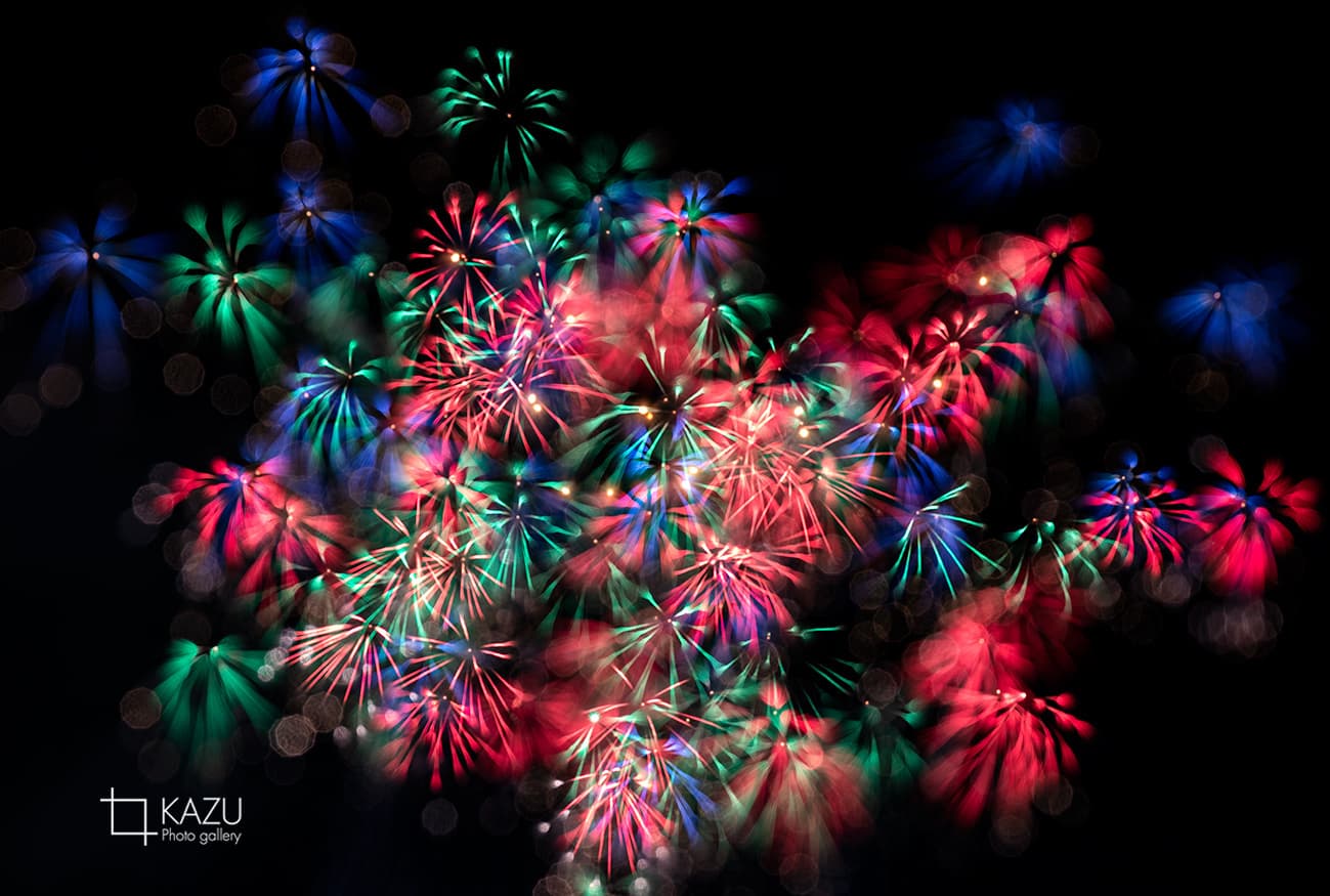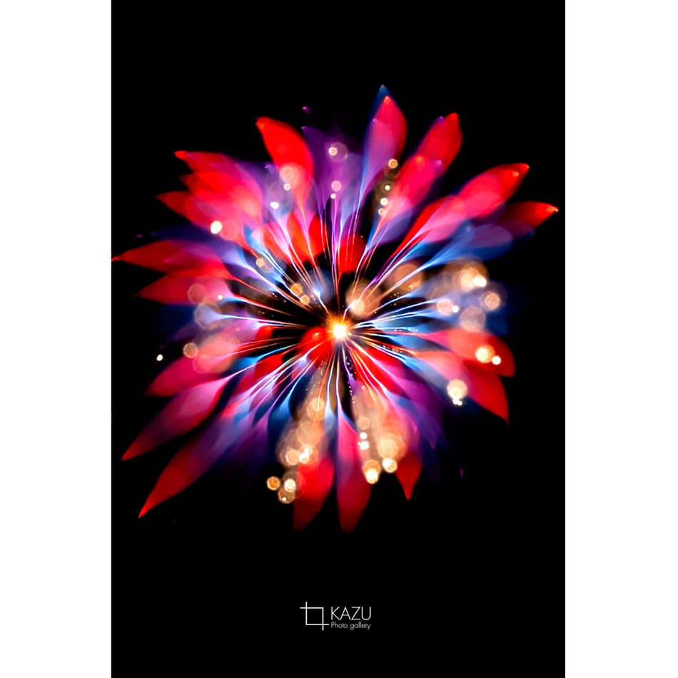 アップで、年々花火は光が強くカラフルになっています、数年前のぼかしたほんわか写真は撮りづらくなりました、シャープでカッコ良い感じで撮りましょう
