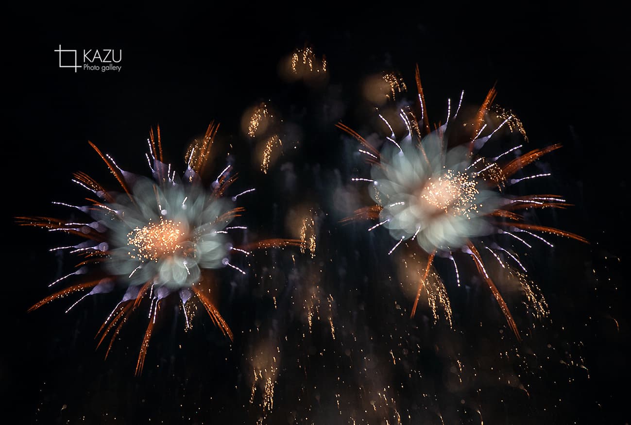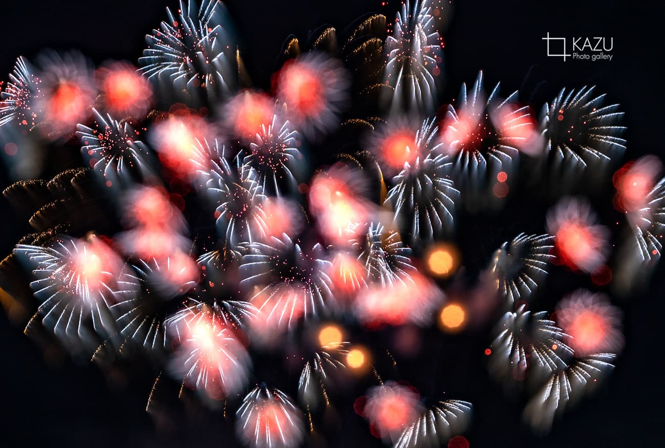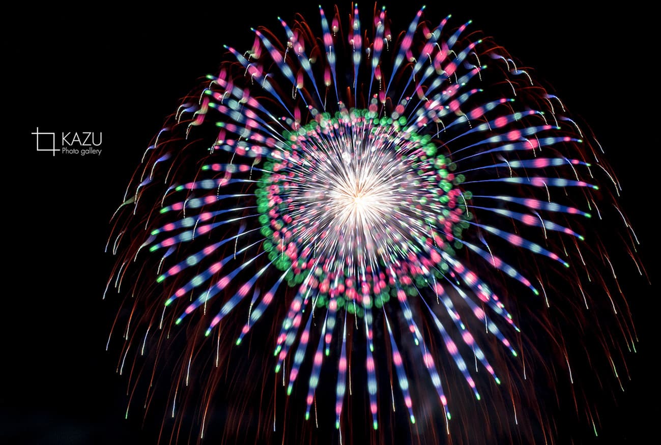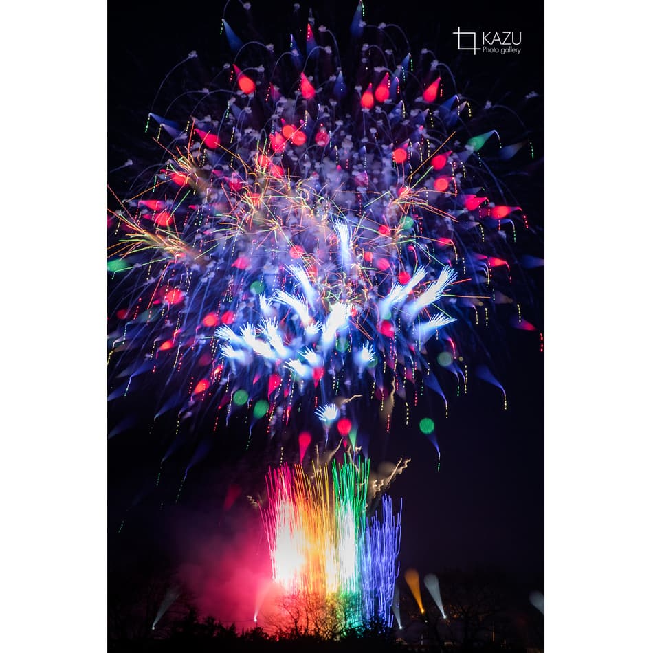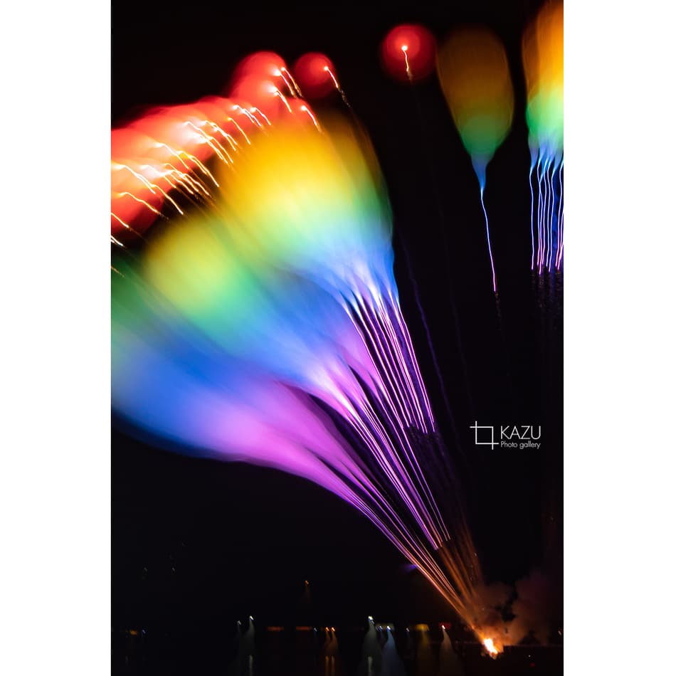 アップで、年々花火は光が強くカラフルになっています、数年前のぼかしたほんわか写真は撮りづらくなりました、シャープでカッコ良い感じで撮りましょう