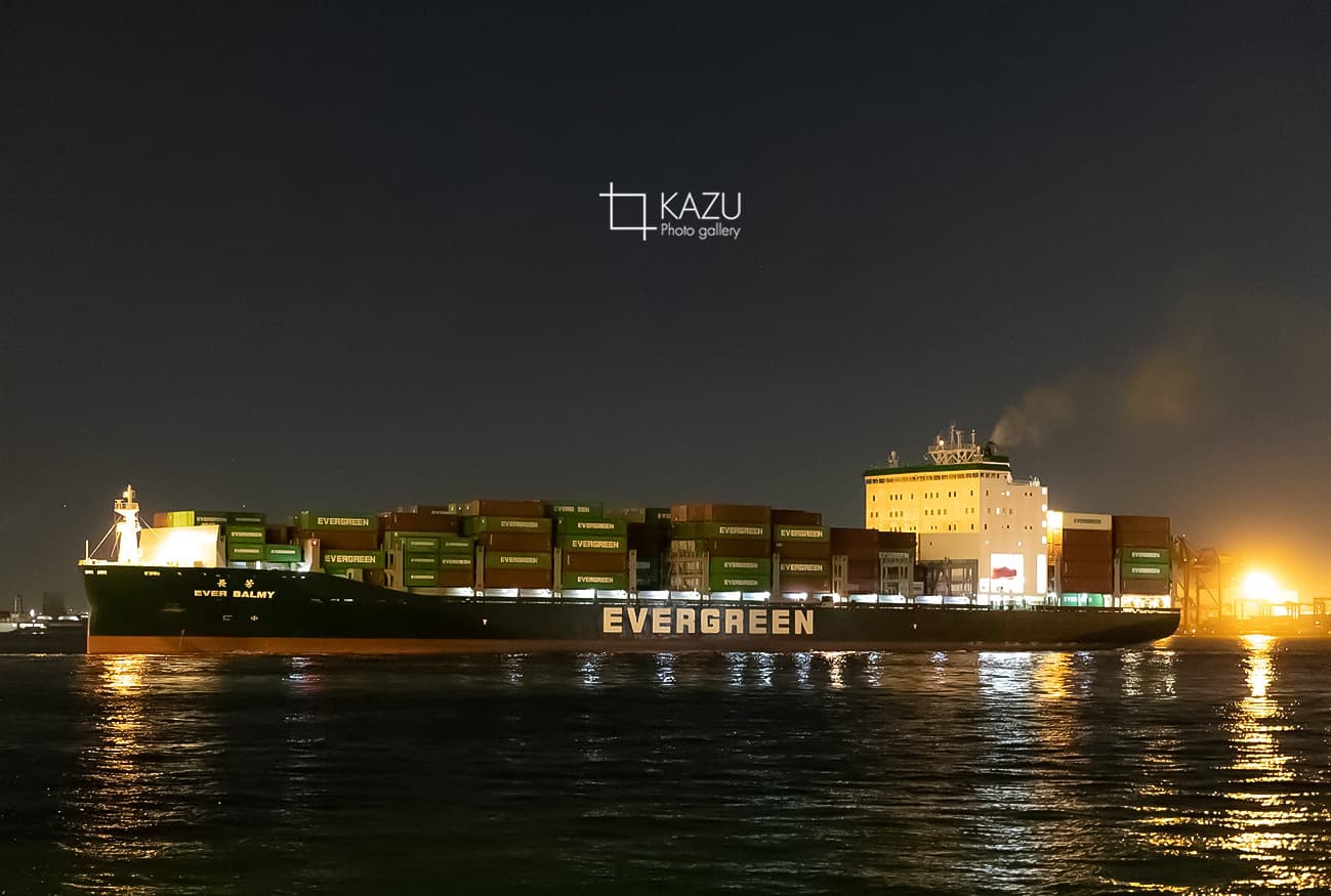 都合よくコンテナ船が出航するところでしたラッキーです