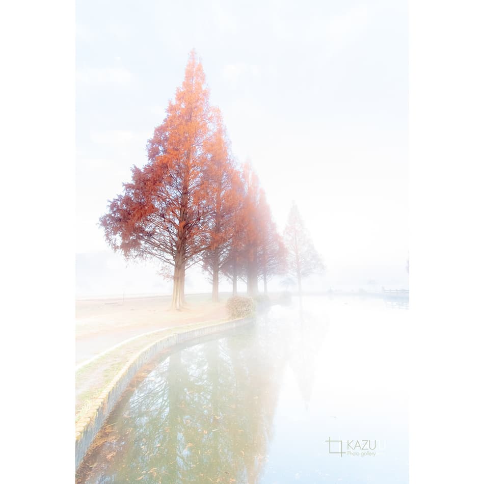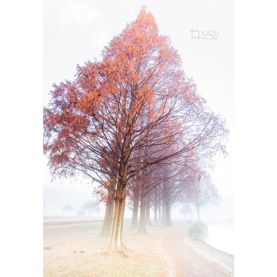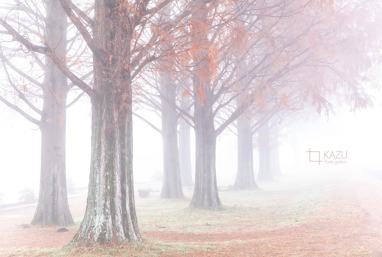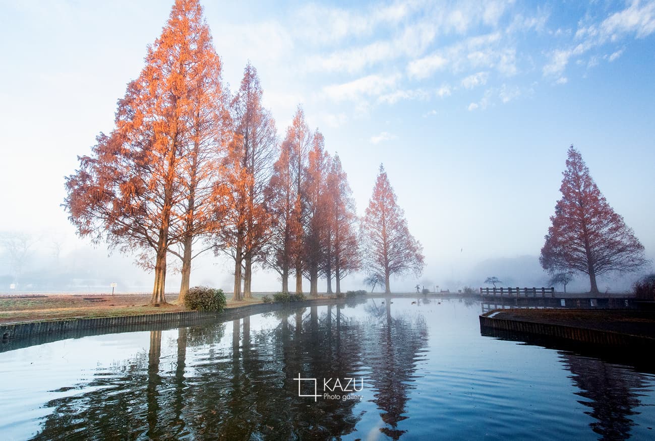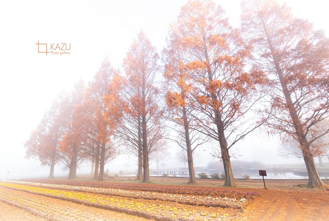 朝起きてみると霧が出ていたのであけぼの山公園のメタセコイヤを撮りに行ってみました、だいぶ葉は落ちてしまったけれどちょうど良い感じ朝日に照れされ綺麗です