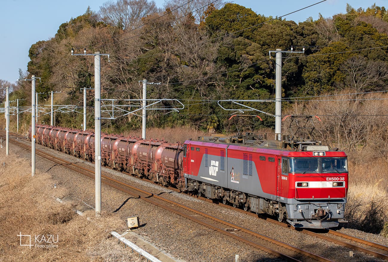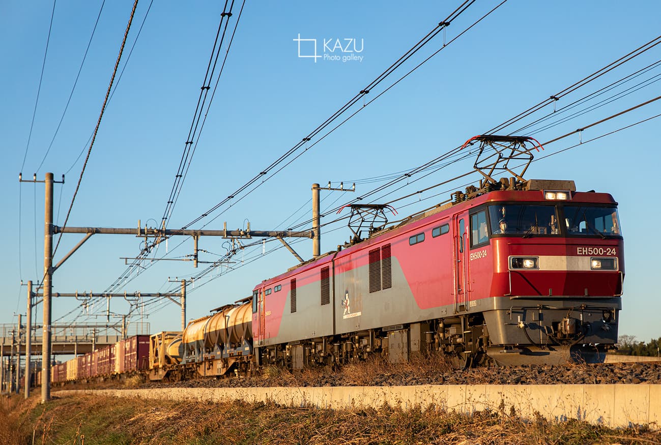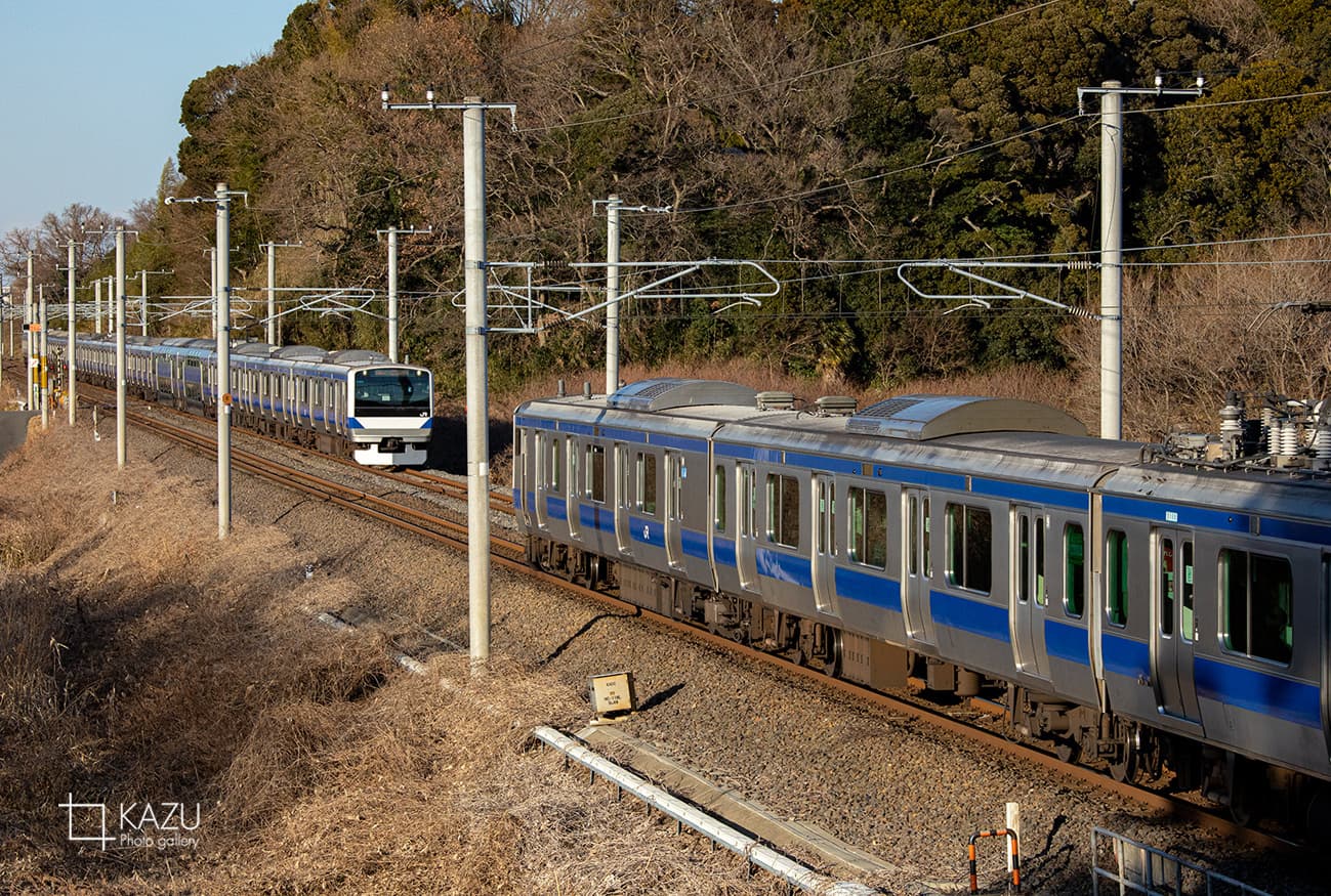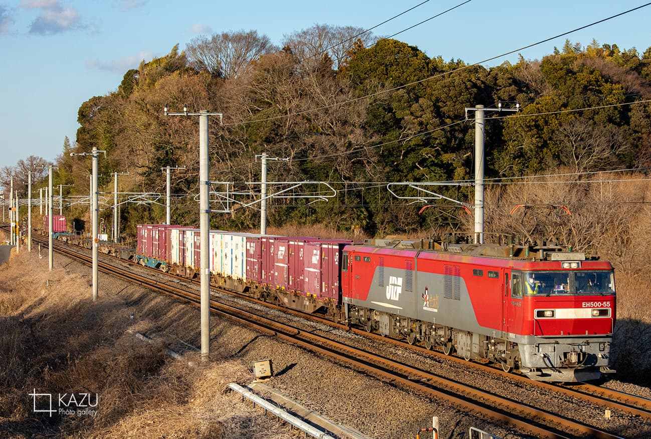 今日も朝から天気が良いので常磐線撮影、56MにK17が入っていたけれど朝一の貨物と被りそうだしな〜と考えながらインカーブはやめて踏切付近にしたらここで裏被りです貨物撮ってすぐに三脚まで戻って撮影ですギリギリセーフ