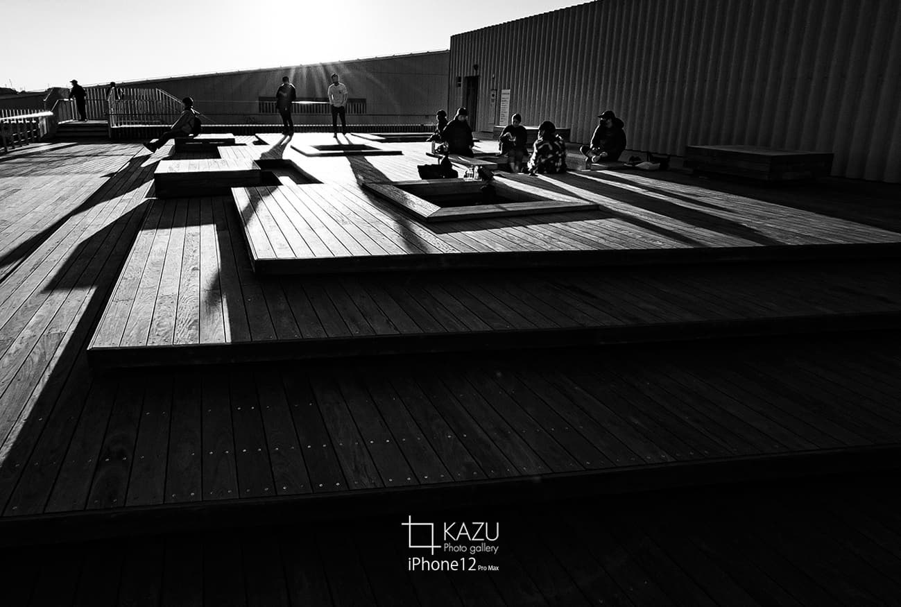 どこか時間をつぶせる所はないかと羽田天空橋に2023年にOPENするHANEDA INNOVATION CITYまでちゅしゃ料金は安いし周りに高い建物がなく好きな場所です、足湯があるので入ってみたいけれど未体験です、逆光の影が長く伸びていたので撮ってみました