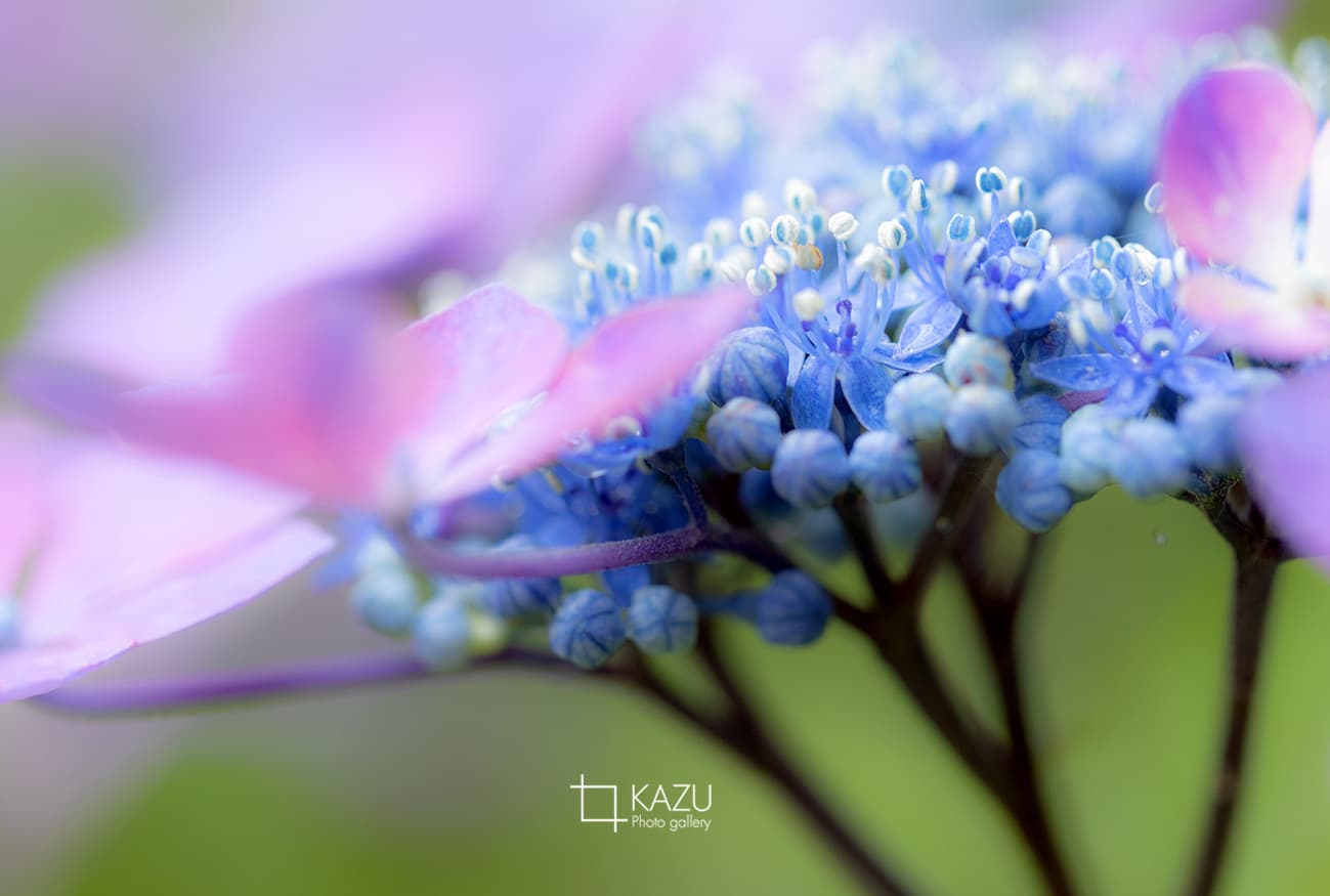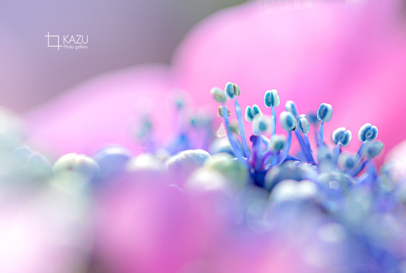 自宅のガクアジサイが綺麗なので撮ってみました、こんな世界に入り込んで散歩でもしてみたいな〜