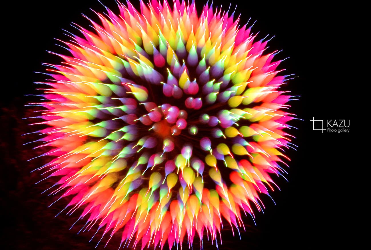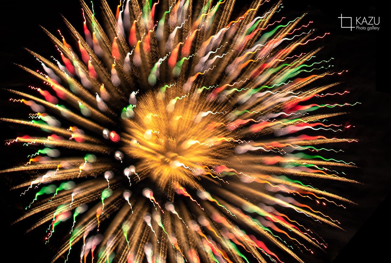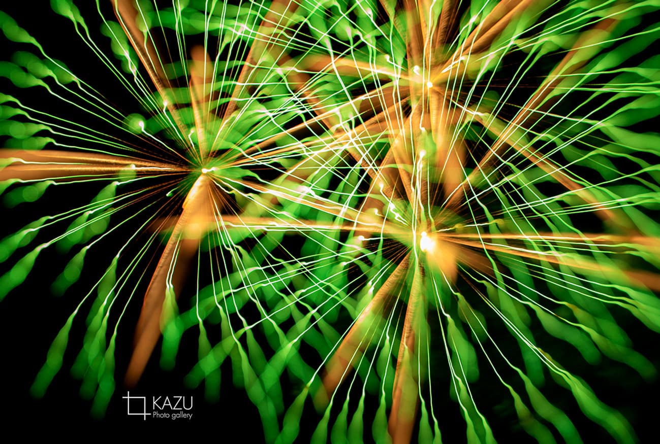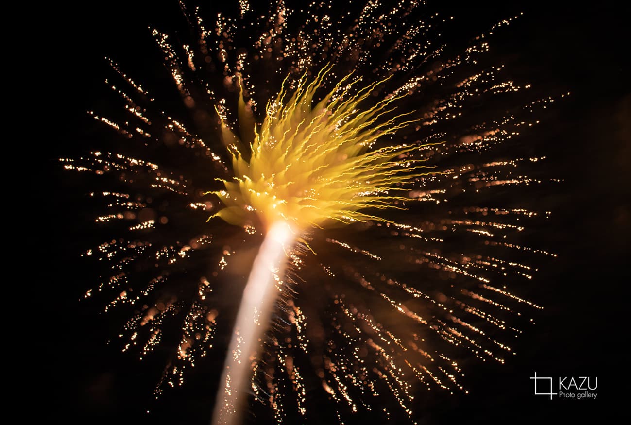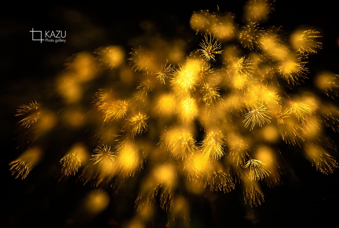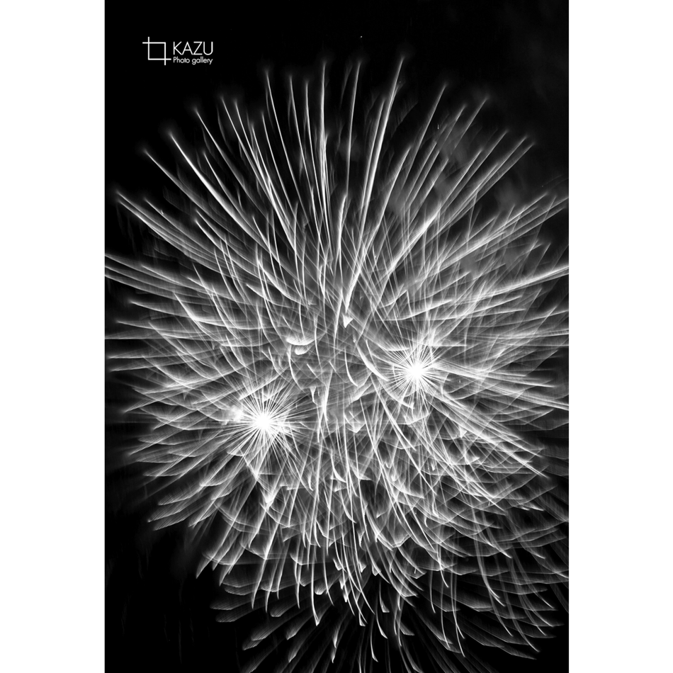 昨日の続き、金色一色の花火をモノクロで見慣れた花火も色を抜くと造形の面白さが見えてきます