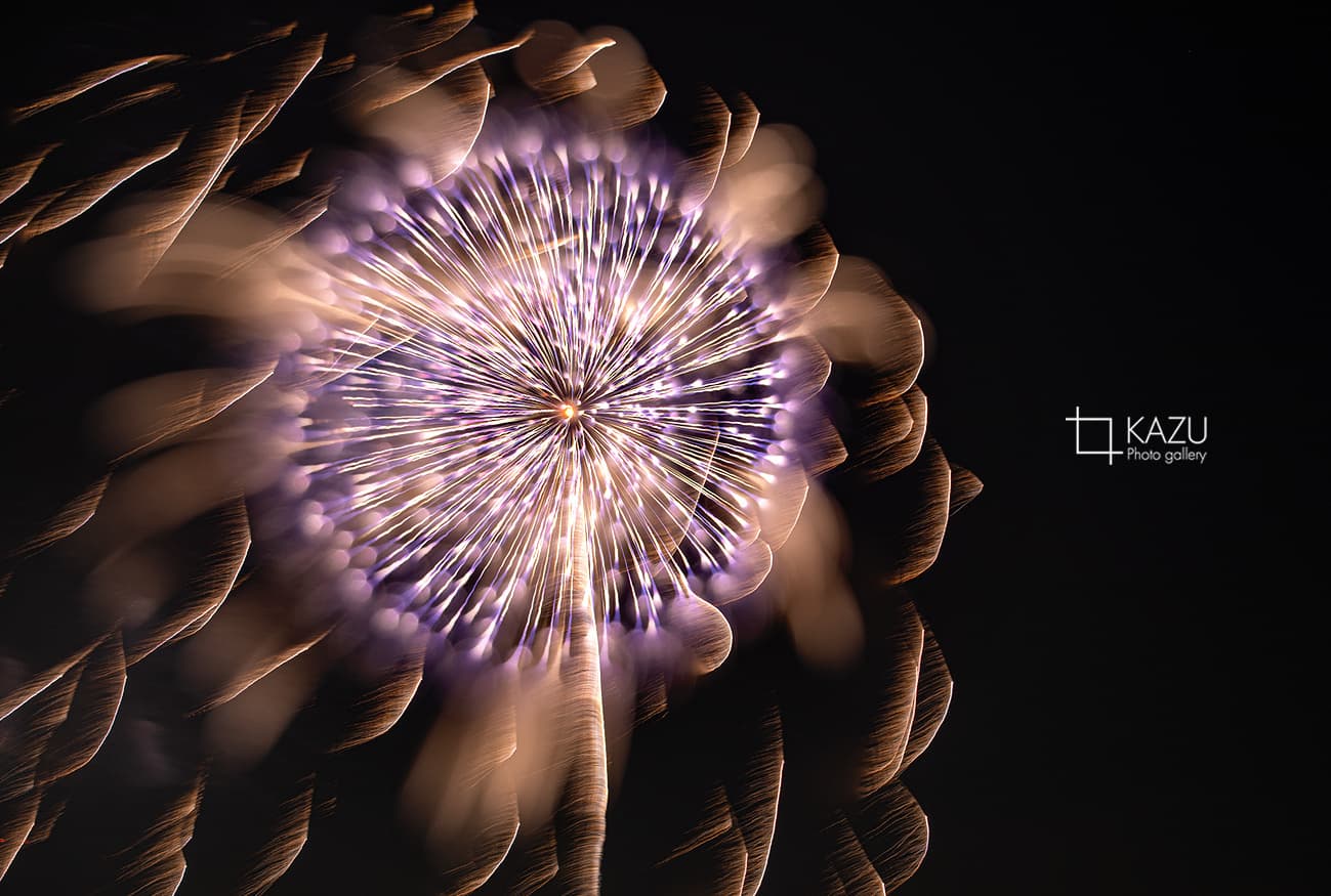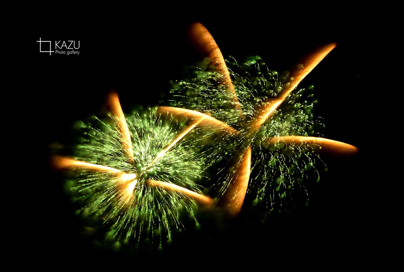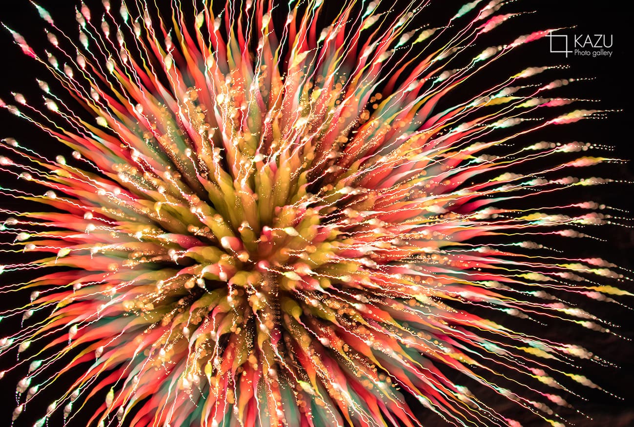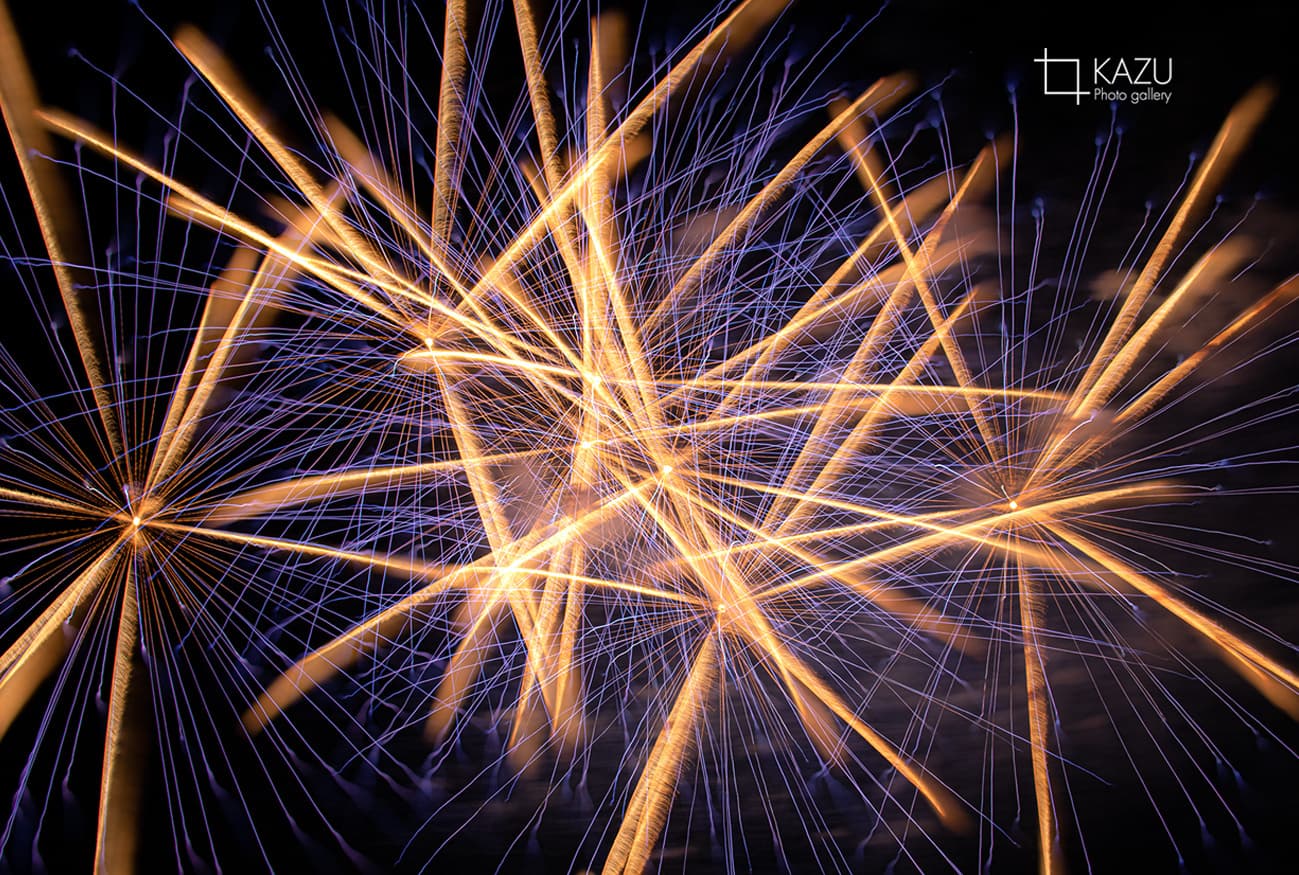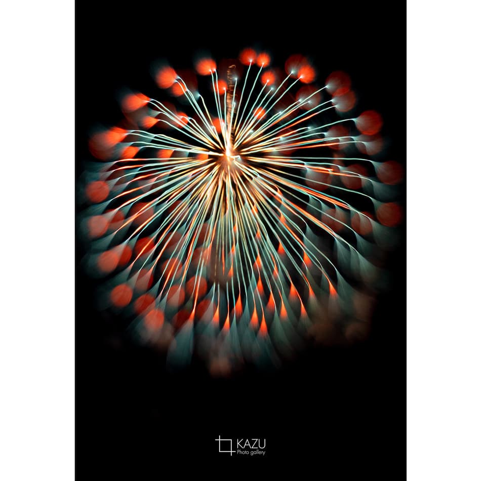 昨日の続き、金色一色の花火をモノクロで見慣れた花火も色を抜くと造形の面白さが見えてきます