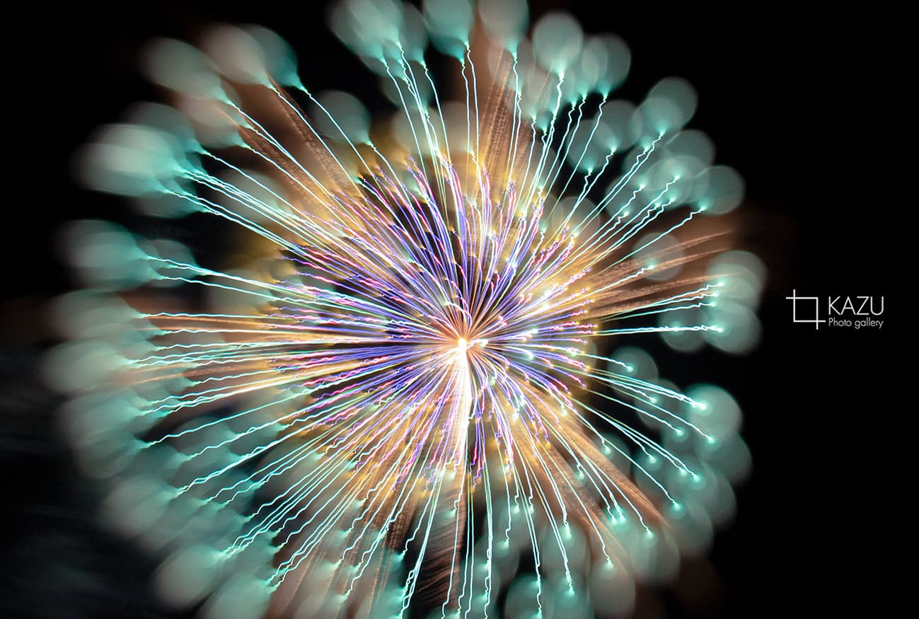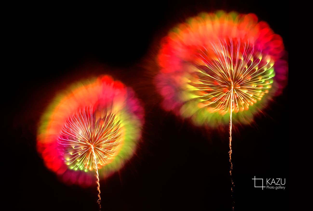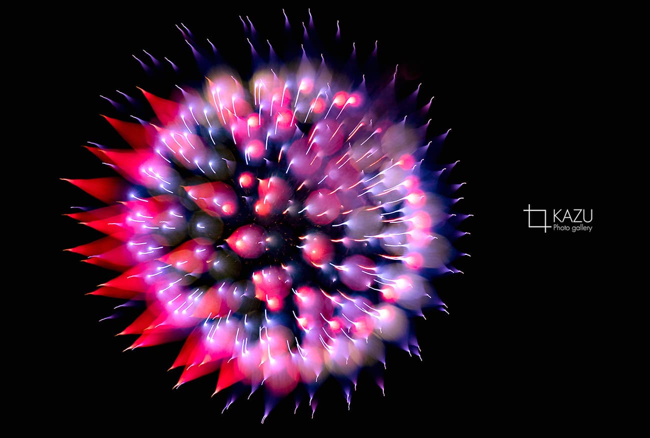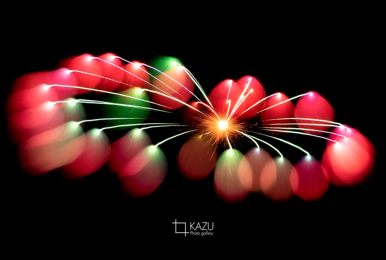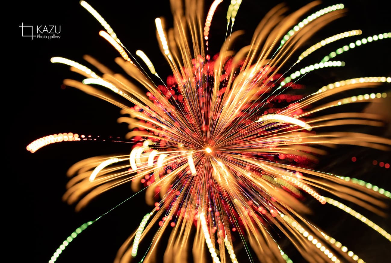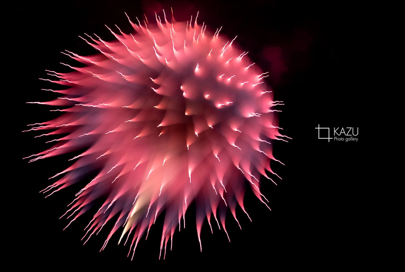 昨日の続き、金色一色の花火をモノクロで見慣れた花火も色を抜くと造形の面白さが見えてきます