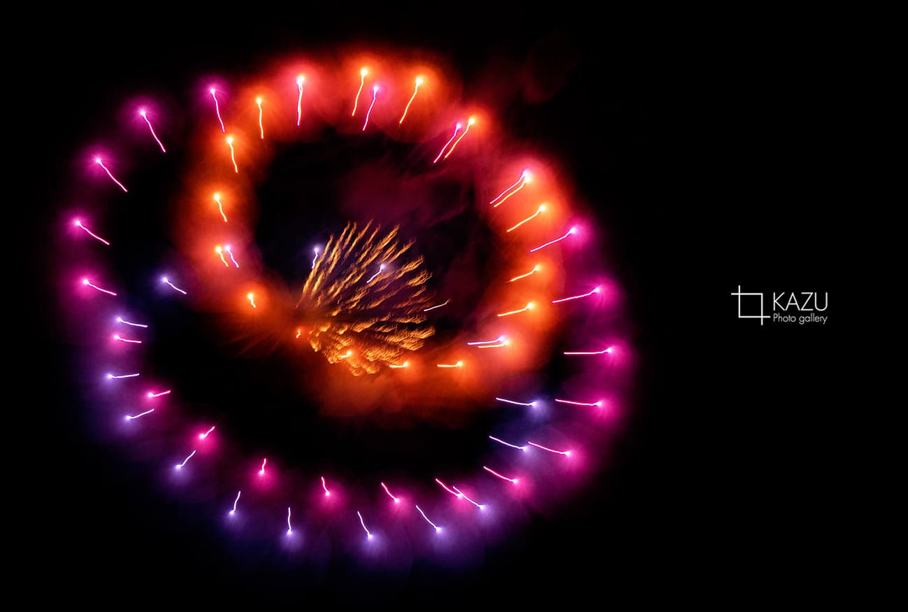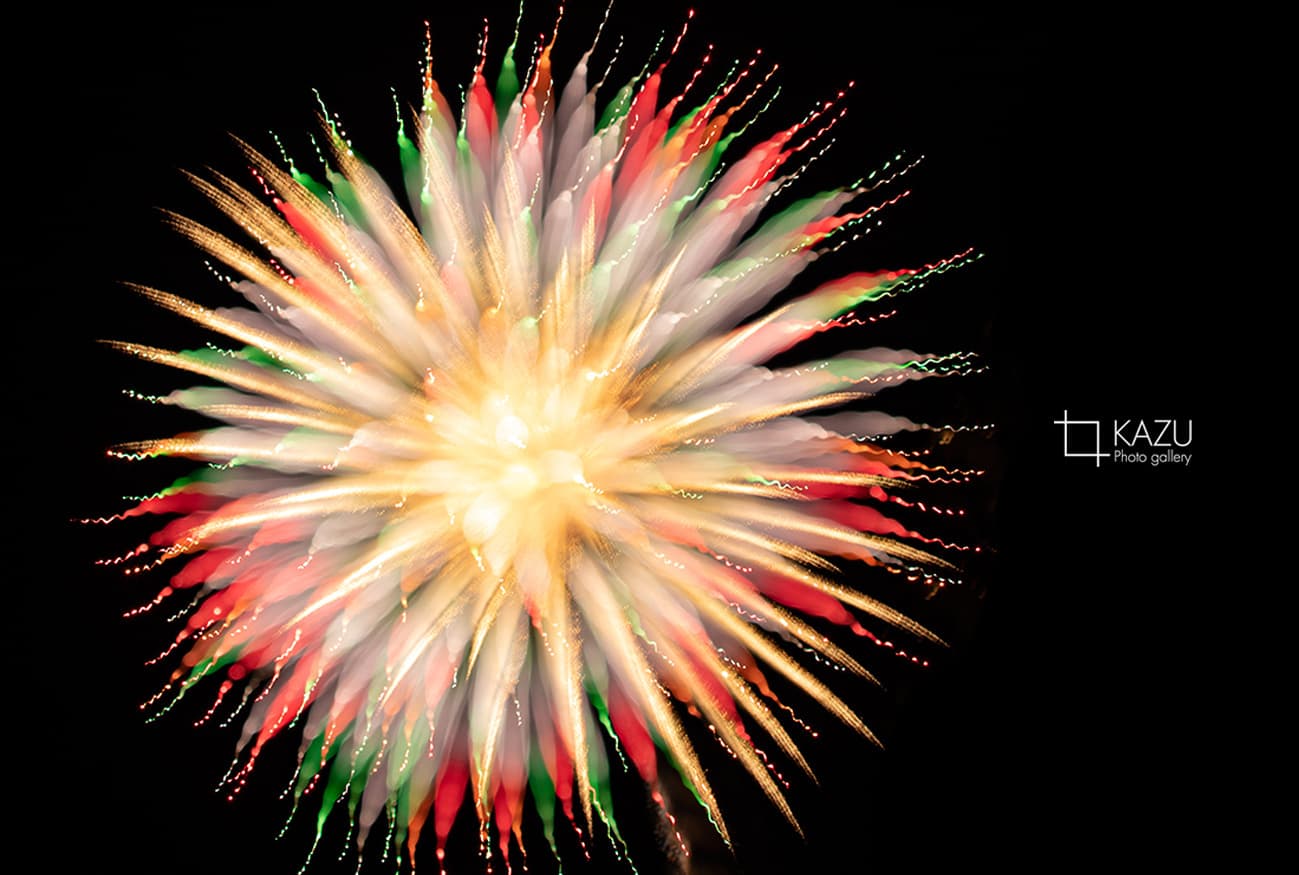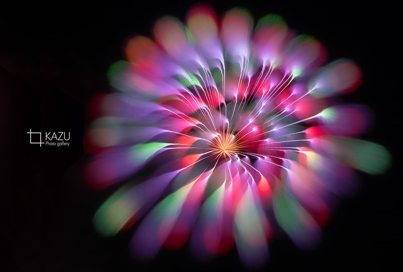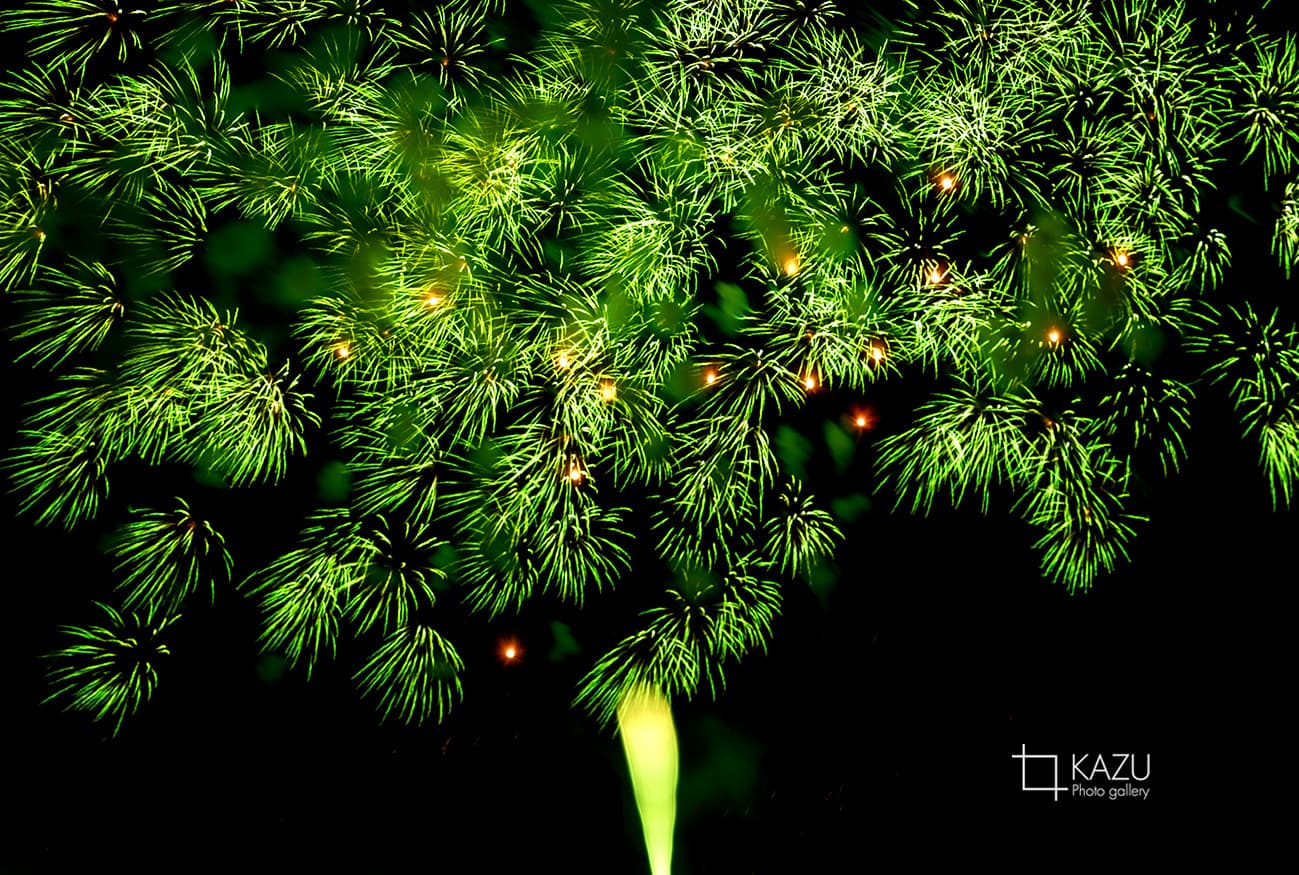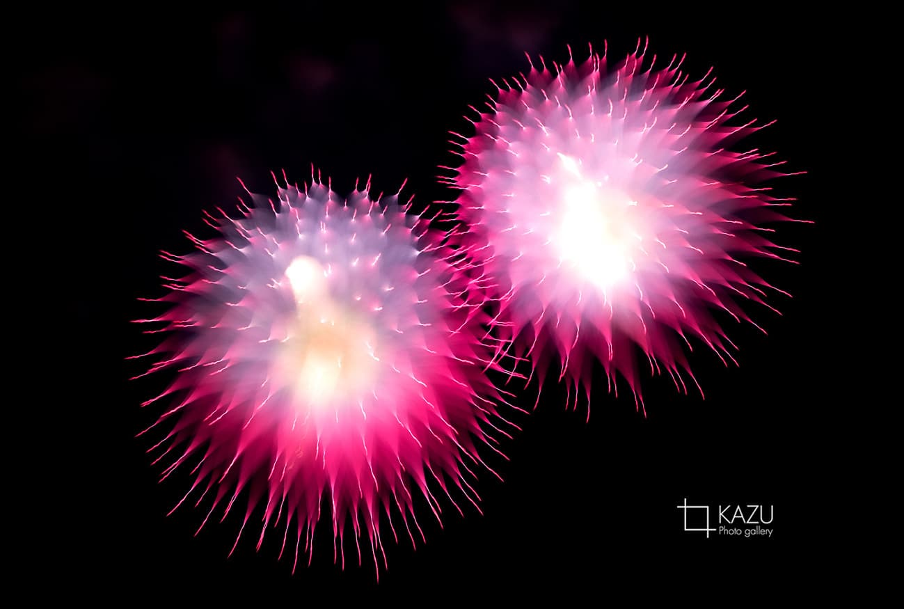 昨日の続き、金色一色の花火をモノクロで見慣れた花火も色を抜くと造形の面白さが見えてきます