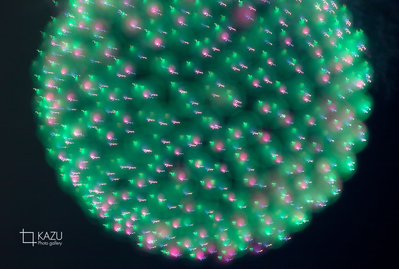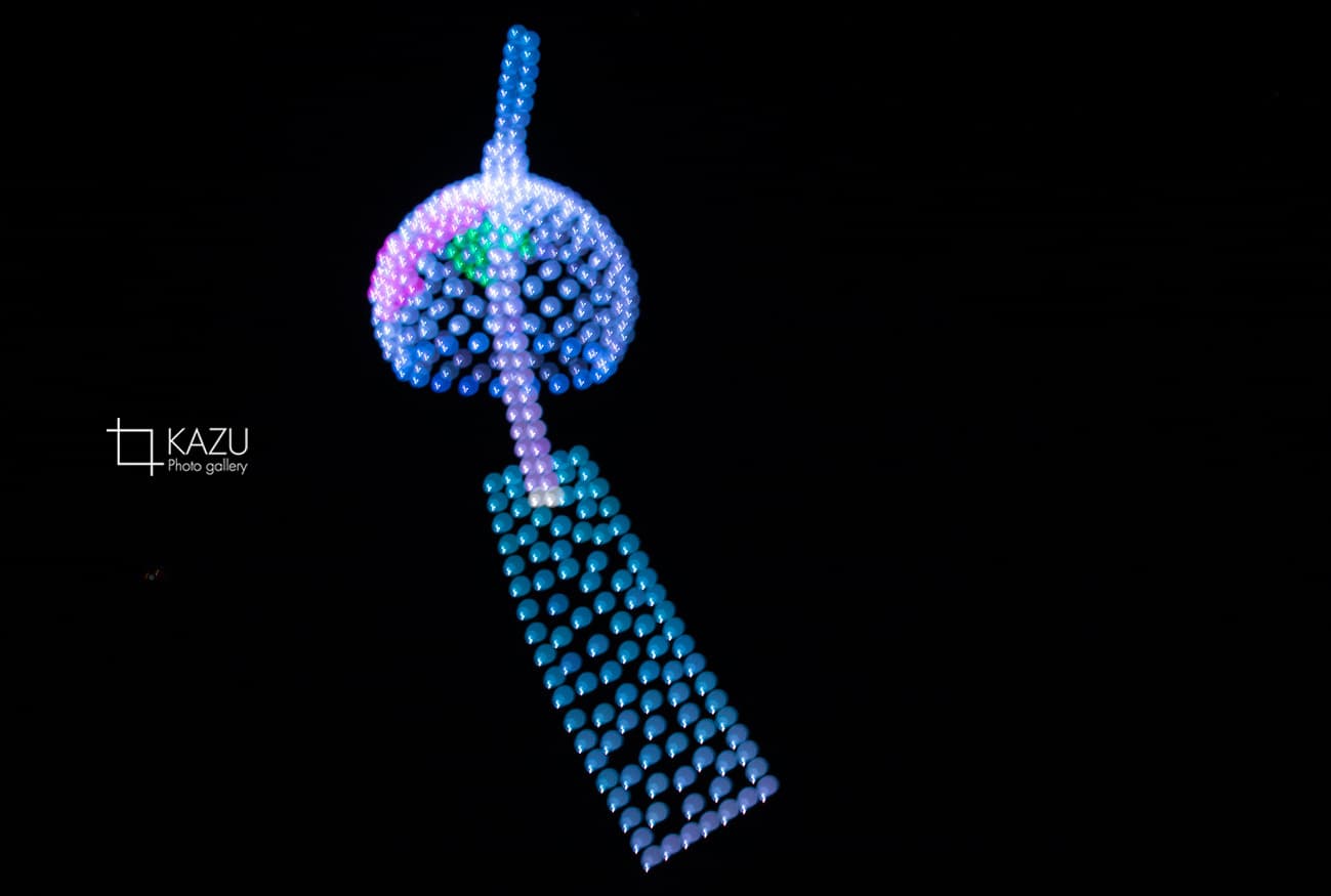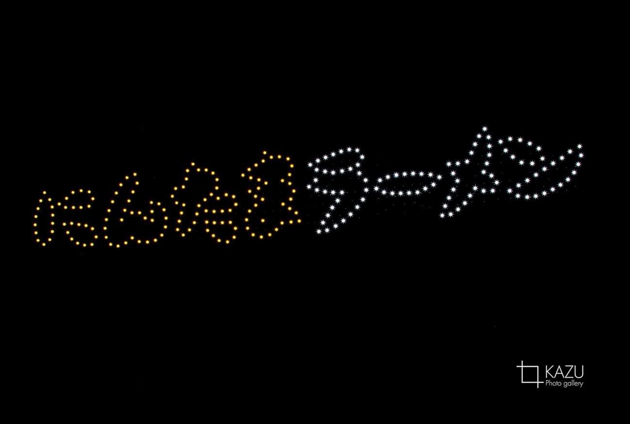 フィナーレの最初にドローンショー、取手の田舎なのでたいした事ないだろうと待っていると良い感じです夏の風物詩が次々と空に描かれました後半は企業の宣伝です時代は変わりました仕掛け花火はなくなりドローンです