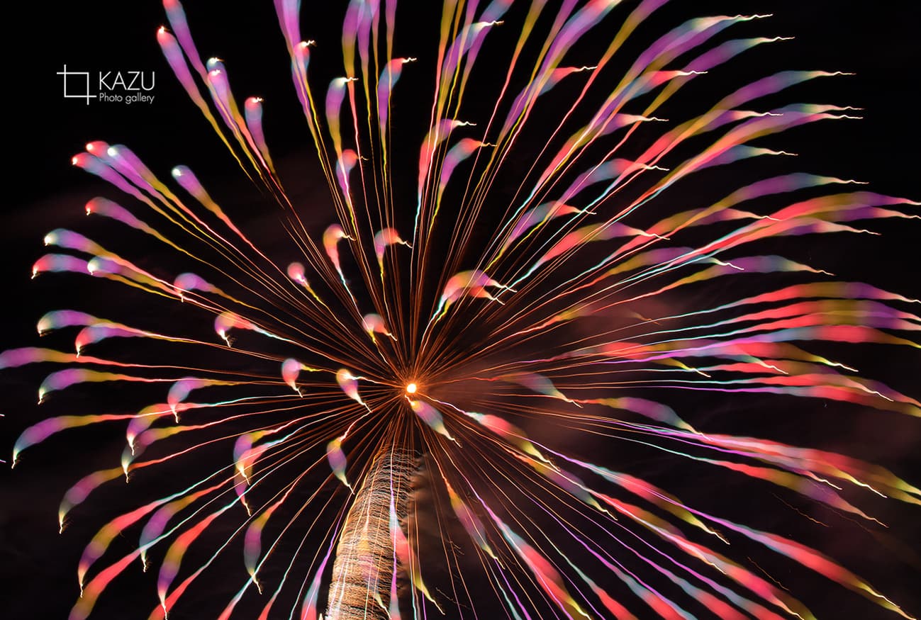 花火は派手さはないけれど10号球、ミュージックスターマイン、4号球+スターマインとオーソドックスな構成で撮りやすい花火でした打ち上げは山崎煙火製造所です取手の花火と同じ玉も上がっていました