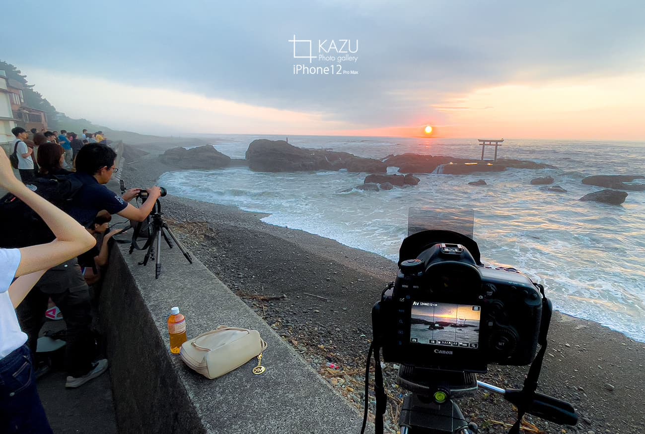 夏休みなので日の出の時間が近づくと宿泊客がどんどん出てきて結構な人数になりました私の右側にも多くの人が日の出をみにきています