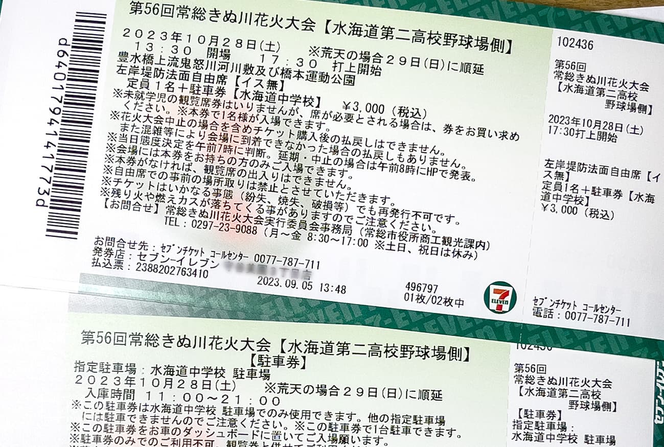 今年の花火大会はコロナの影響なのかそれに伴う来場者の増加なのか有料席や無料の予約席なのか穴場とされる場所も入れなくなっています、猿島、五霞の花火大会も土手に入る事も出来なくて帰ってきました、逆にチケットを取れば場所取りをせずに駐車場も確保できるので良いのかもしれませんが嫌な時代です、水海道、三郷、筑西の花火大会はチケット購入です、土浦の花火大会は抽選なのでどうなるのか・・・。花火大会もチケットがないと見る事ができない時代になってしまった様です、せっかく券を購入したので天候に恵まれると良いのですが・・・