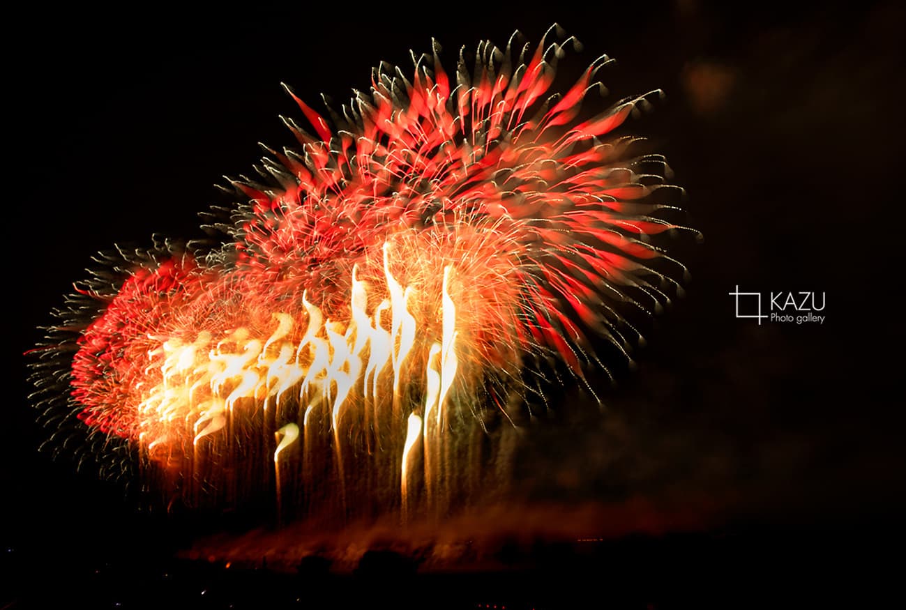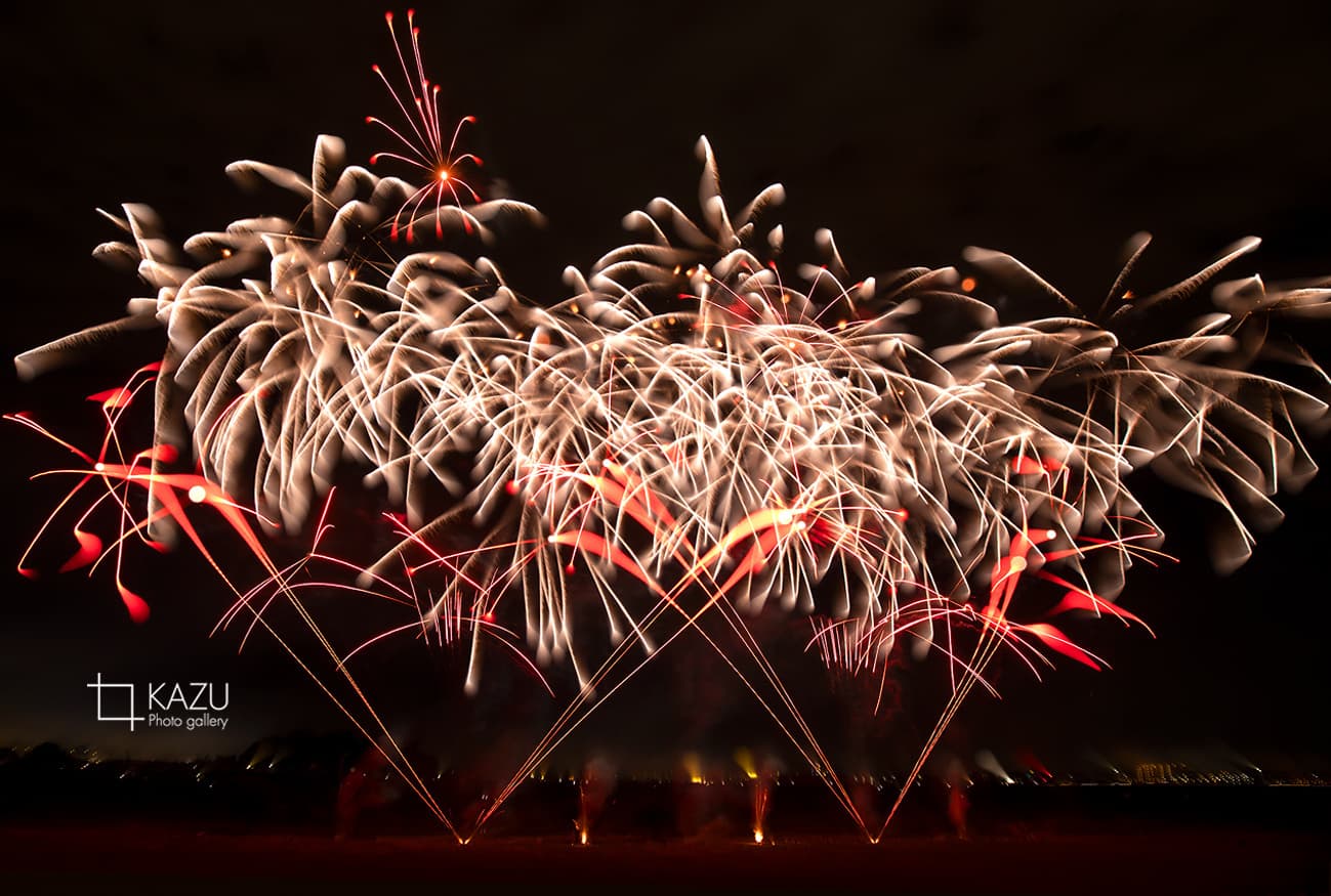 三郷流山橋完成記念花火大会が流山花火大会と同時開催です、会場へ行きやすい三郷側で撮影です風向きがよく流山側は風下になったのではないでしょうか、流山の花火も大きく角度よく見る事ができてあっちこっ見ながらでて忙しい撮影になりました