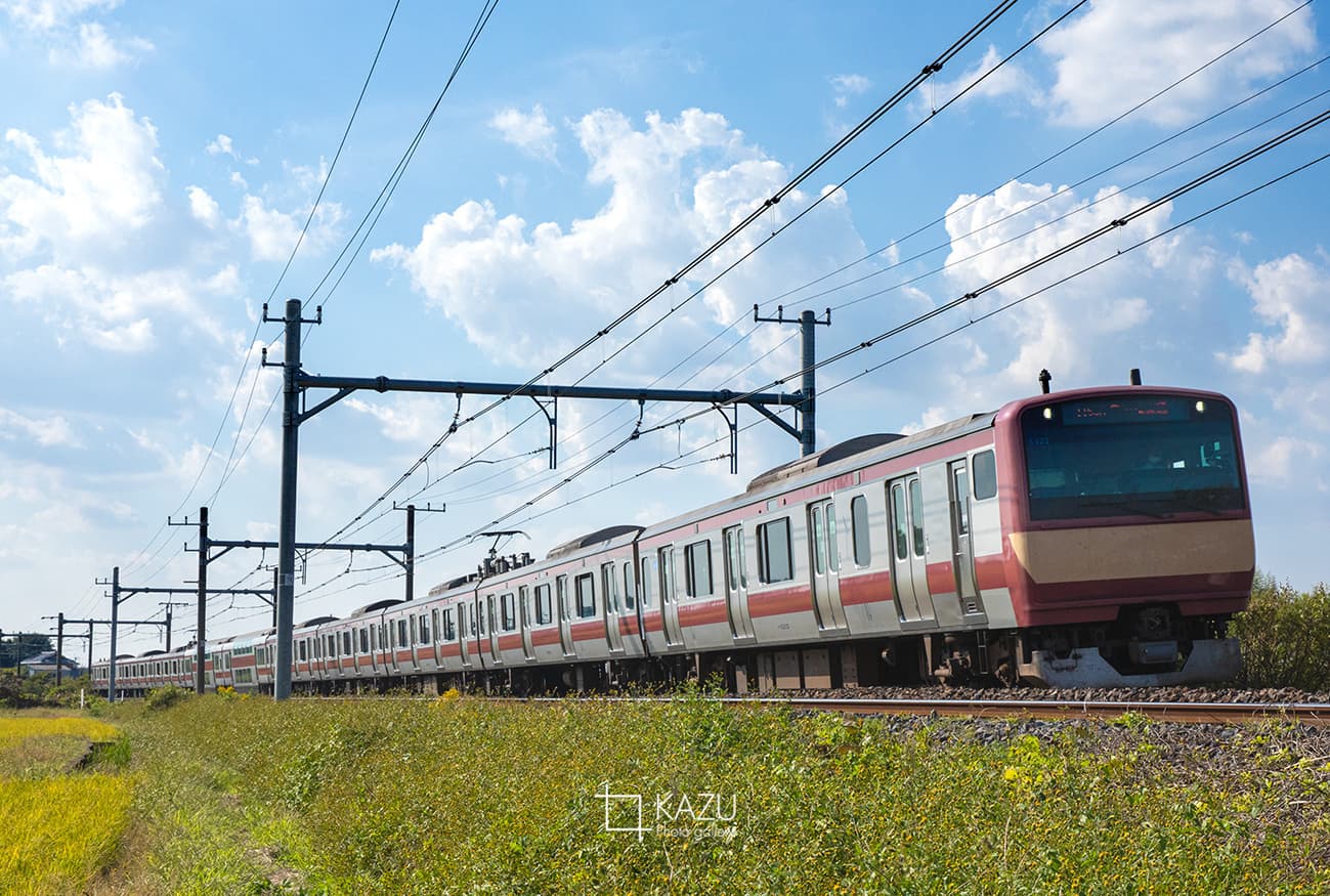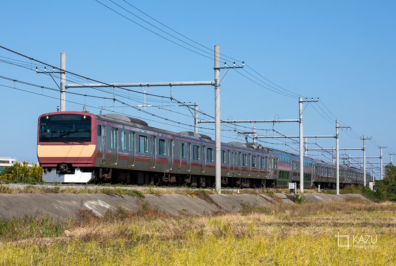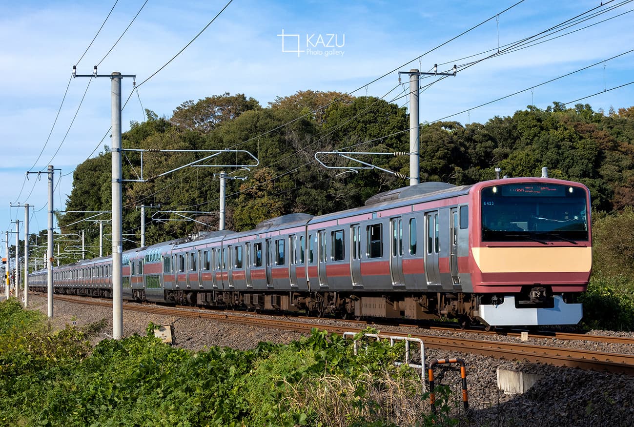 今日も牛久山へオレンジは間に合わず赤から撮影、後ろから試運転なのか回送なのかわからないけどピカピカの里帰りE653系がやってきました綺麗です明日の海浜公園コキア大宮号の運用に入ってくれると良いのですが