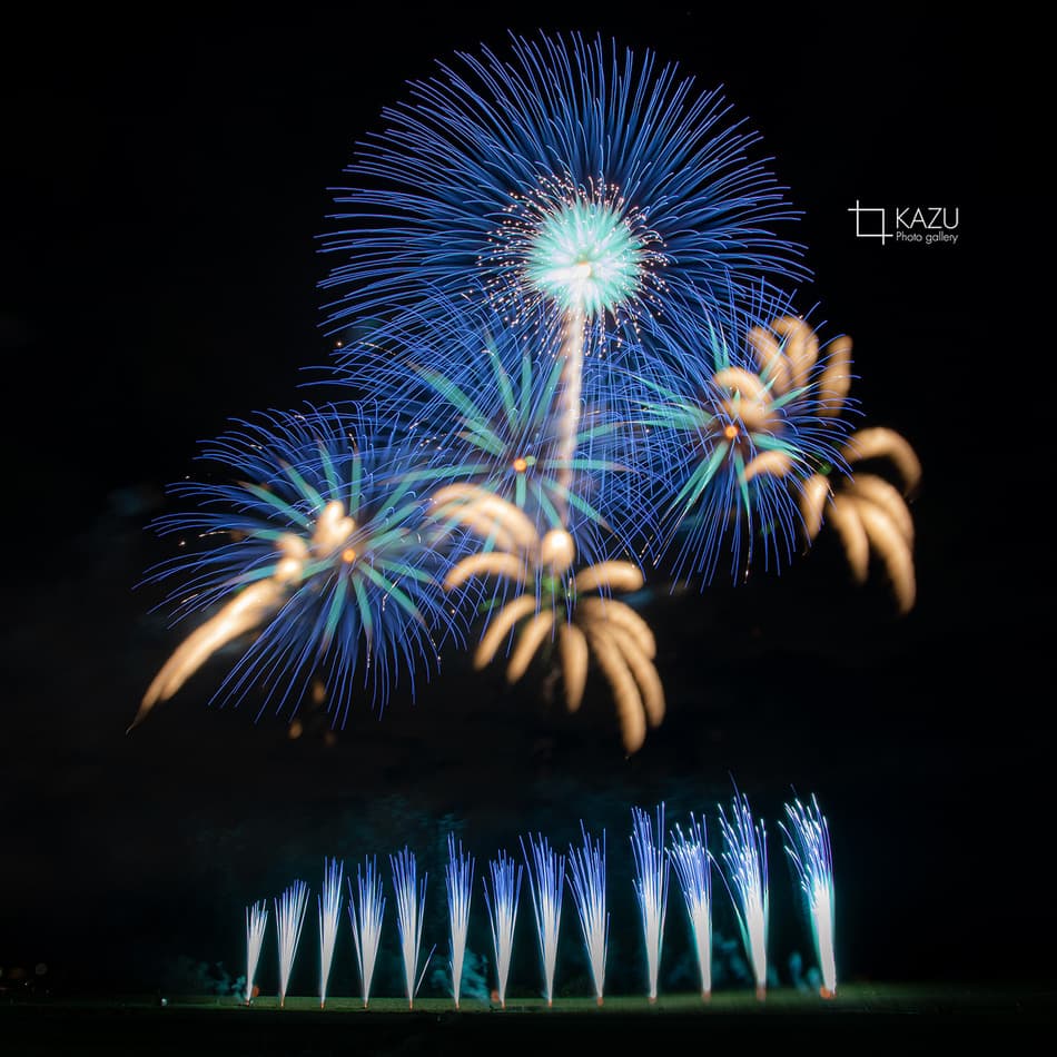 筑西市の花火大会専用駐車場に14時に着いた時は車が20台くらい早めの行動でゆったり準備です、野村花火工業の花火が見たかったので東側の打ち上げ場所の前に席を取りました、多くの花火を見るには西側の方が良い様です、フィナーレは西側だけで東側からは迫力がなくて残念です