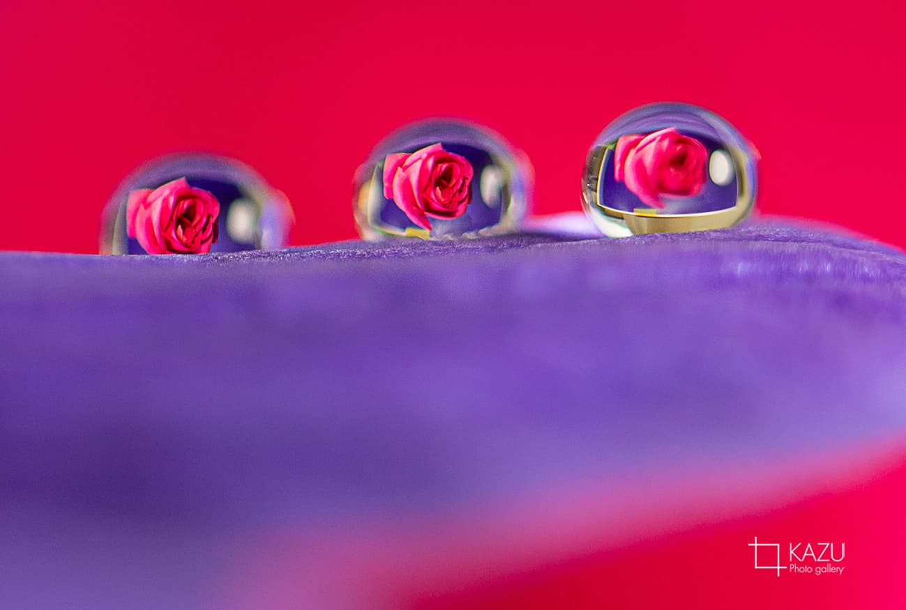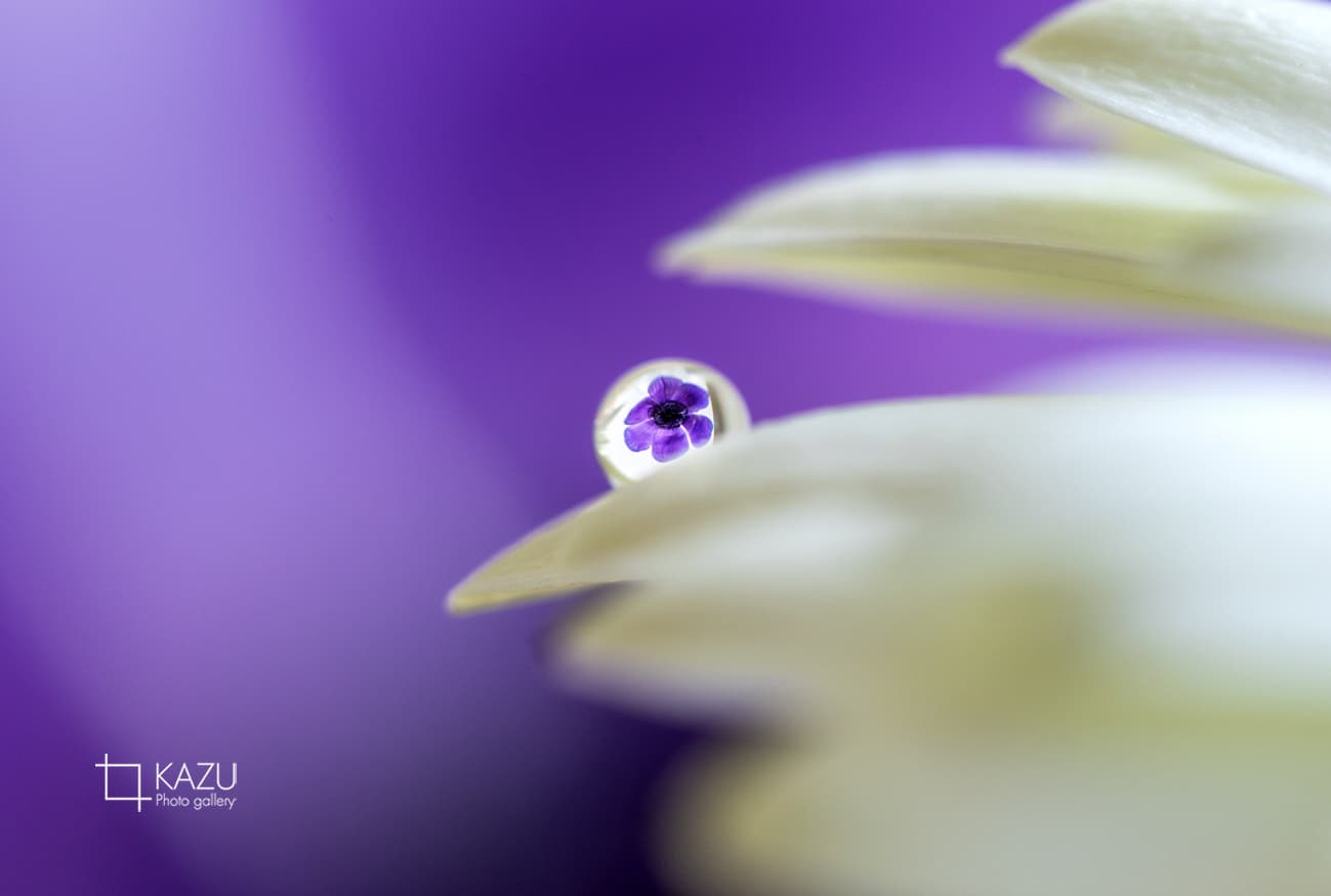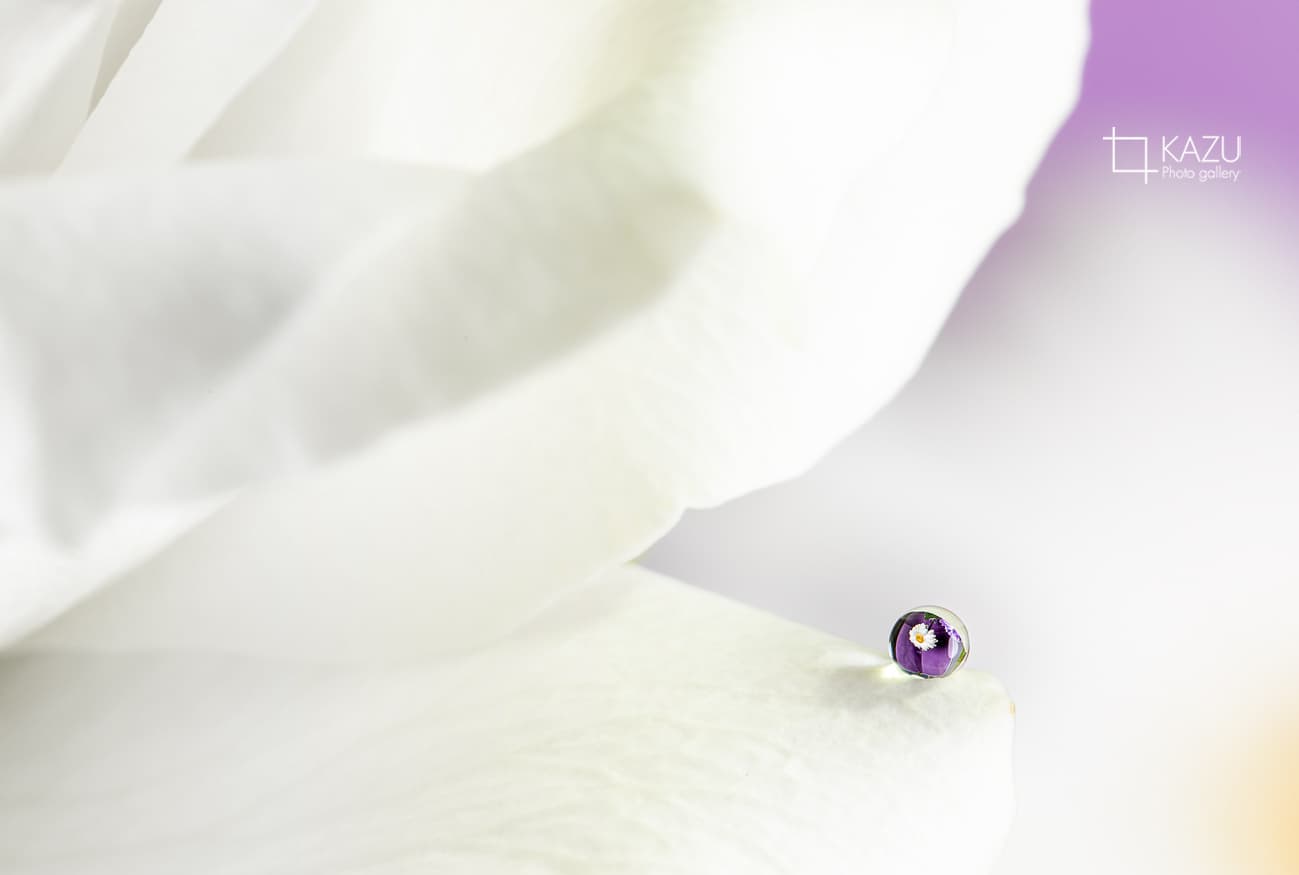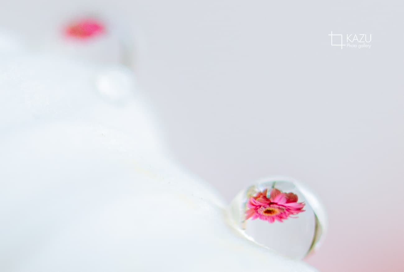 マクロで水滴に花を入れる練習、歪んだりボケたり激ムズです撮影する場所も狭くて中々入れ込むことができません。普通のスポイトで水滴が大きくて少し潰れ気味なのでコスメ用スポイトを早急に手に入れましょう