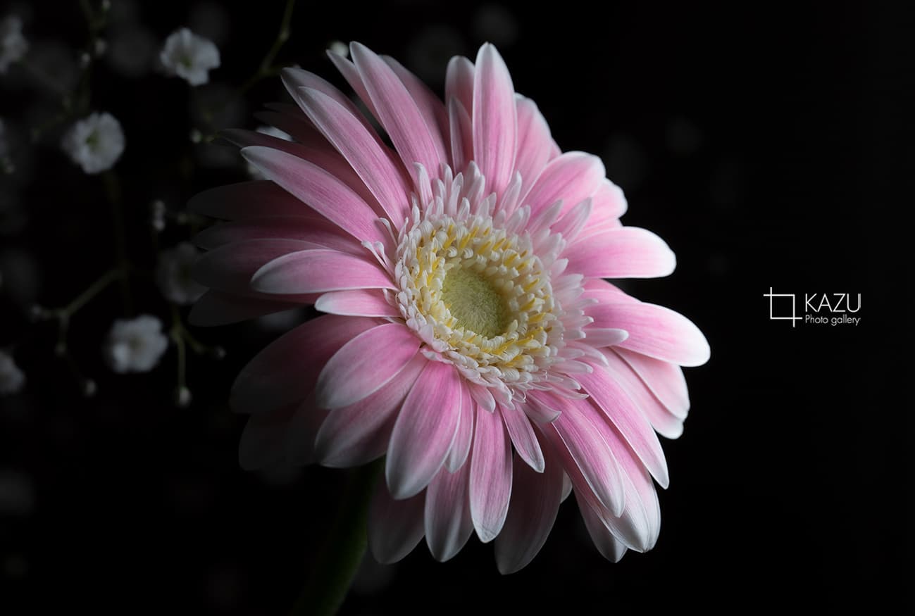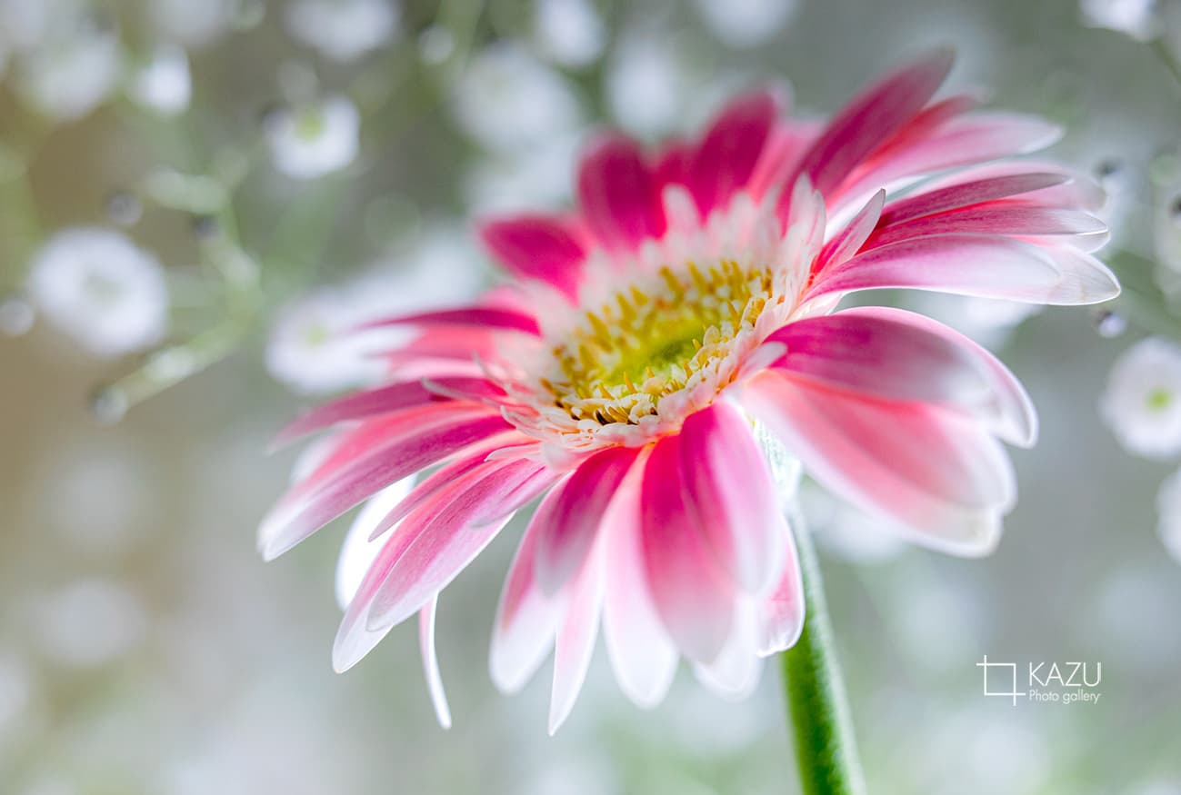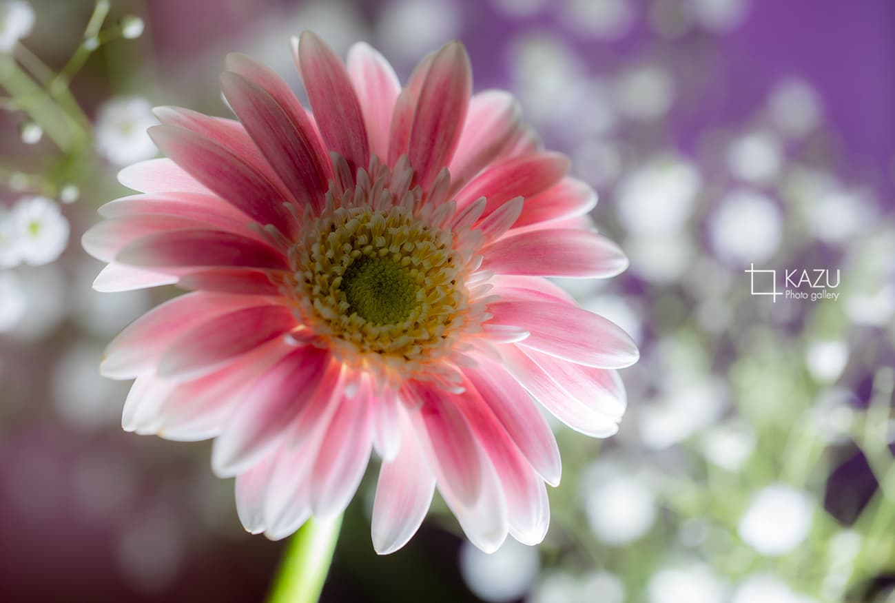 綺麗なガーベラが売っていたのでかすみ草と濃いピンク色のガーベラと一緒に購入