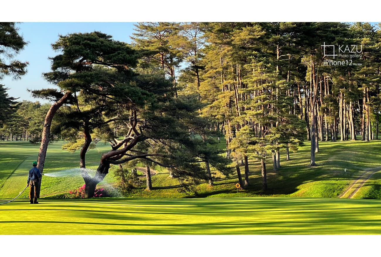 ラフには水をたっぷり撒いています、ラフの草が早く伸びるように撒いているのでしょう