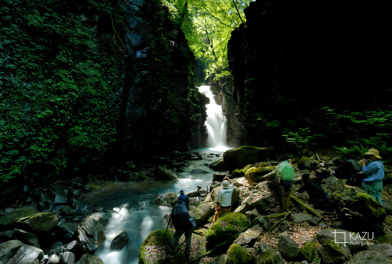 雄飛の滝.に着くと誰もいなくて静かだったのに少し休憩をしてまったり周りを撮影していると撮影者が10人くらいのグループでやってきました。