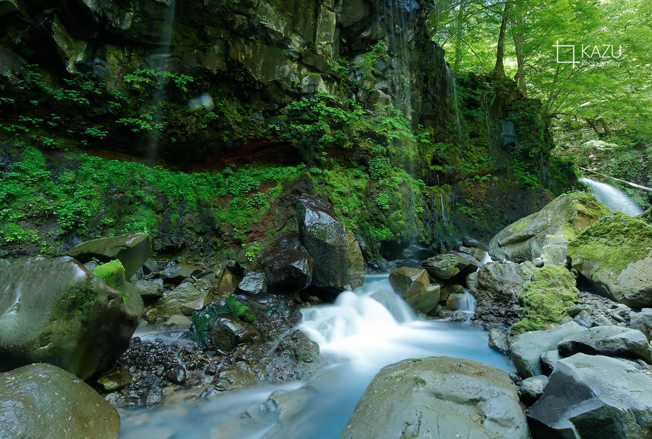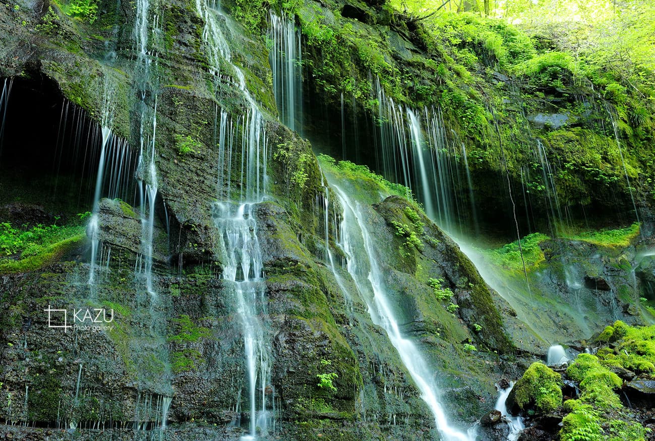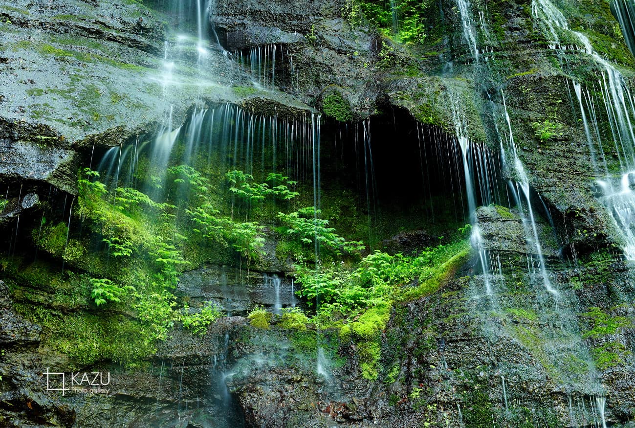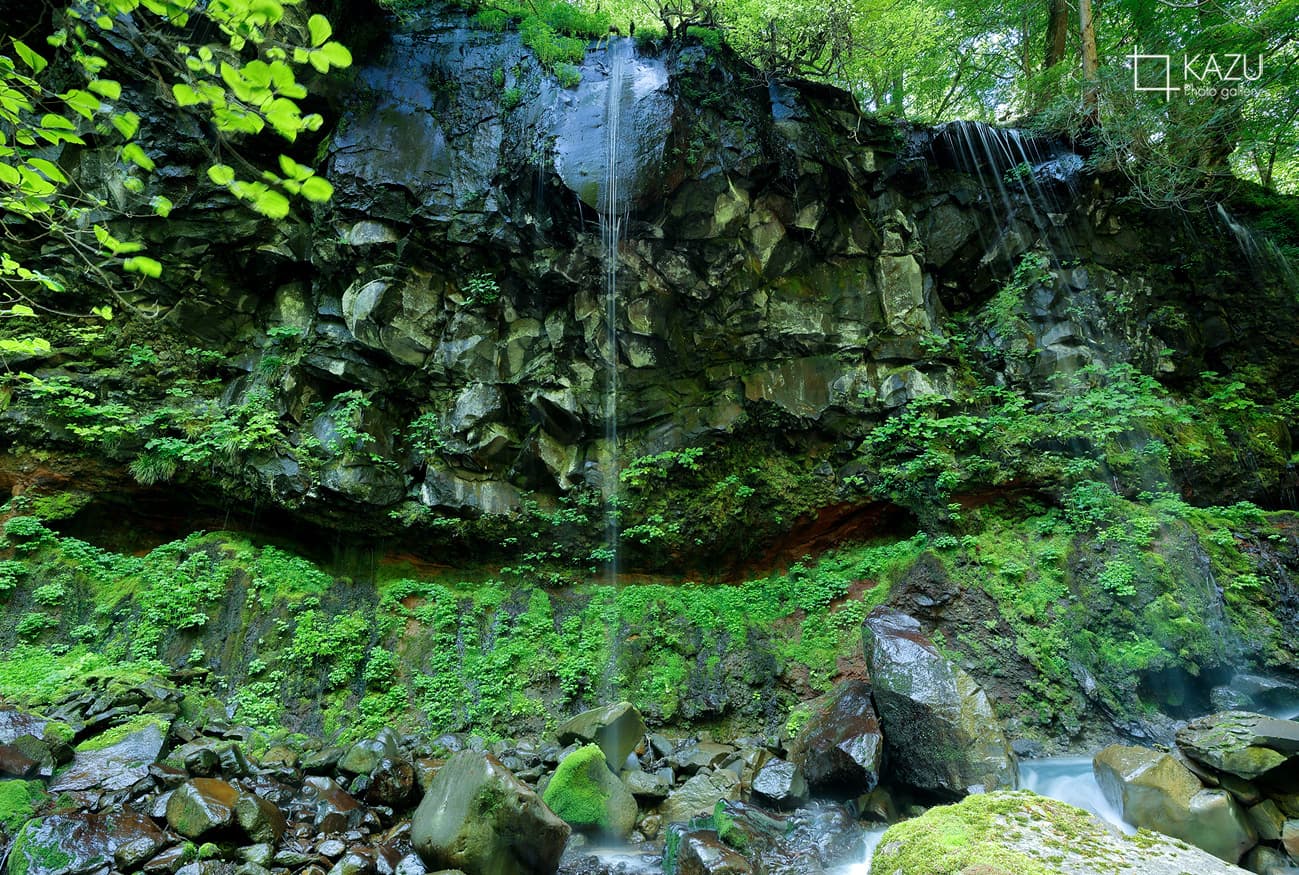 今日の掲載は那須塩原のスッカン沢の素簾の滝、はじからはじまで結構広範囲に滝が流れています、今日は一番右側です。苔コケしていて良い雰囲気です。
