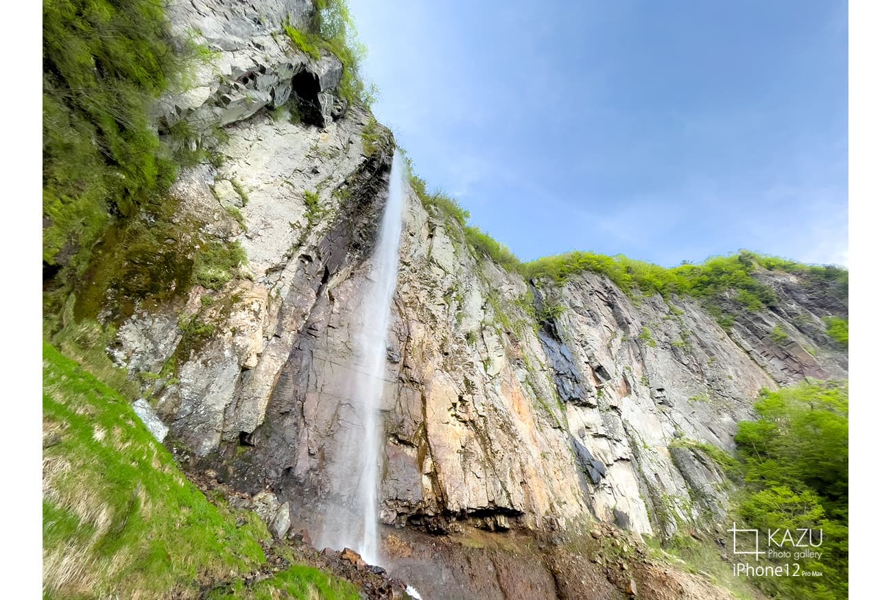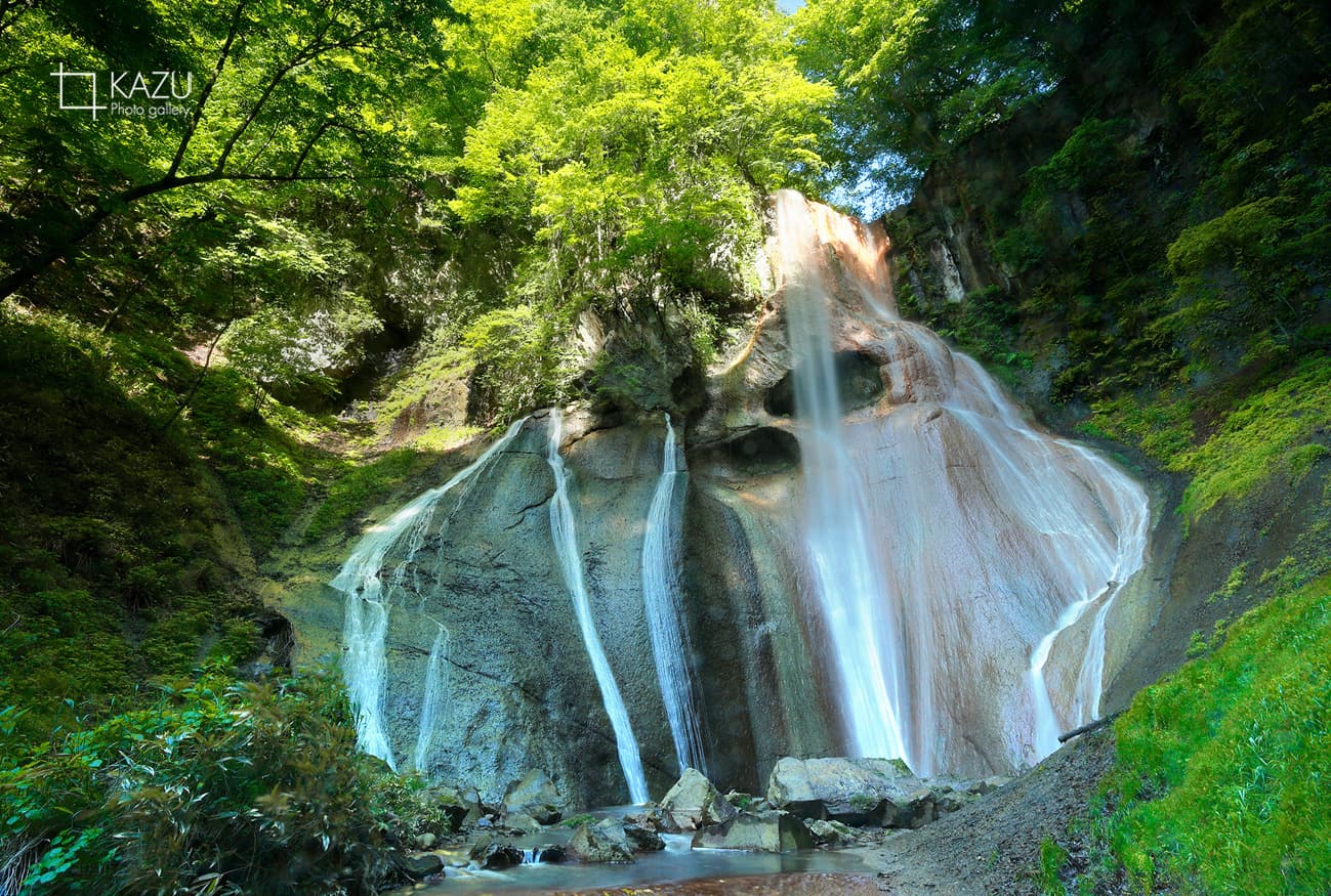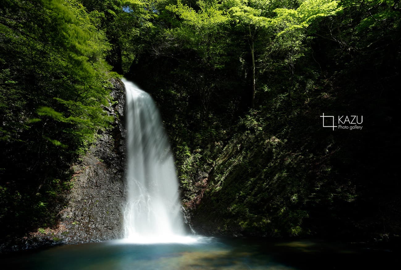 仙の滝、こじんまりしているけれど綺麗な滝です、左側の奇岩が印象的です