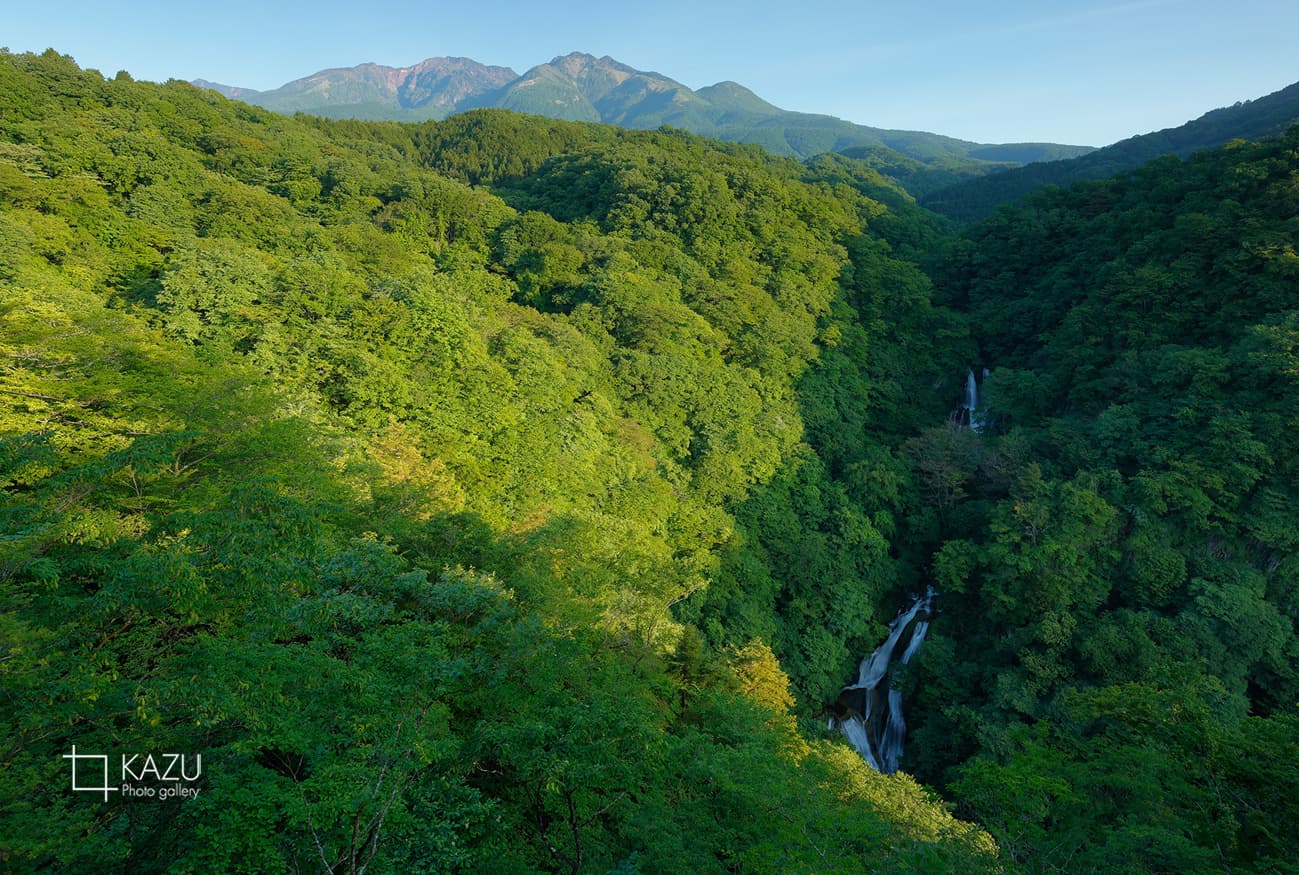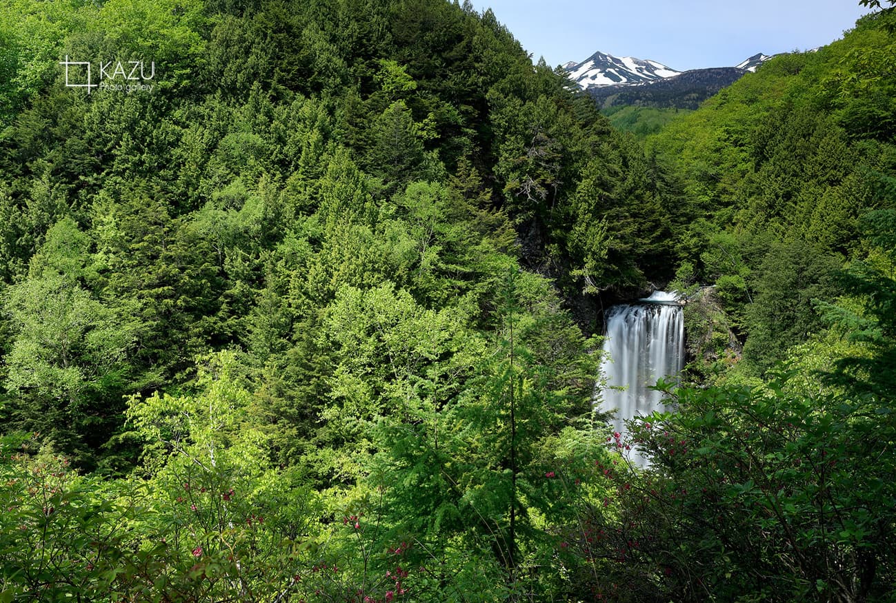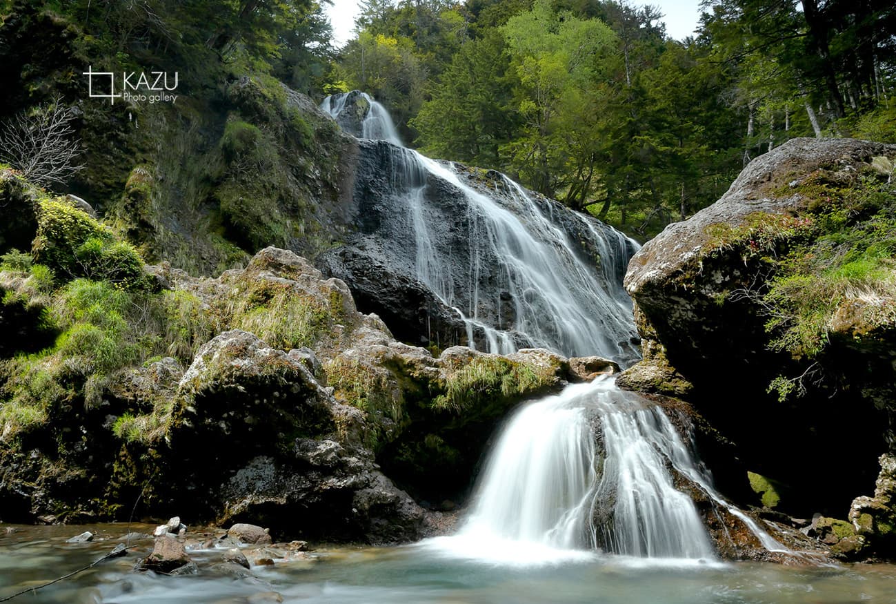 次は善五郎滝、綺麗な滝です水量が多くて大迫力です、途中に展望台が有り乗鞍岳も見えて眺めは良いです