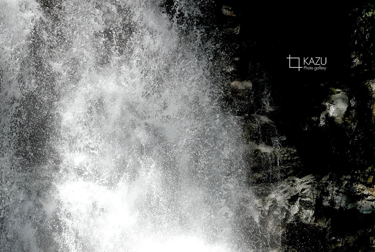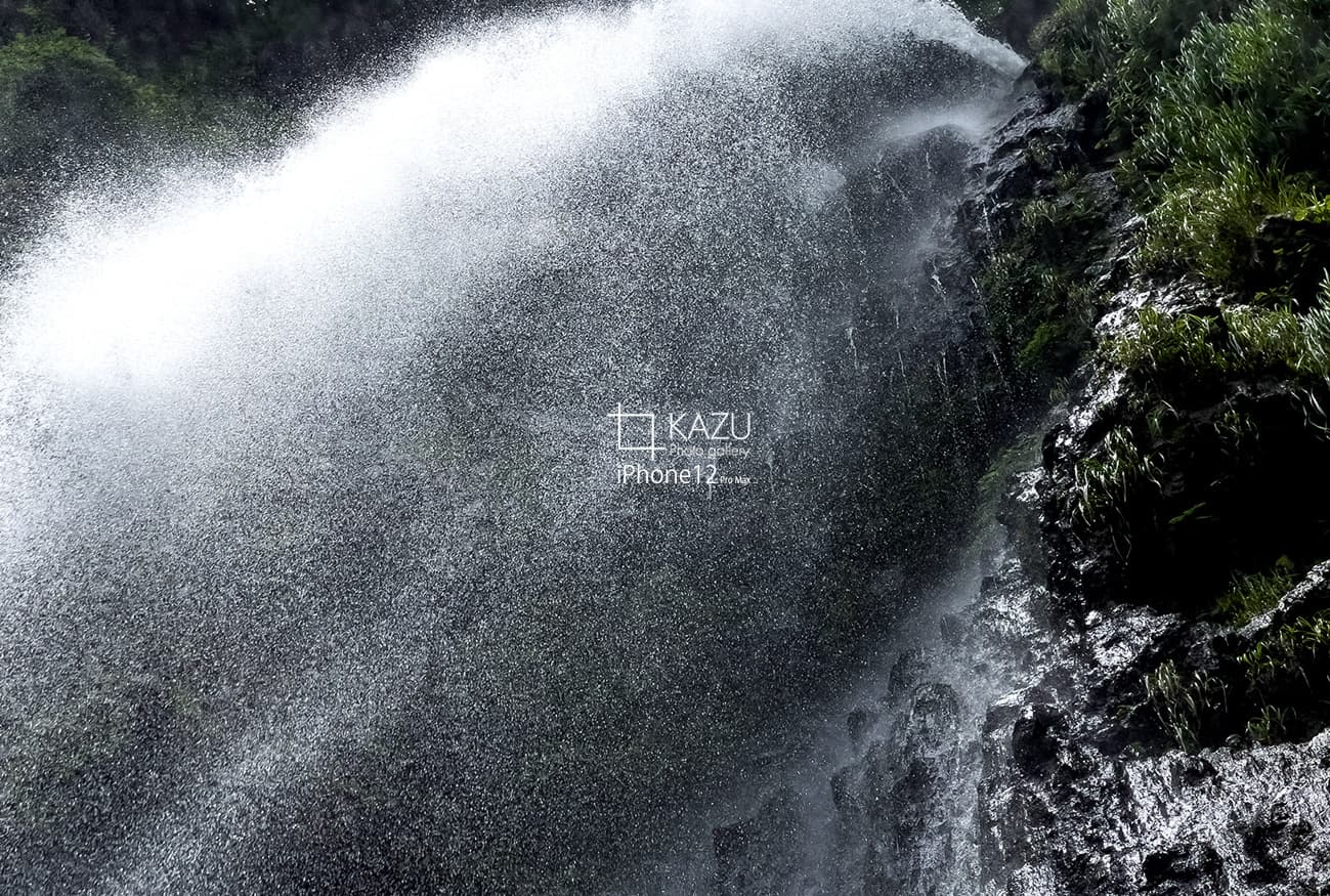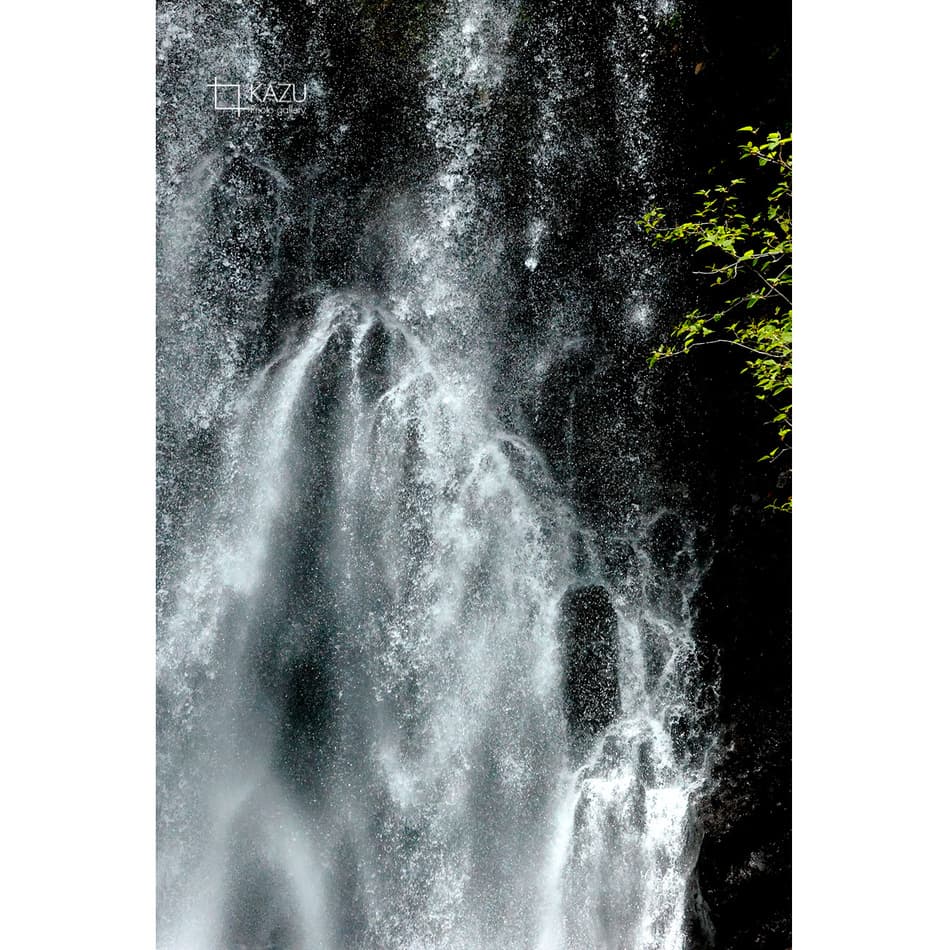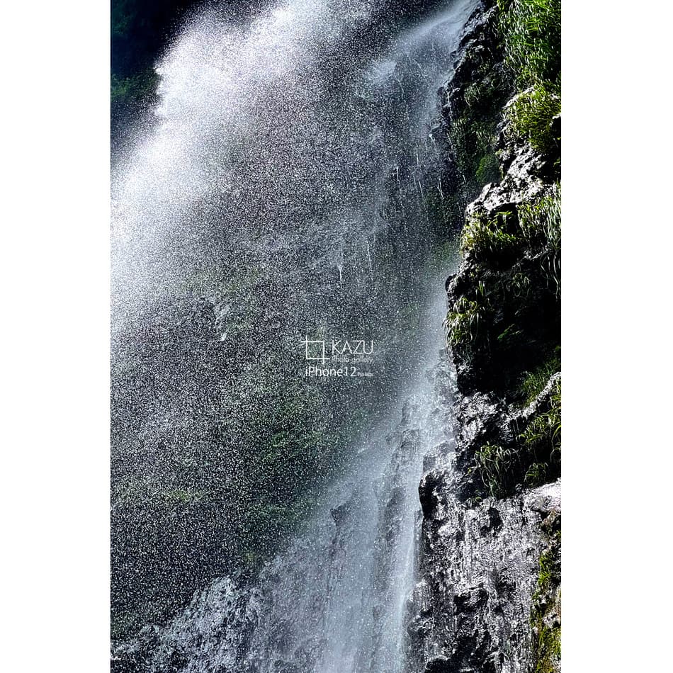 滝直下、このくらいの滝でも一瞬でずぶ濡れです風も吹いていて滝を肌で感じる事ができます、滝は眺めるより感じたいですね〜