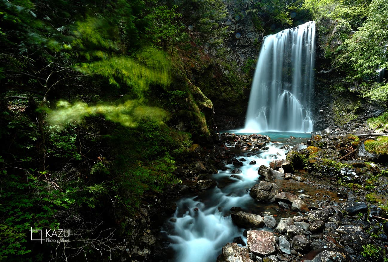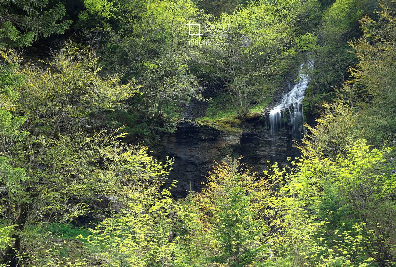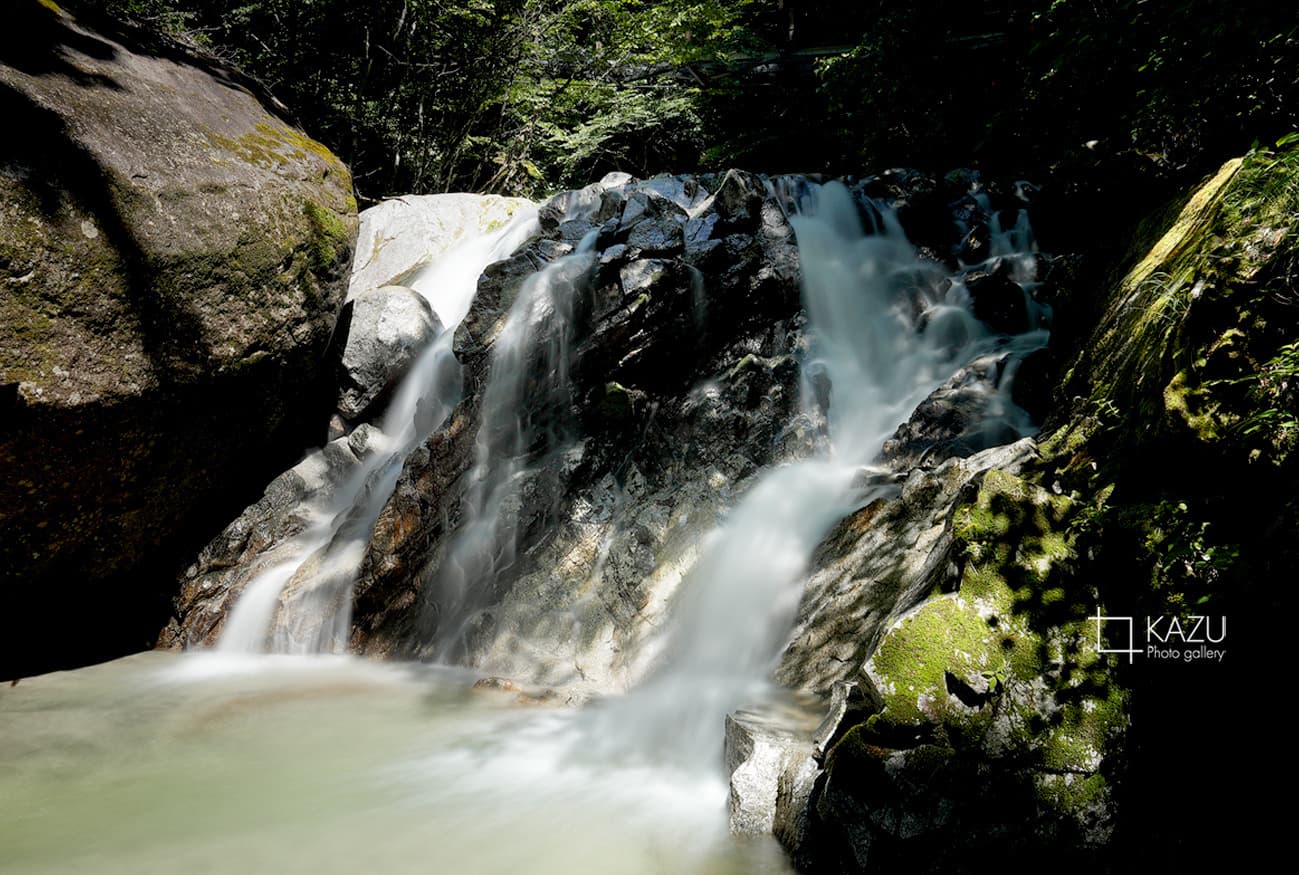 北精進ヶ滝の滝壺を諦めて落ち込んだまま遊歩道を駐車場に向かいます、所々に滝があり到底北精進ヶ滝には及ばす撮る気もしなかったけれど太陽の光が綺麗なので撮り始めると徐々にまた楽しくなってきて結局3つの滝をゆっくり撮影です