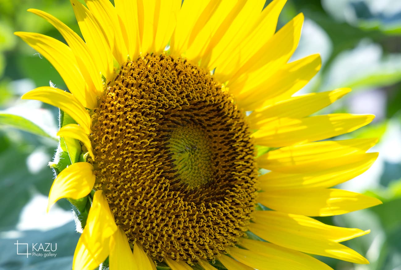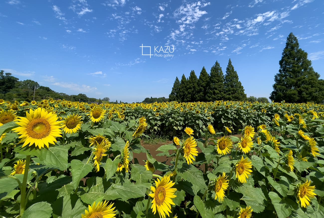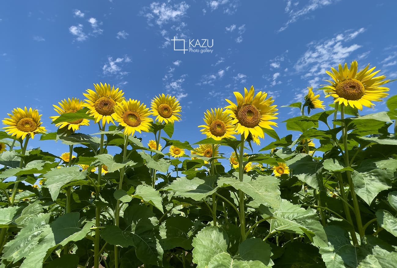 ひまわりは満開です昨年は風の日が多く緑の葉が埃だらけで汚かったけれど今年はとても綺麗です