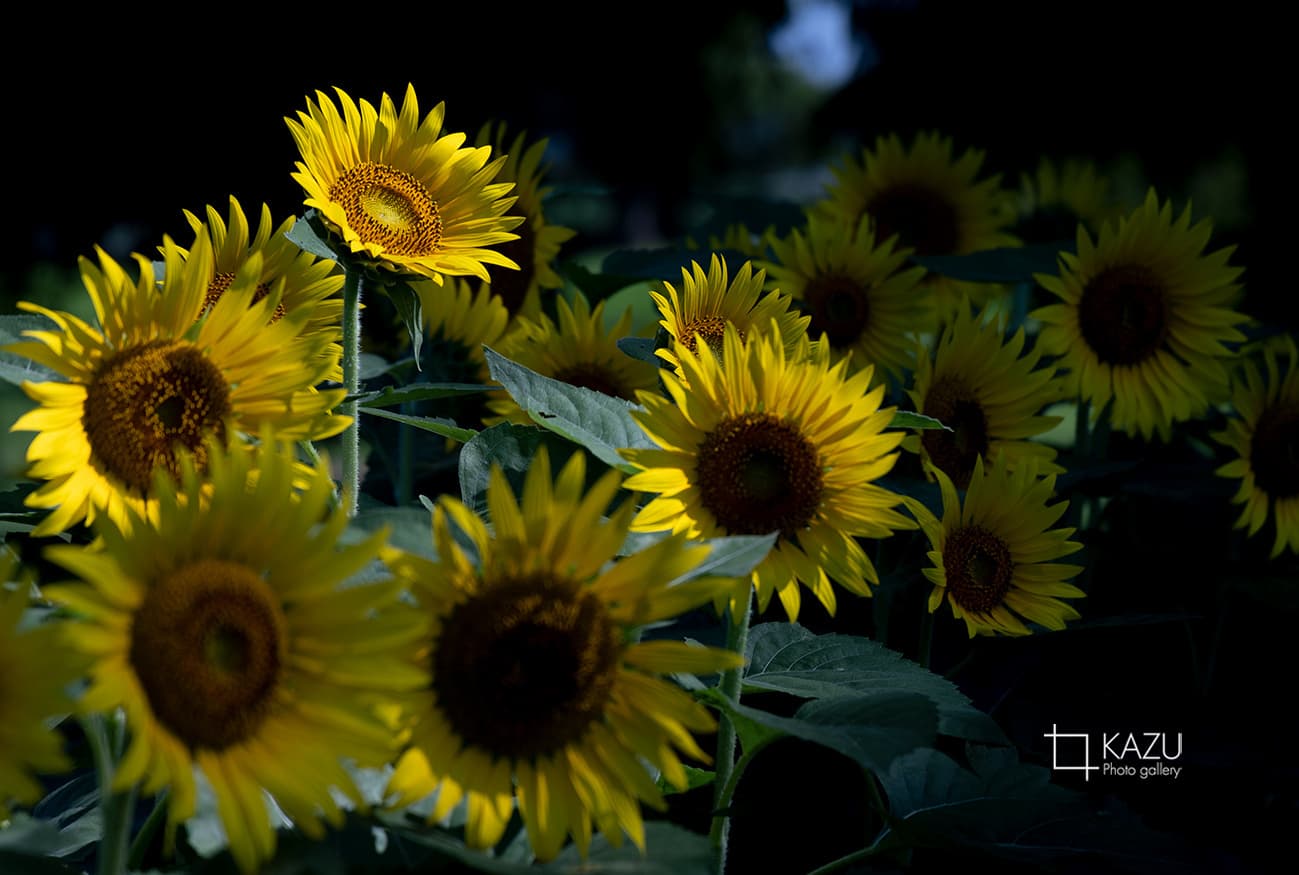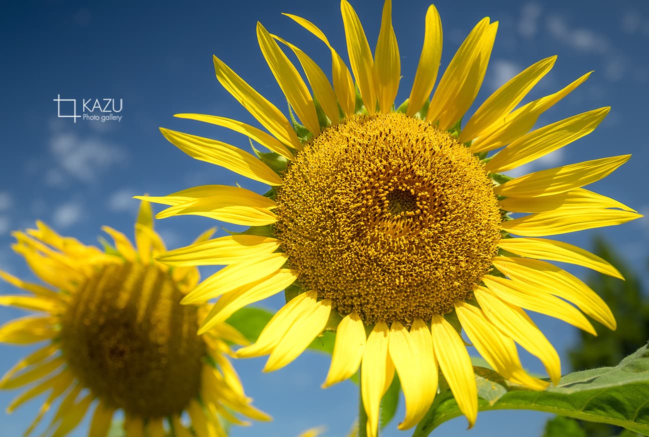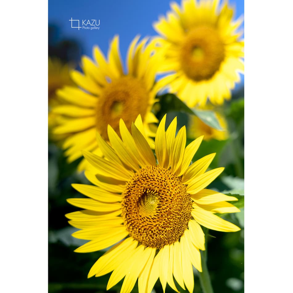 ひまわりは満開です昨年は風の日が多く緑の葉が埃だらけで汚かったけれど今年はとても綺麗です