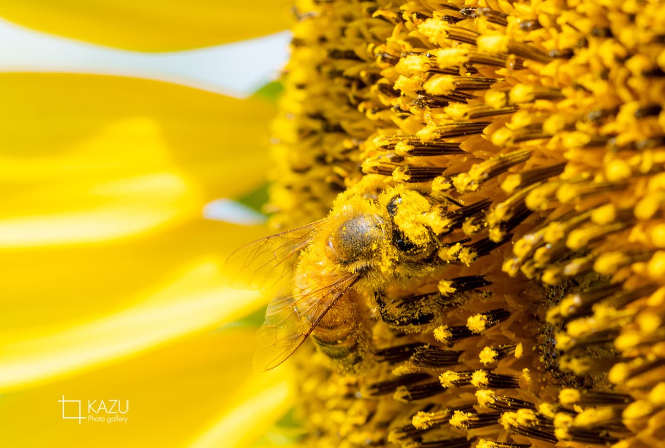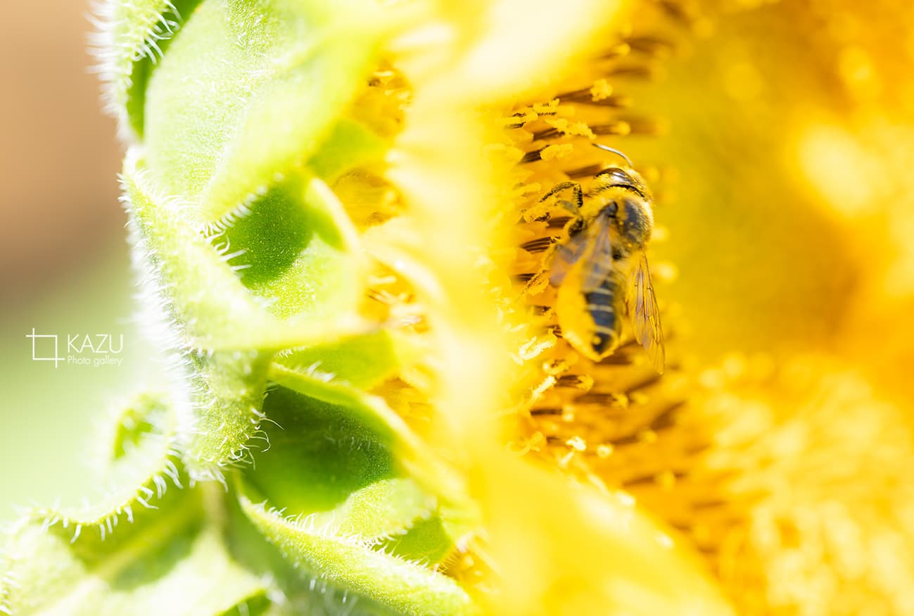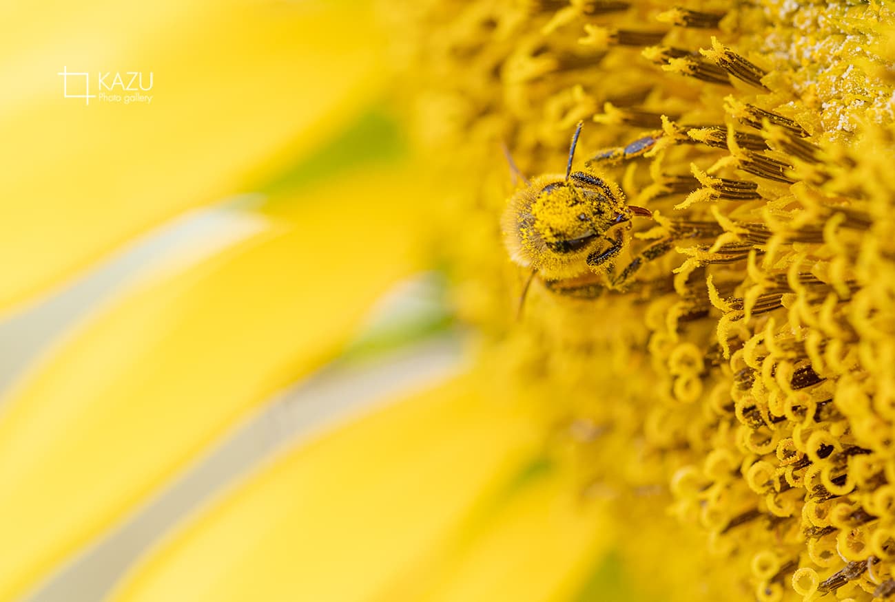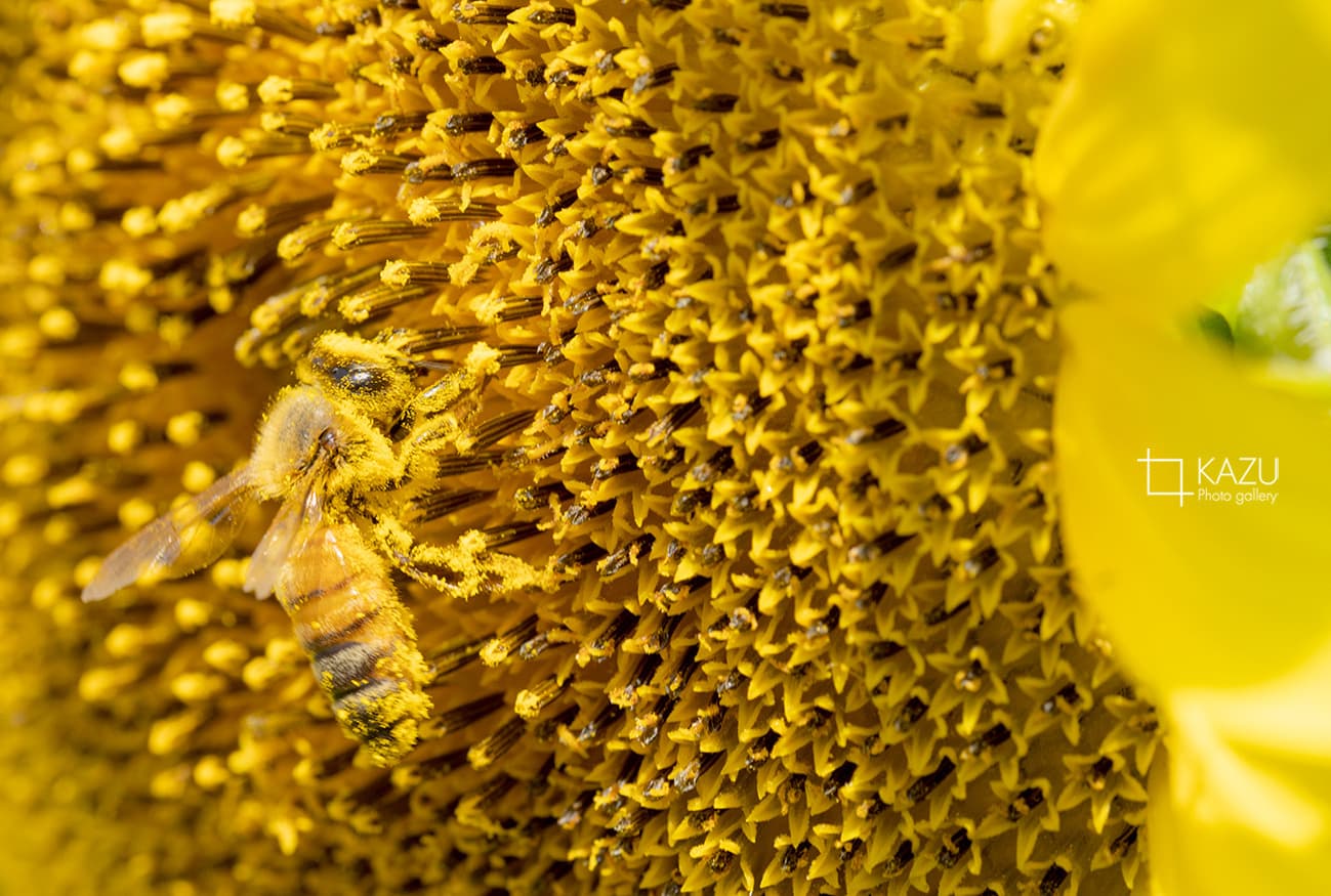 ヒマワリもそろそろ終わりなのであけぼの山まで行ってみました、ミツバチ君が花粉をいっぱいつけてブンブン可愛いので撮っていたらおっきな蜂がやってきて邪魔されてしまいました、なかなか良い角度になってくれません