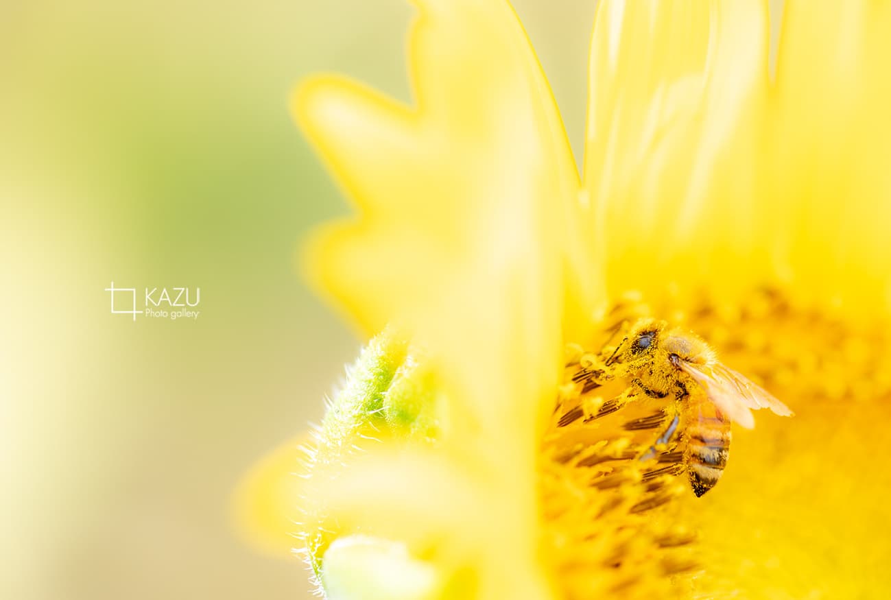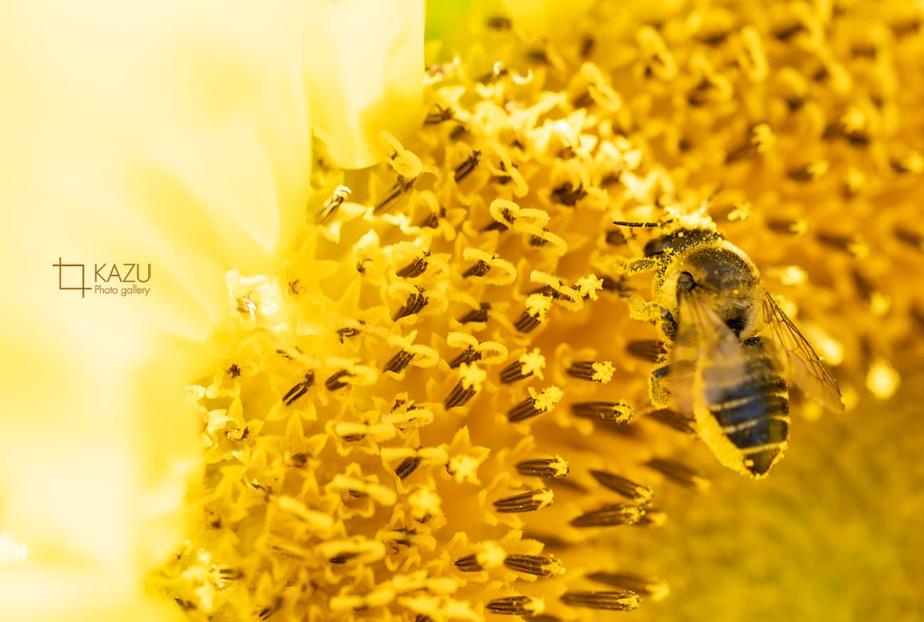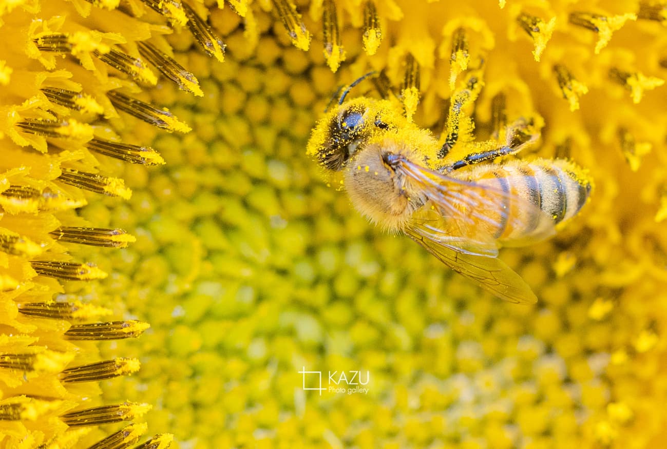 ヒマワリもそろそろ終わりなのであけぼの山まで行ってみました、ミツバチ君が花粉をいっぱいつけてブンブン可愛いので撮っていたらおっきな蜂がやってきて邪魔されてしまいました、なかなか良い角度になってくれません