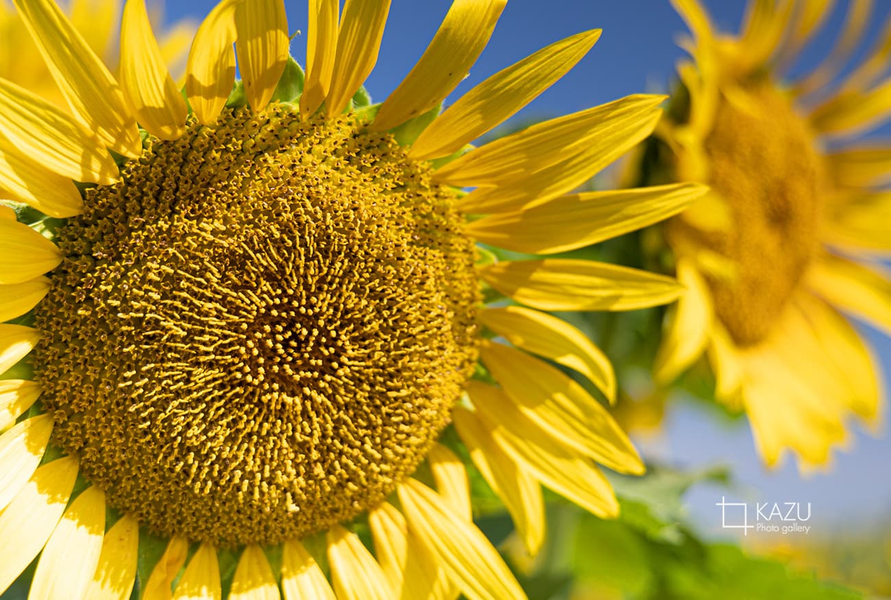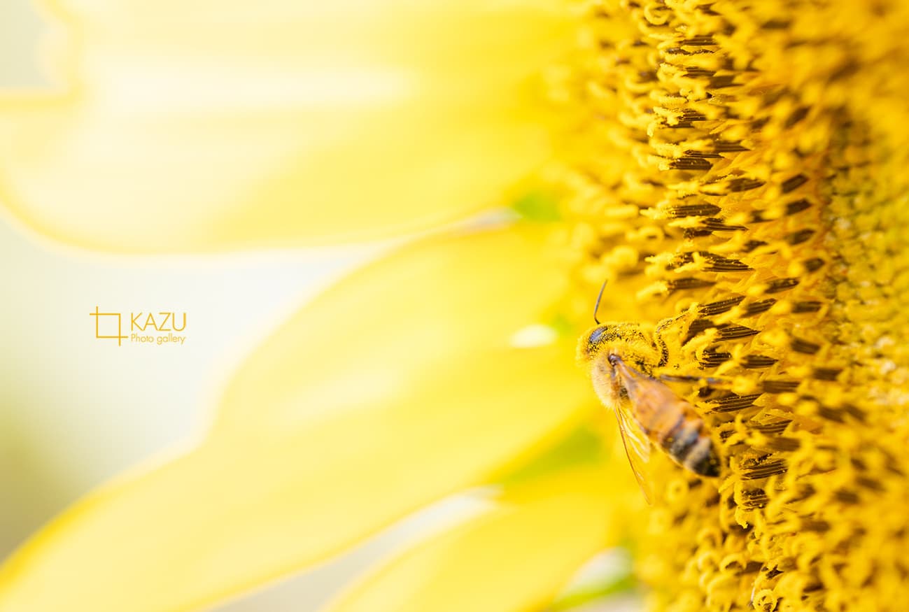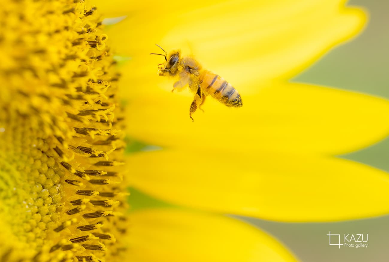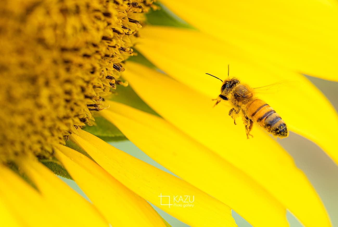 ヒマワリもそろそろ終わりなのであけぼの山まで行ってみました、ミツバチ君が花粉をいっぱいつけてブンブン可愛いので撮っていたらおっきな蜂がやってきて邪魔されてしまいました、なかなか良い角度になってくれません