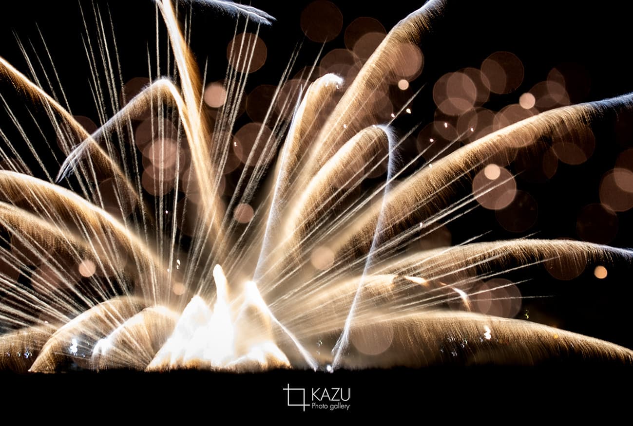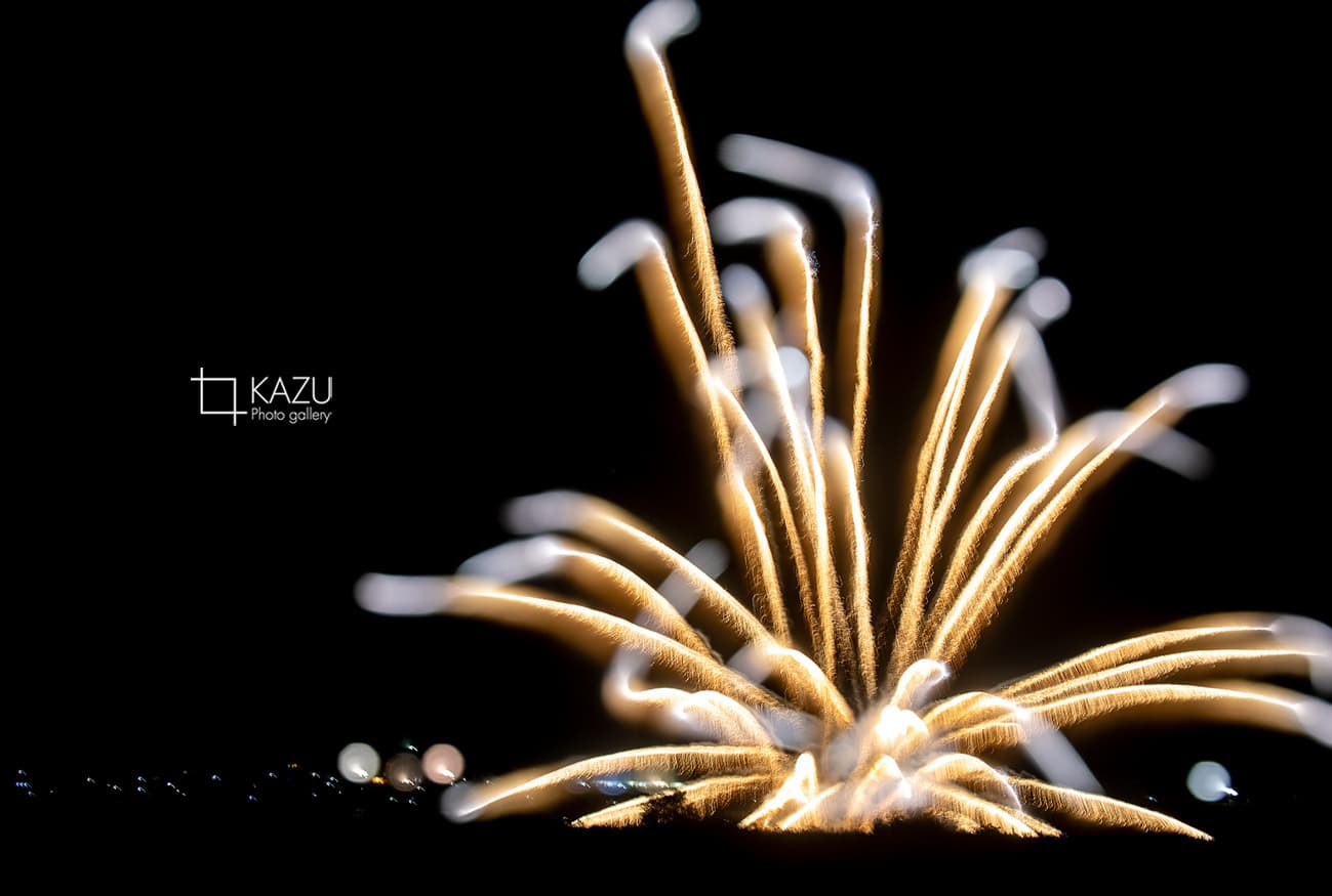 昨日24日はいなしき夏祭り花火大会にいってみました、屋台やステージがある祭り会場は避けて反対側の川沿いに行ってみました場所取りはみる感じ1年中とってありますみたいな感じで多分数日前に行ったも良い場所は取れないでしょう、それでもちょっとした笹薮を切り込んで場所を作ってのんびり撮影です、良い感じの写真が見かけたのでスターマイン撮ってみたけれど一発撮りではないですね、多分いくつかのショットを比較明合成で仕上げてる感じです色もいじってるんじゃないかな〜