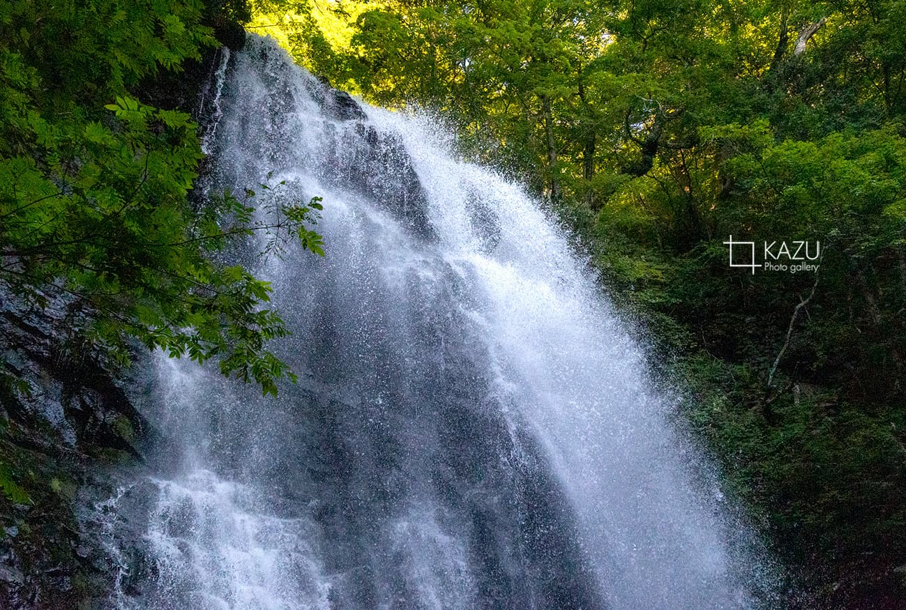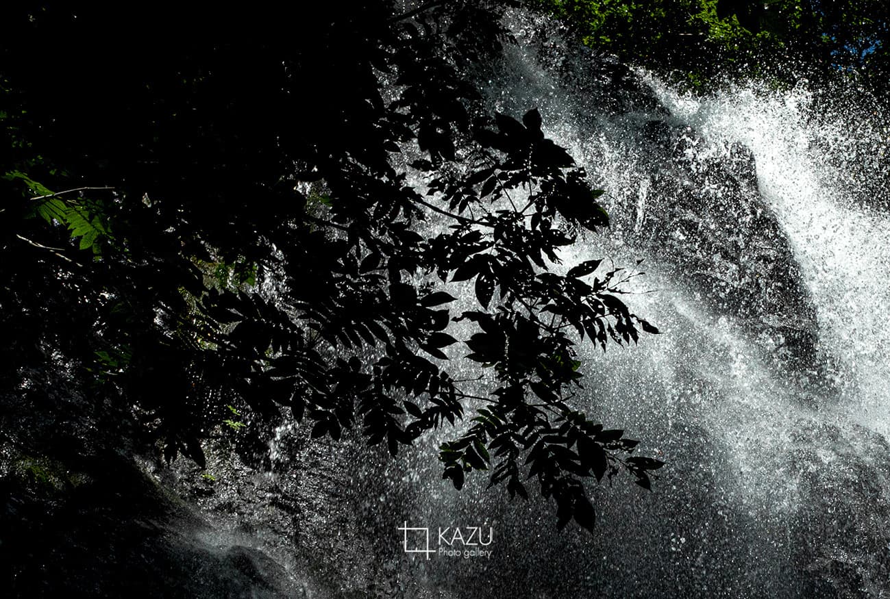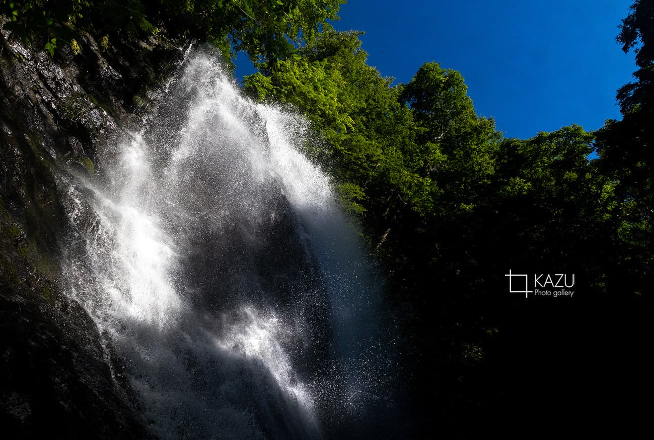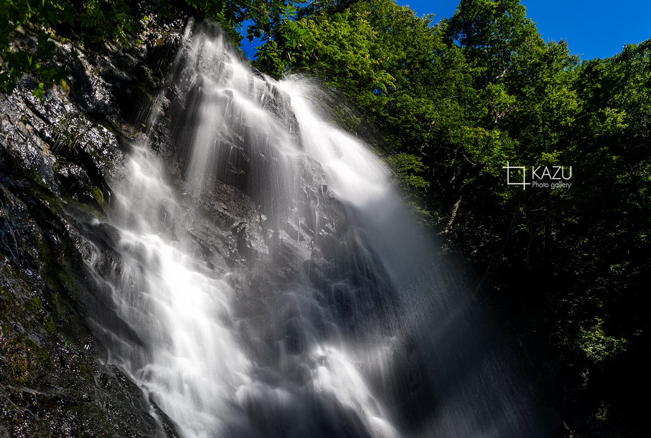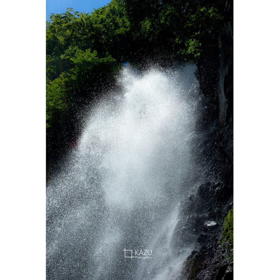 福島県の小野川不動滝の続き、水しぶきが陽に照らされてキラキラ光ってます