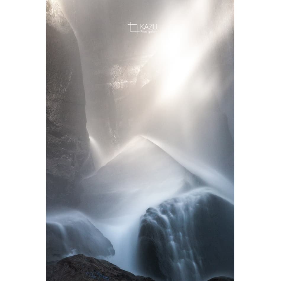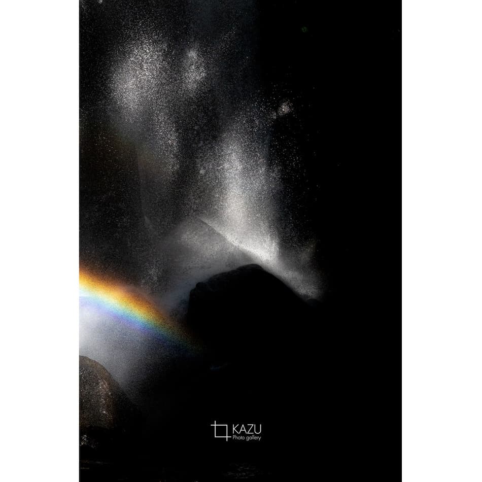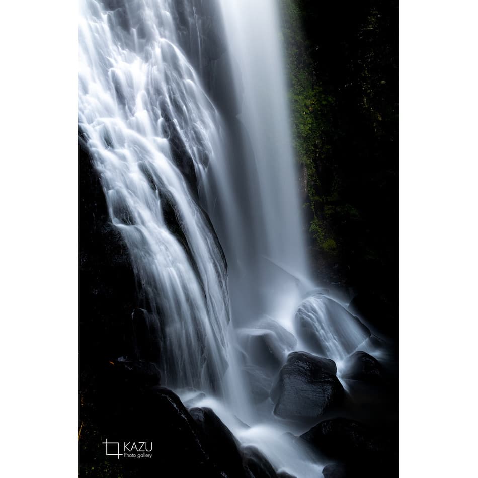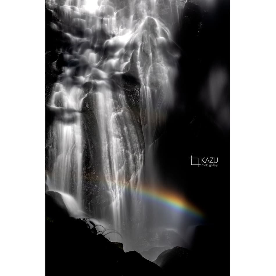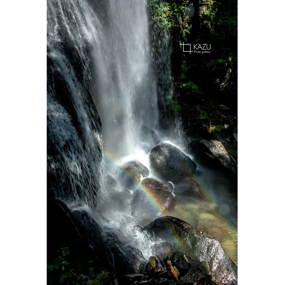 福島県の小野川不動滝の続き、水しぶきが陽に照らされてキラキラ光ってます