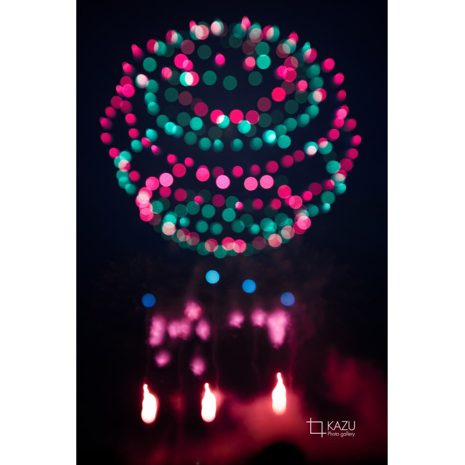 取手利根川花火大会の花火は球数は多くないけれど田舎の河川敷なので大きな玉も上がるので様々なタイプの花火が上がるので変化があって楽しいです、ドローンショーも結構見応えありました