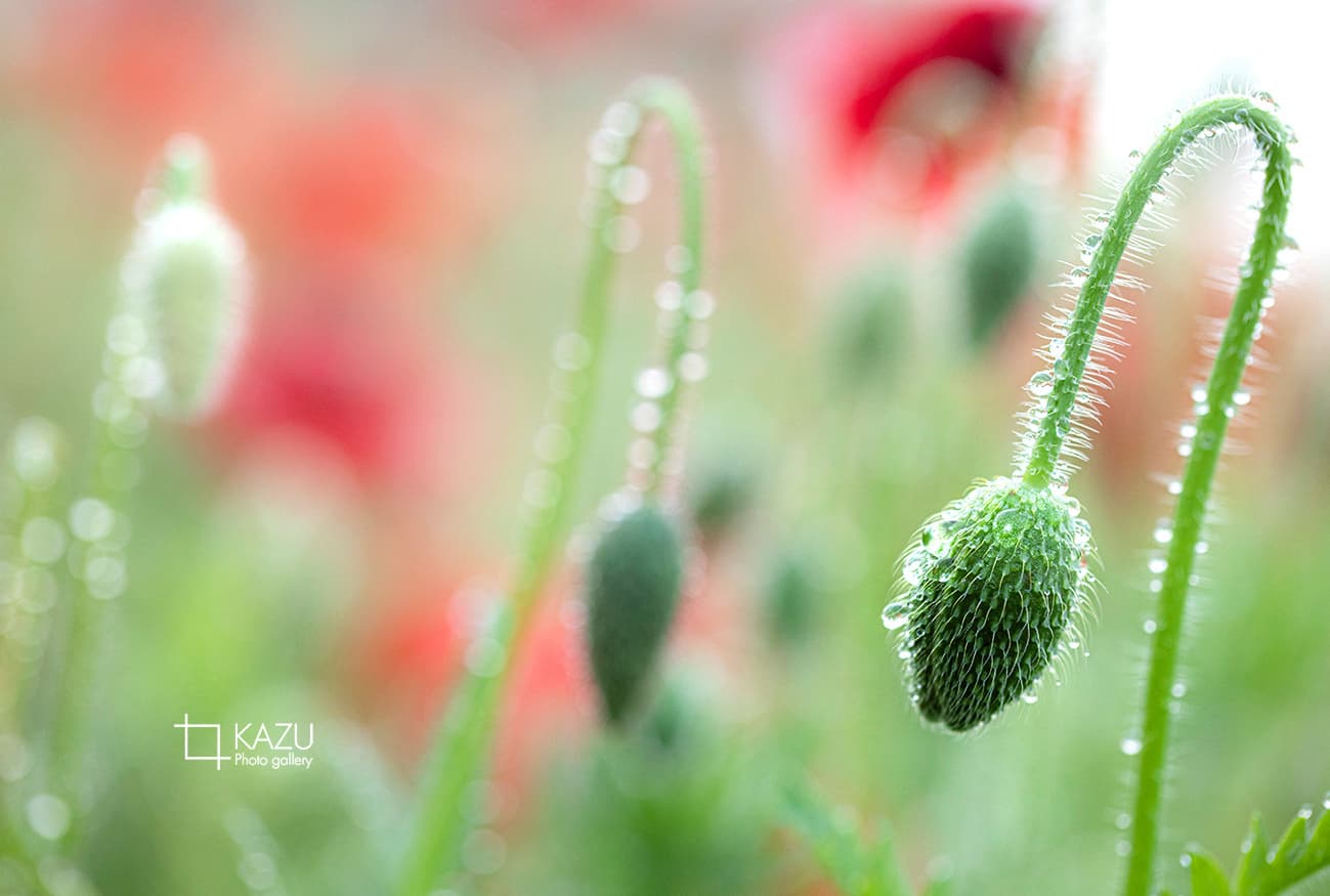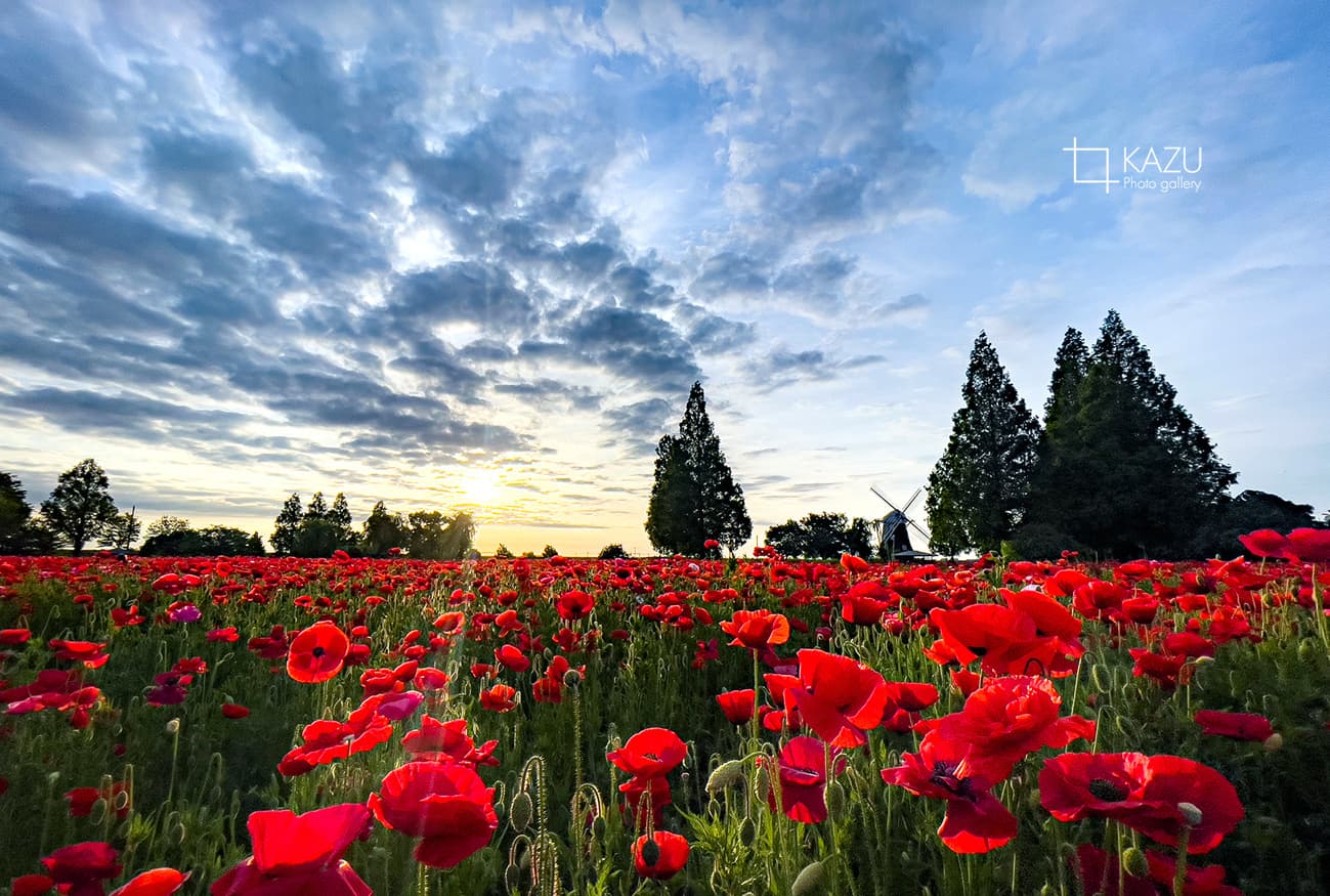 あけぼの山公園のポピーが昨日の雨でしっとりしてます、6時頃になると晴れてきてキラキラ光ってものすごく綺麗でした、写真で良い感じでは撮れません