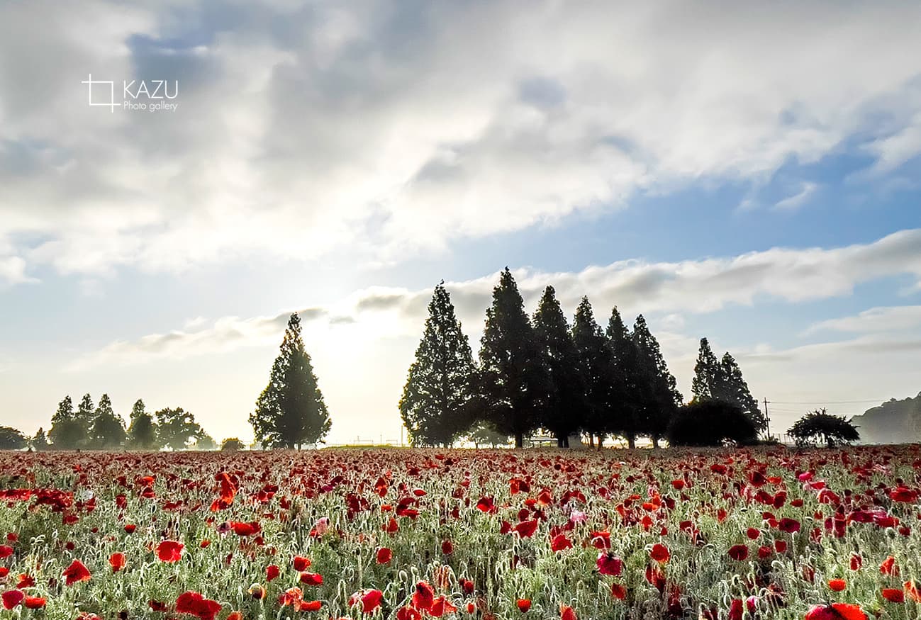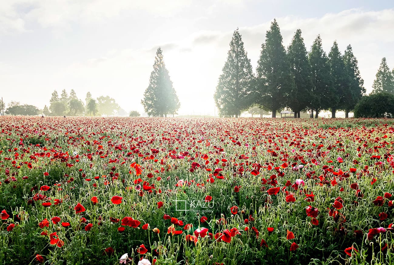 あけぼの山公園のポピーが見頃の様なので久しぶりに行ってみました、メタセコイアが完全に緑色です植物の成長は早いです