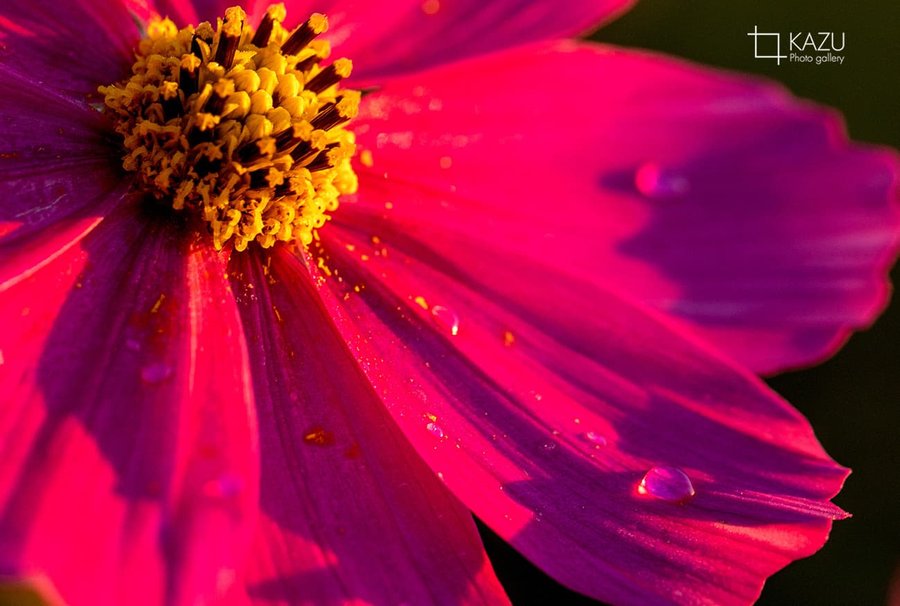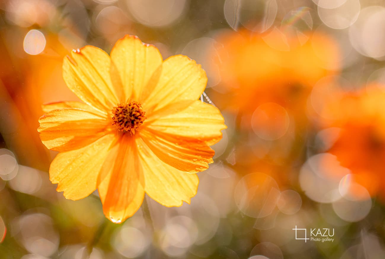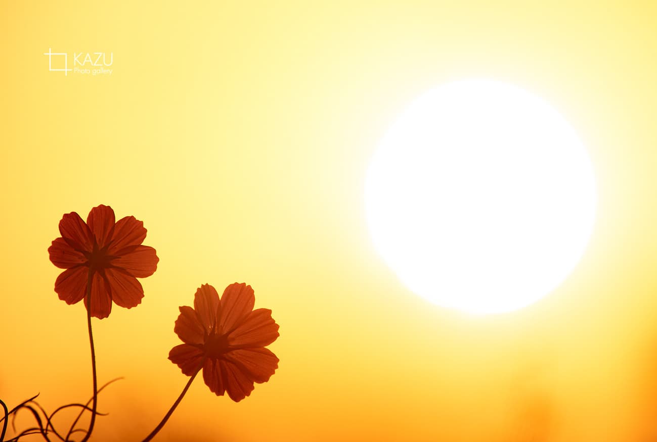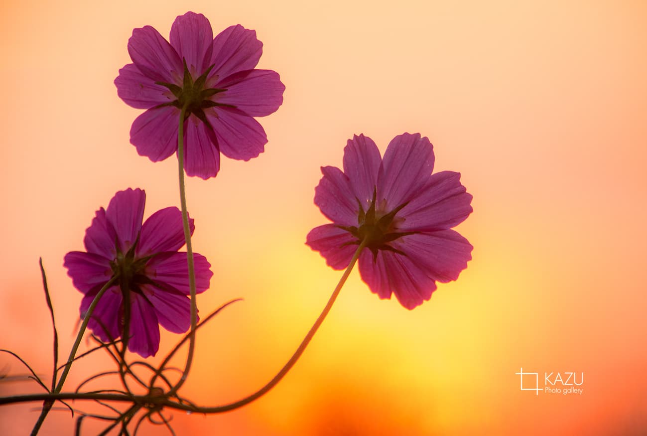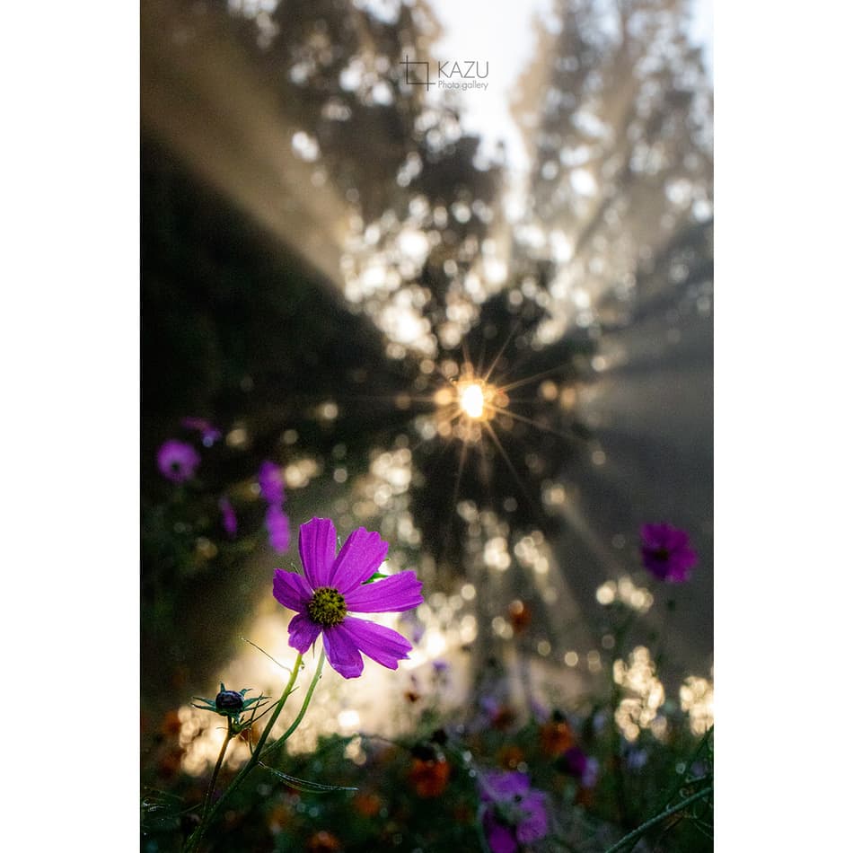 今日は人が全然いません、天気予報のせいか公園が月曜日休みのせいか7時になると2〜3人いた撮影者も帰ってしまって私一人です、私一人のコスモス畑。