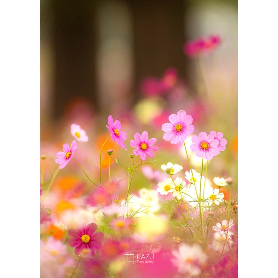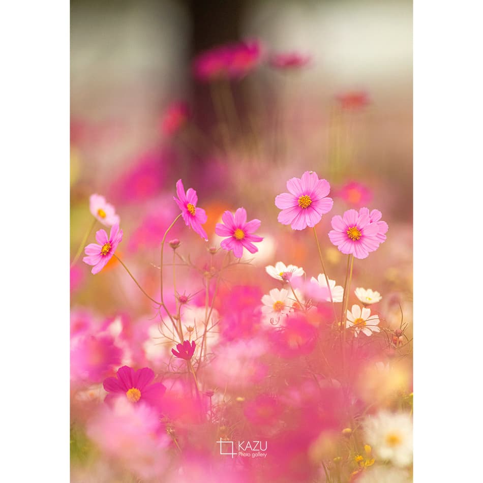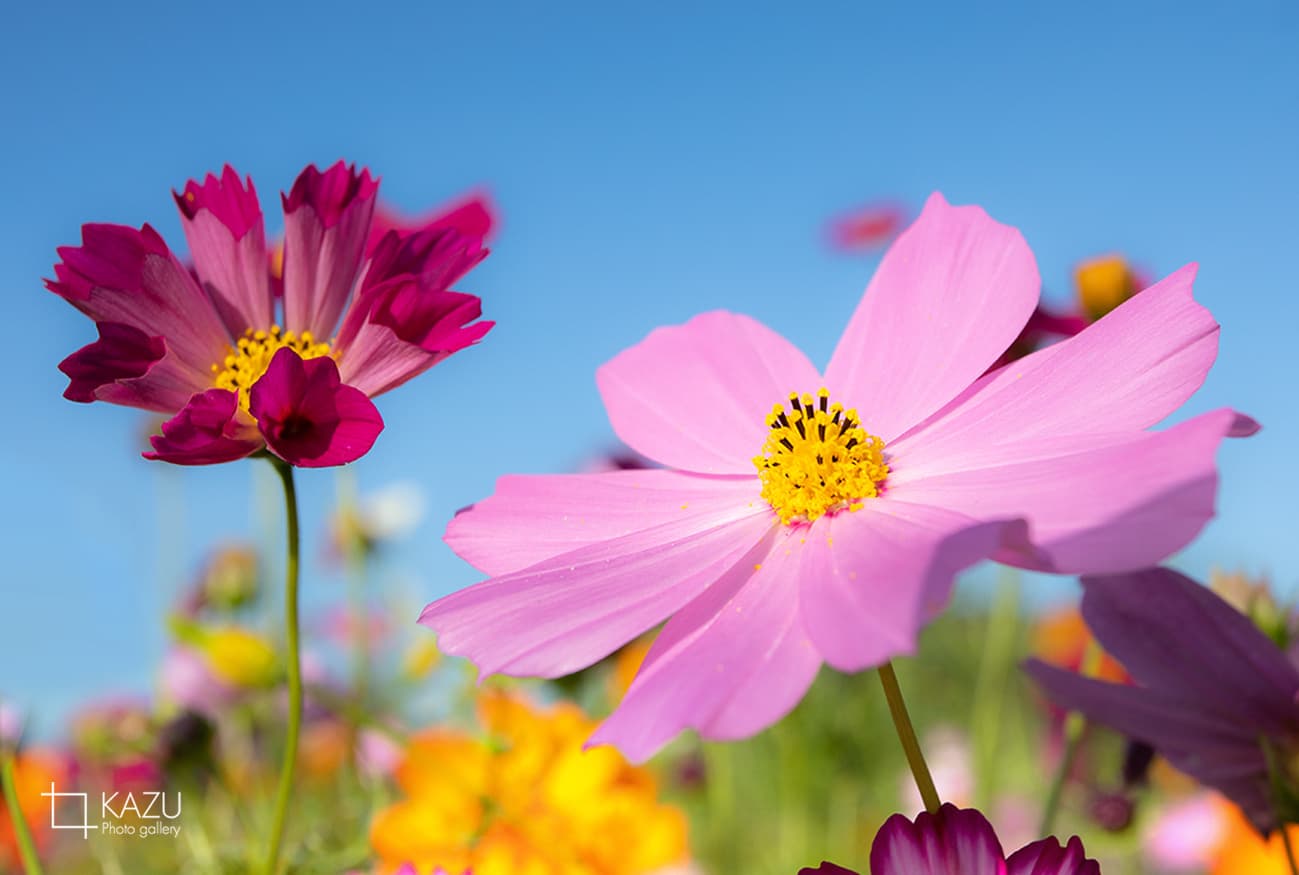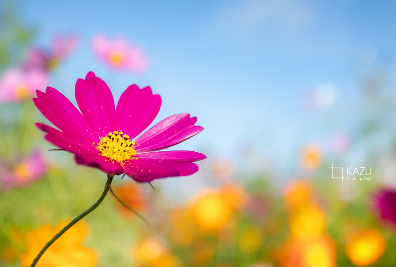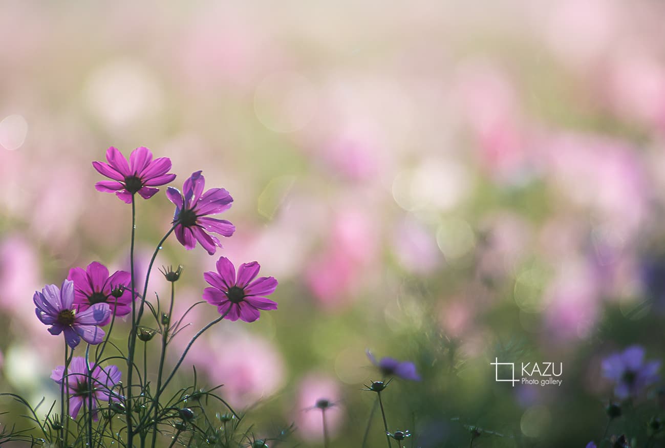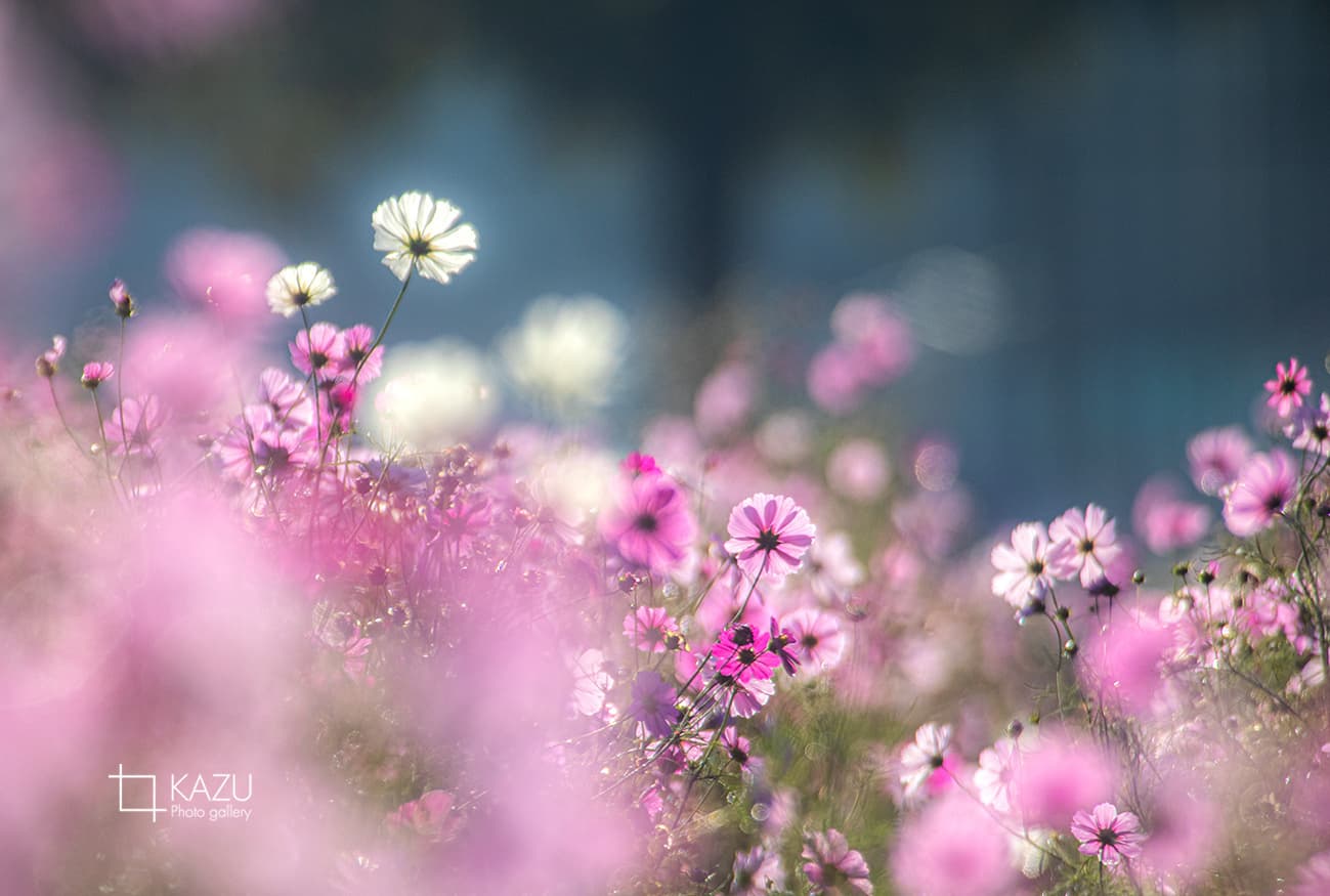 コスモスの摘み取りまであと5日、咲き終わった花など映り込むと汚いものをハサミで整理しながら写真を撮ってみましょう。