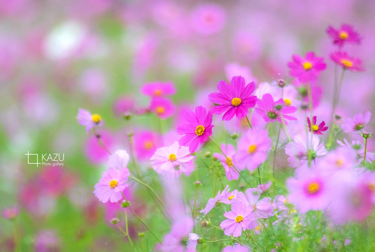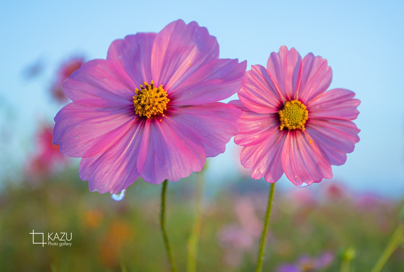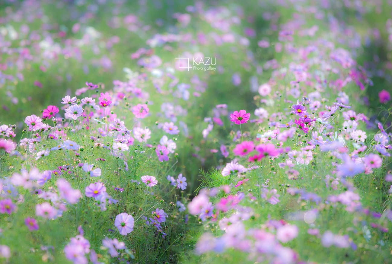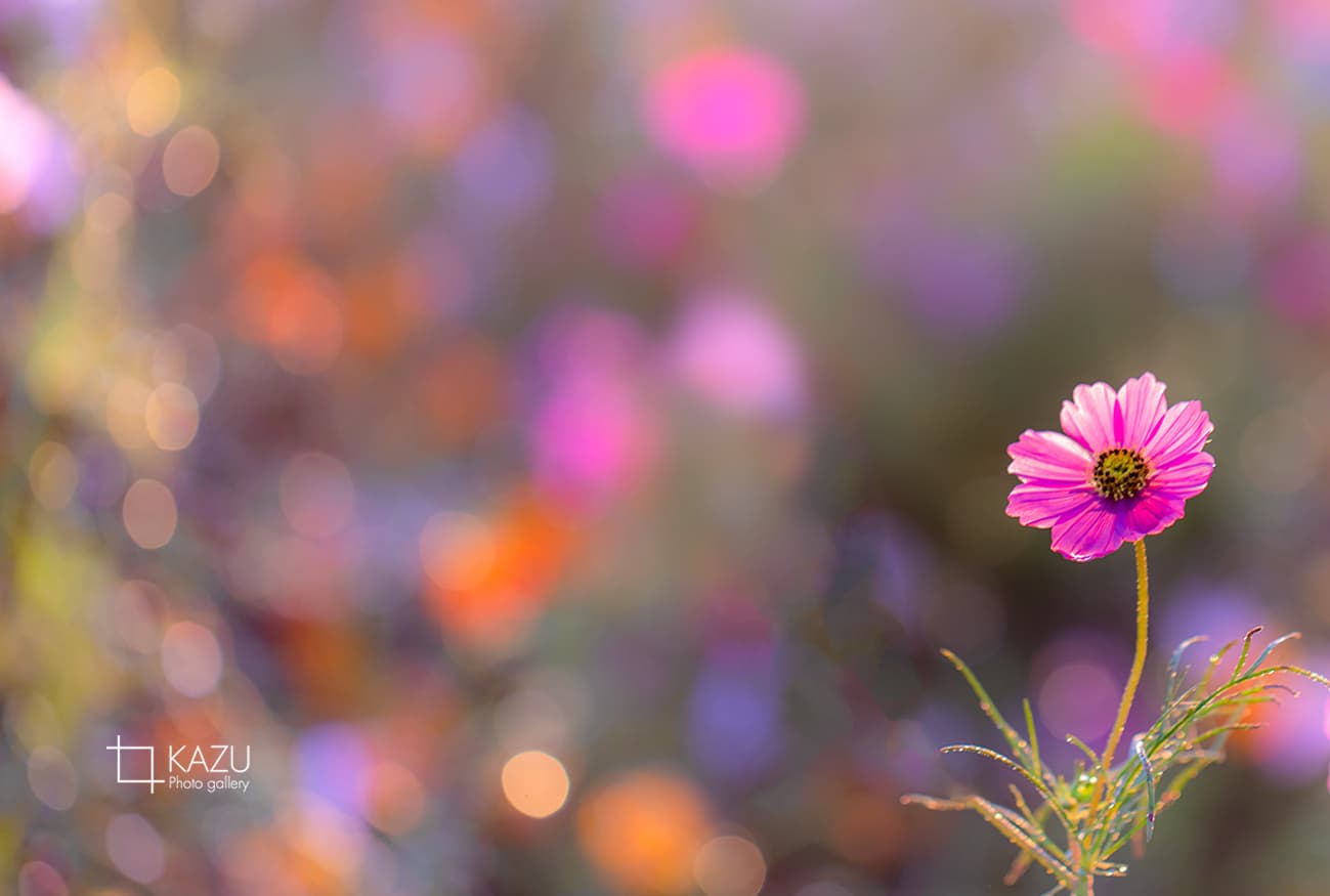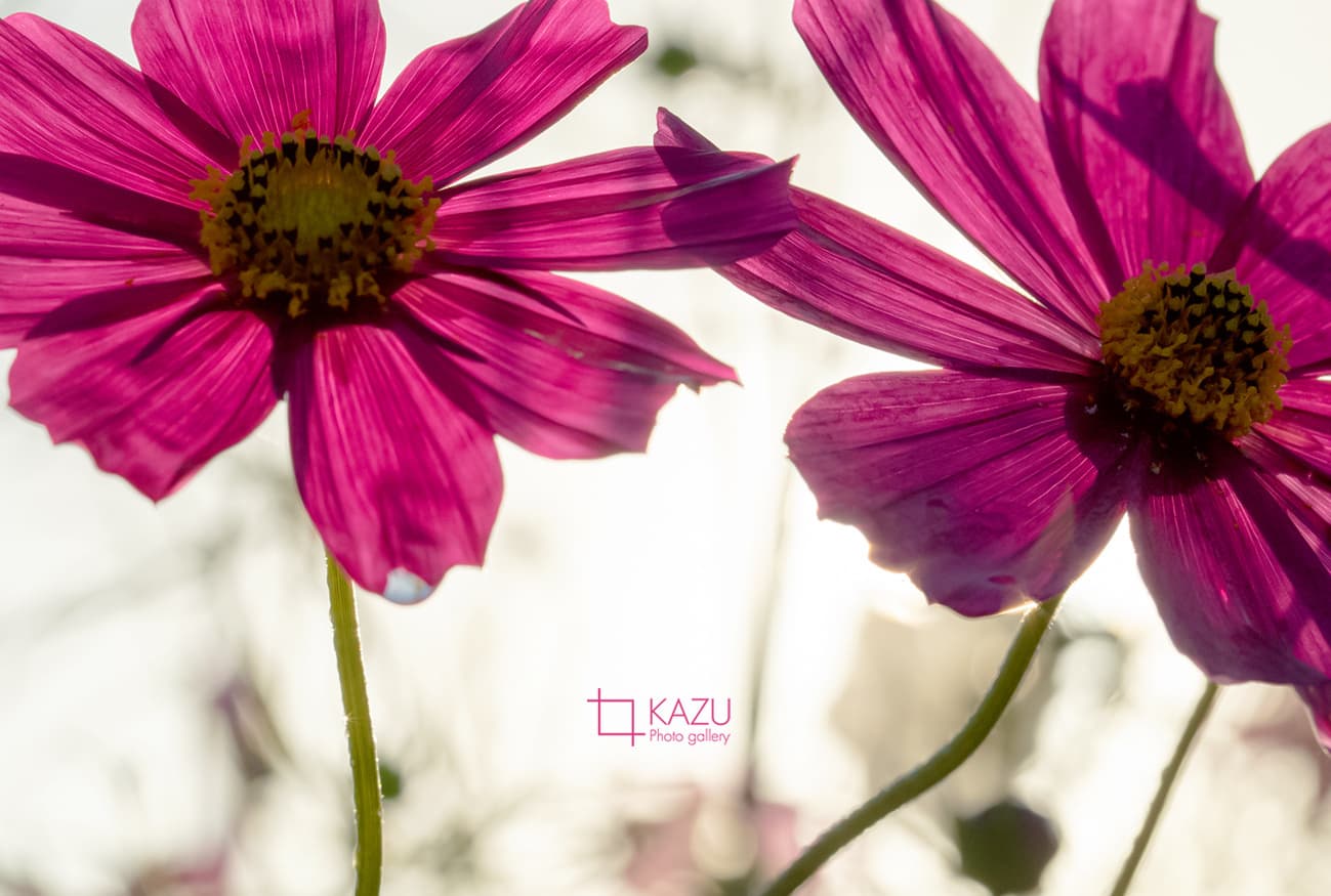 コスモスの摘み取りまであと5日、咲き終わった花など映り込むと汚いものをハサミで整理しながら写真を撮ってみましょう。