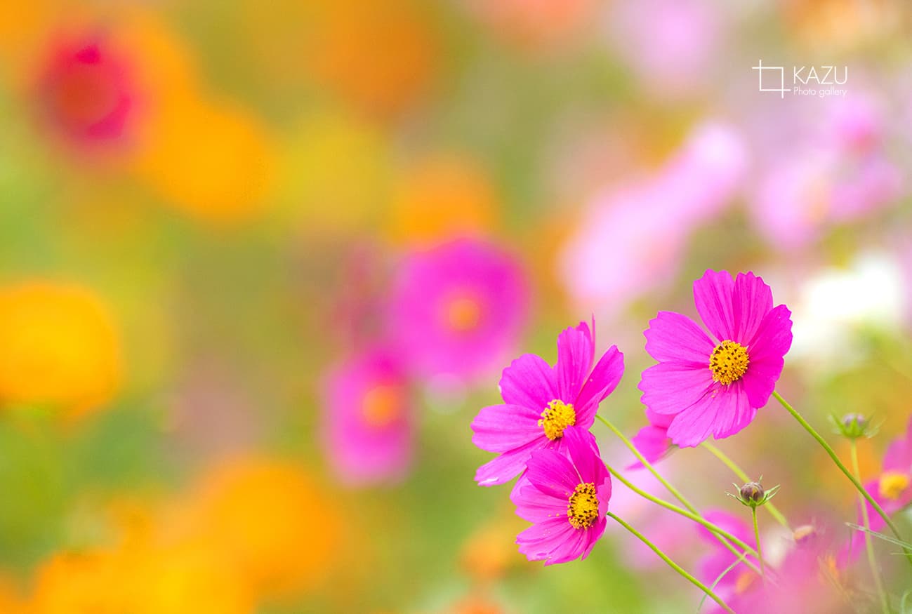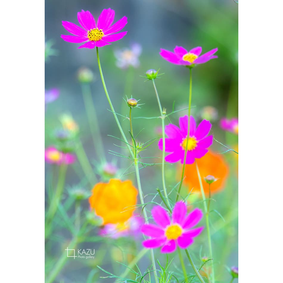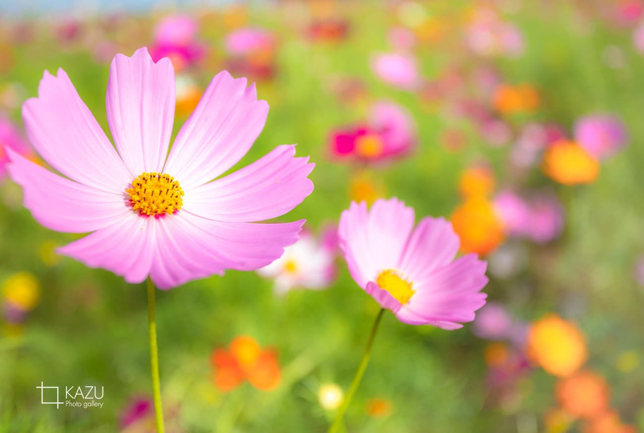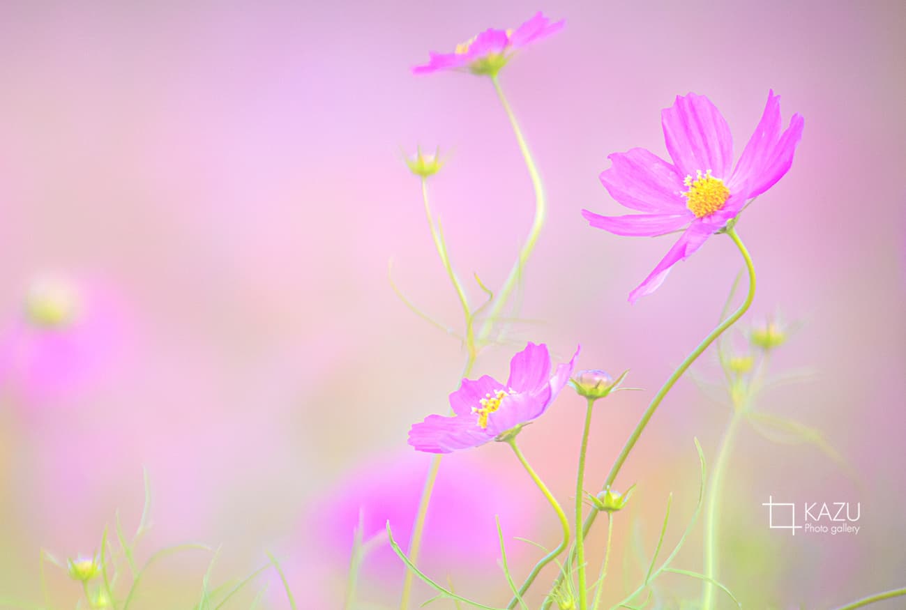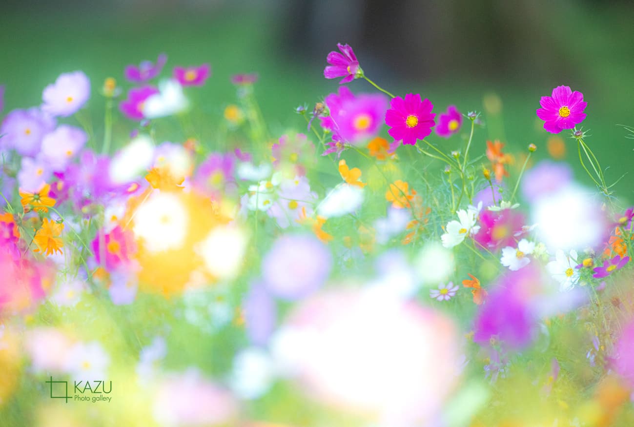 コスモスの摘み取りまであと5日、咲き終わった花など映り込むと汚いものをハサミで整理しながら写真を撮ってみましょう。