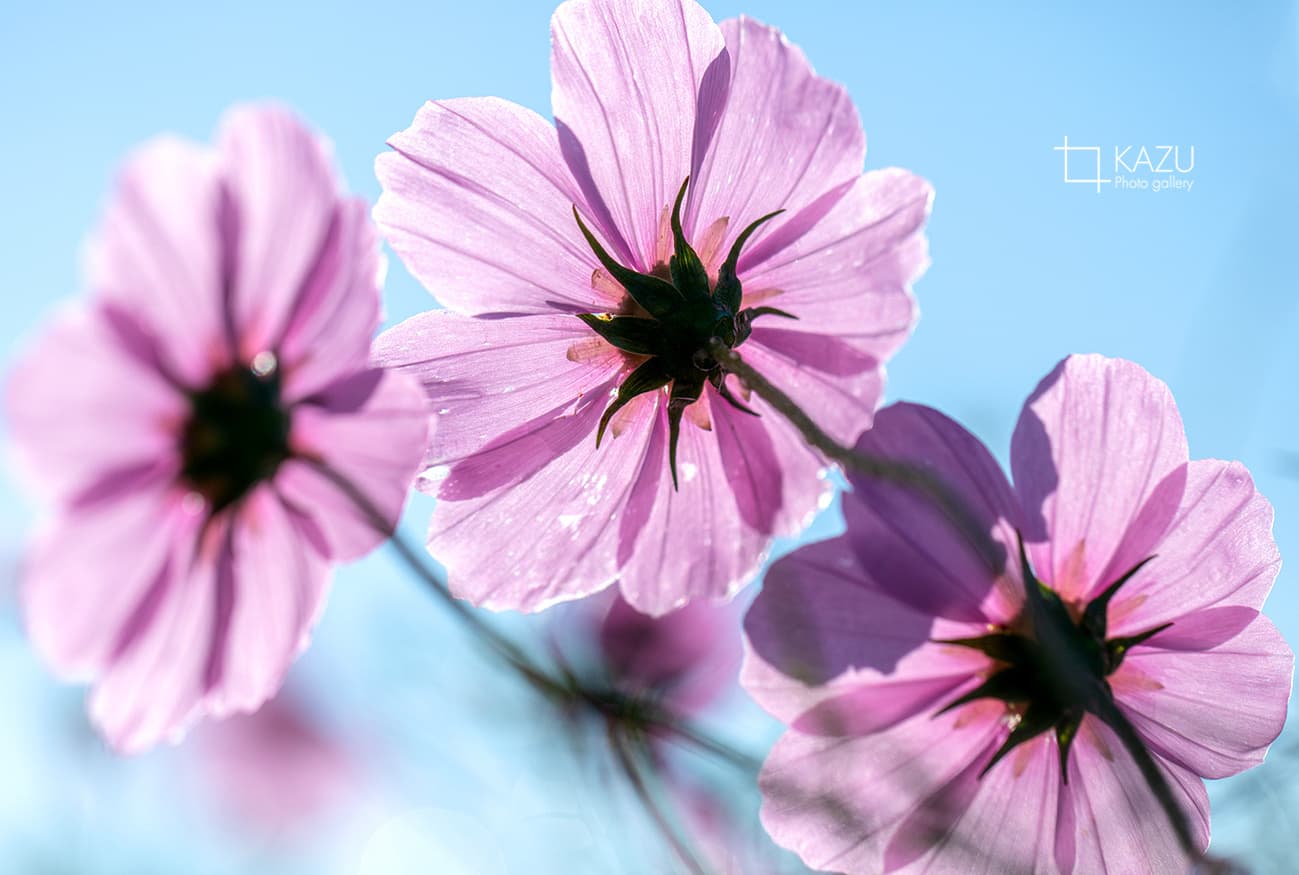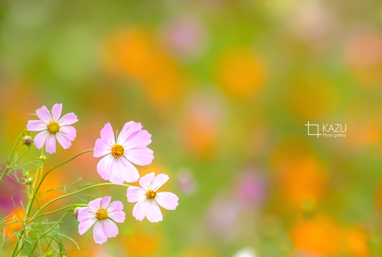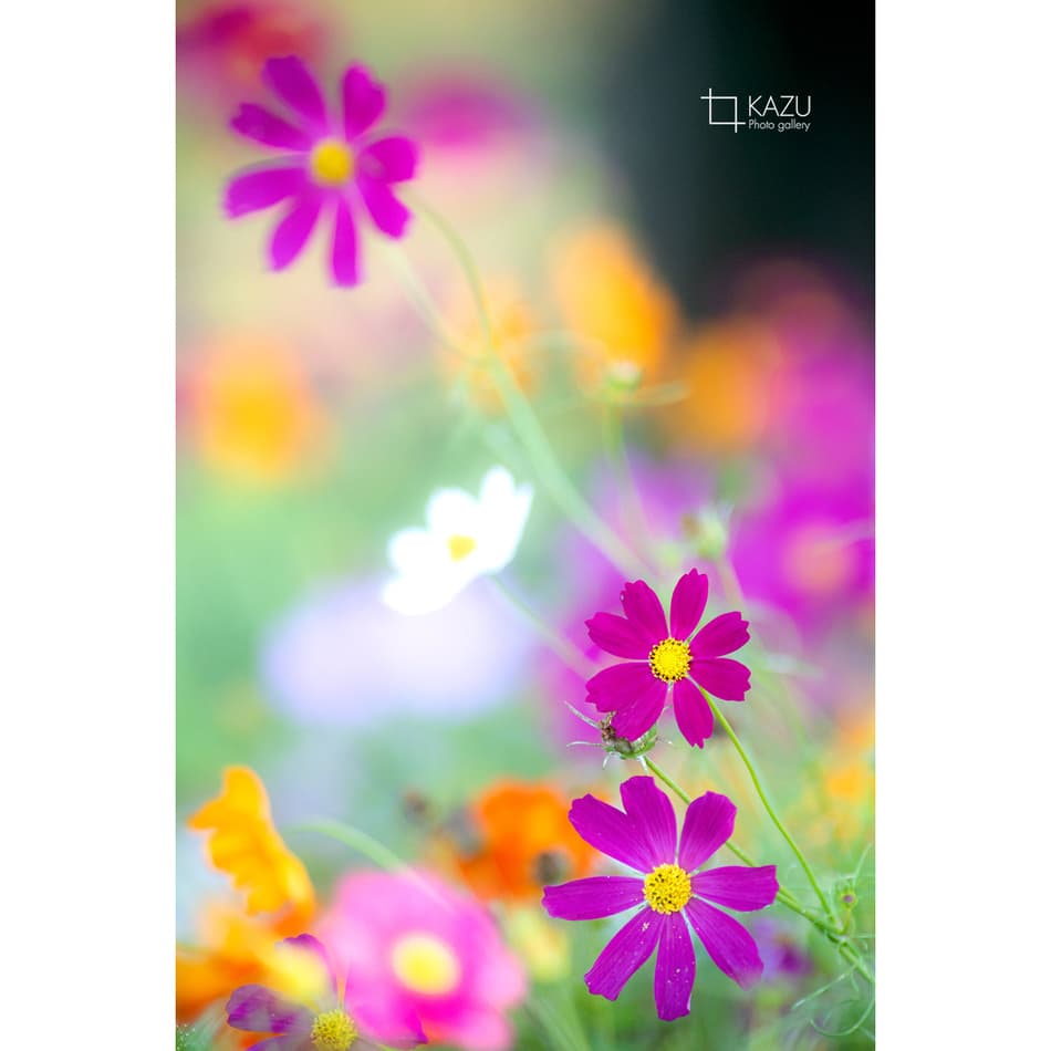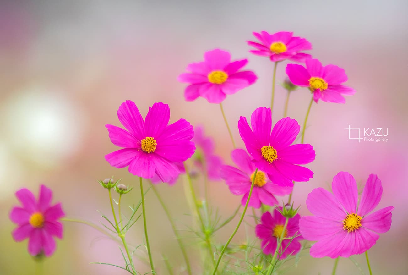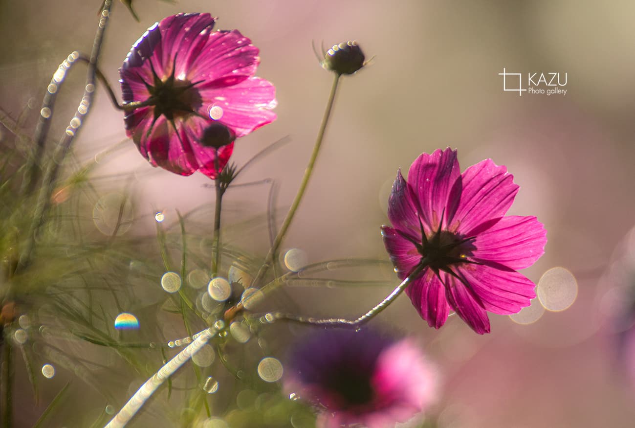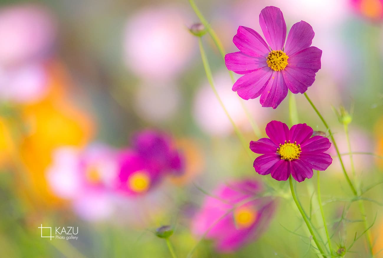 コスモスの摘み取りまであと5日、咲き終わった花など映り込むと汚いものをハサミで整理しながら写真を撮ってみましょう。