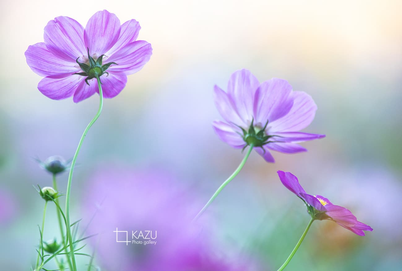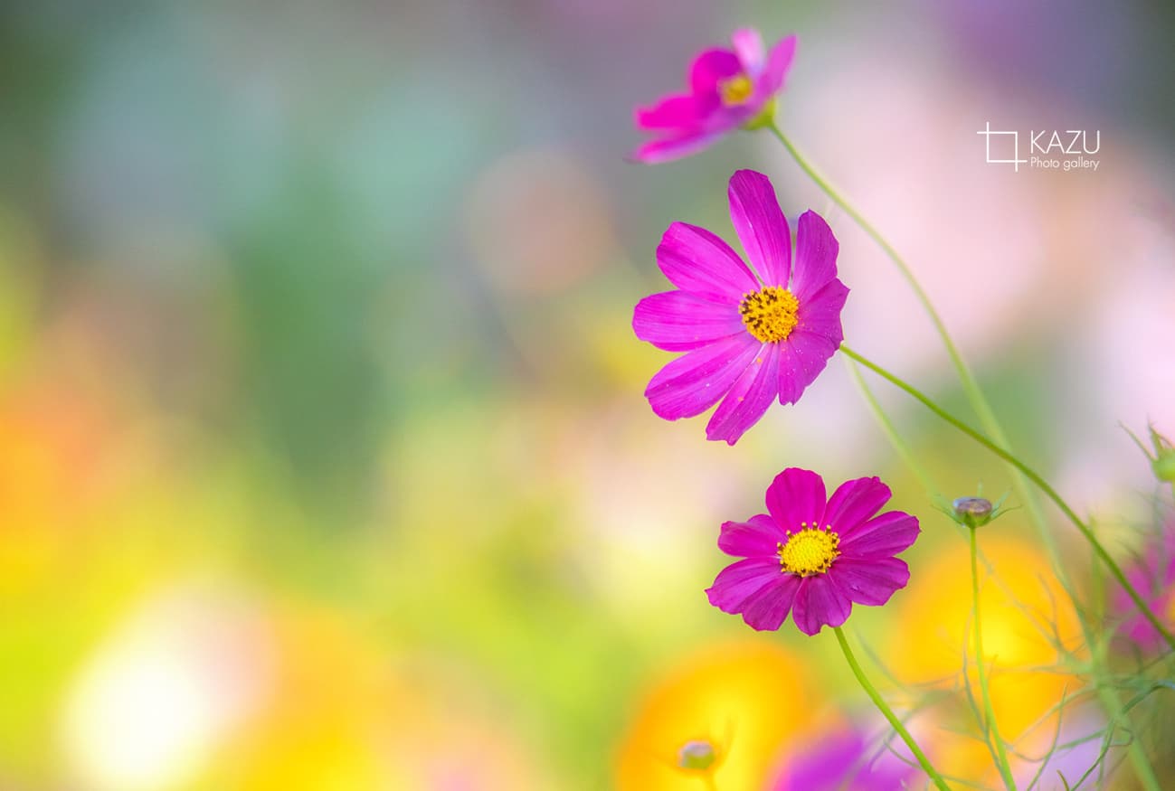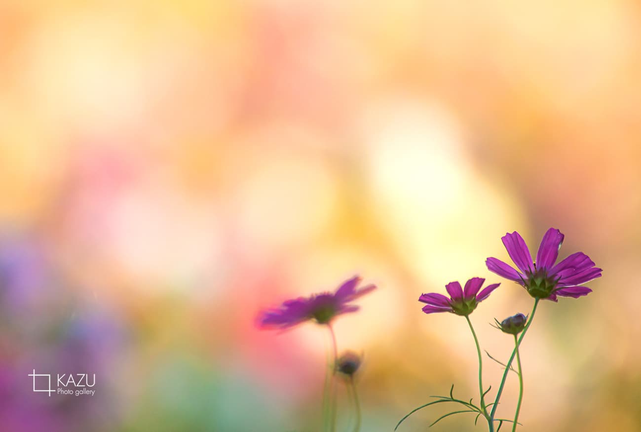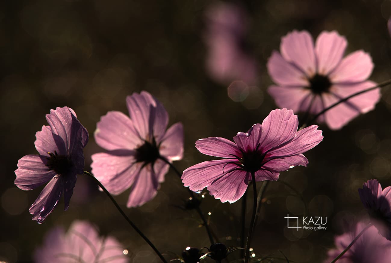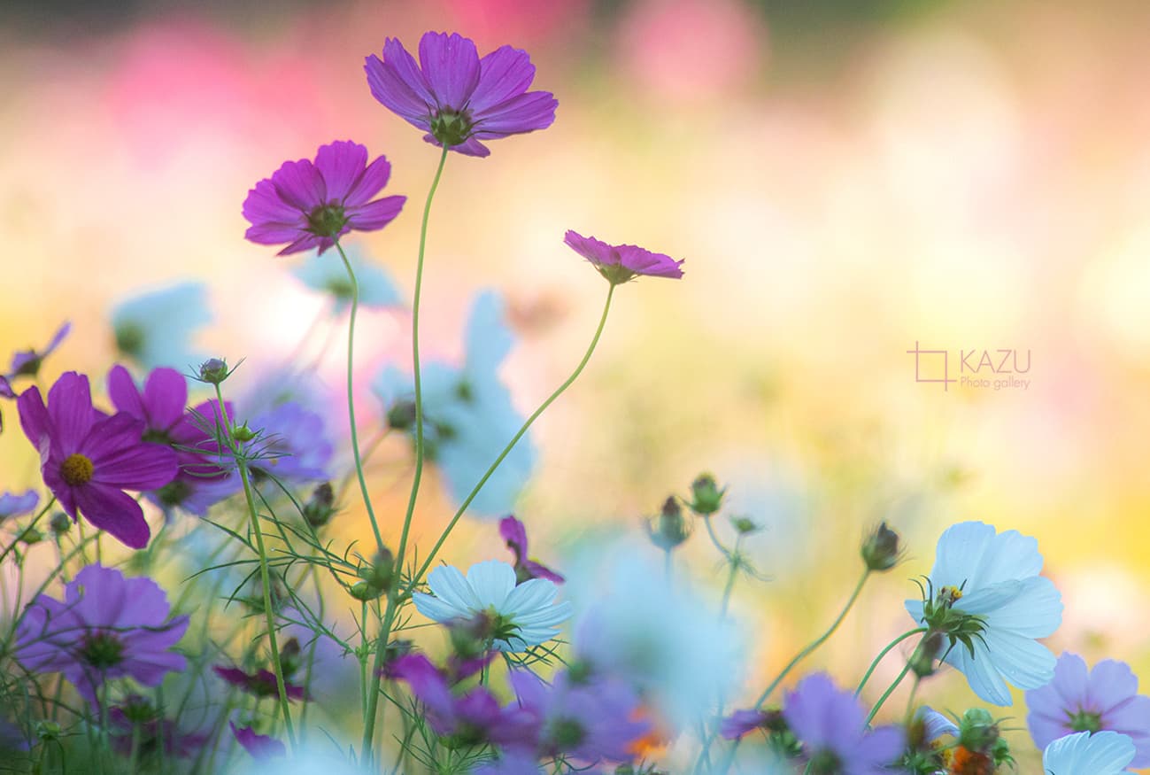 コスモスの摘み取りまであと5日、咲き終わった花など映り込むと汚いものをハサミで整理しながら写真を撮ってみましょう。