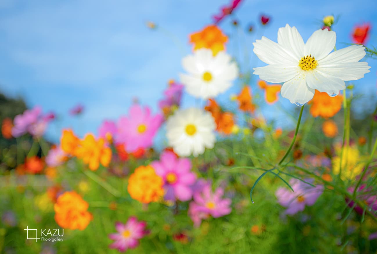 久しぶりの快晴です、コスモスが綺麗。今日から摘み取りOK明日でも摘み取りに行ってみましょう。