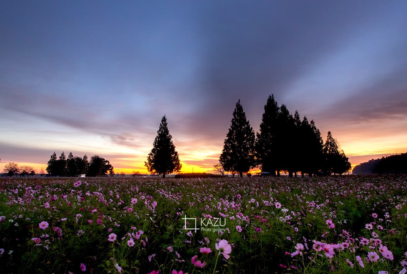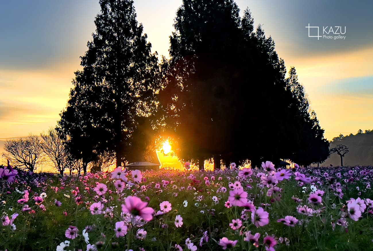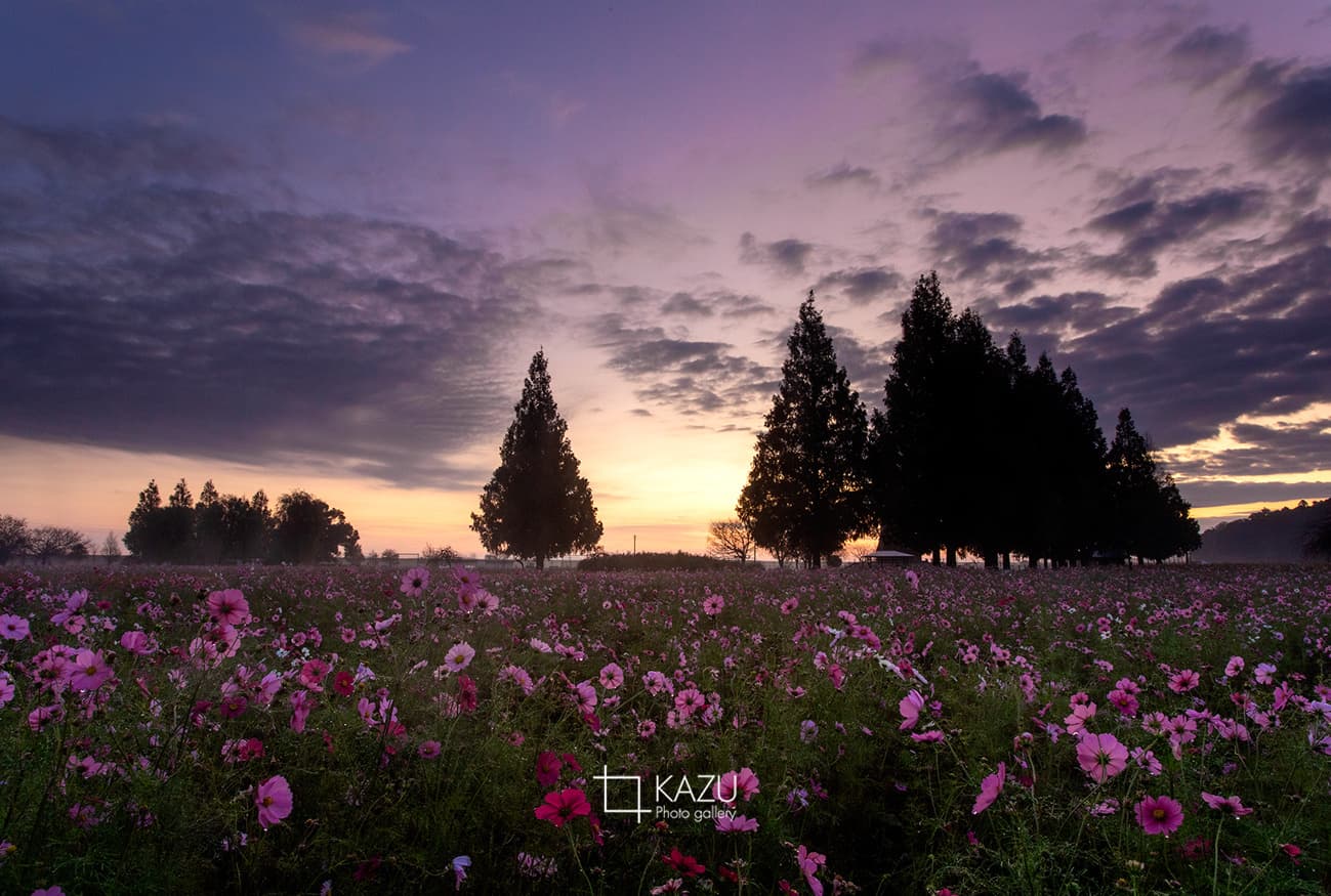 霧予報が出ていたので又々あけぼの山公園のコスモスまで、日の出前40分前、早いかなと思いながら行って見ると結構人がいました皆考えることは一緒です。