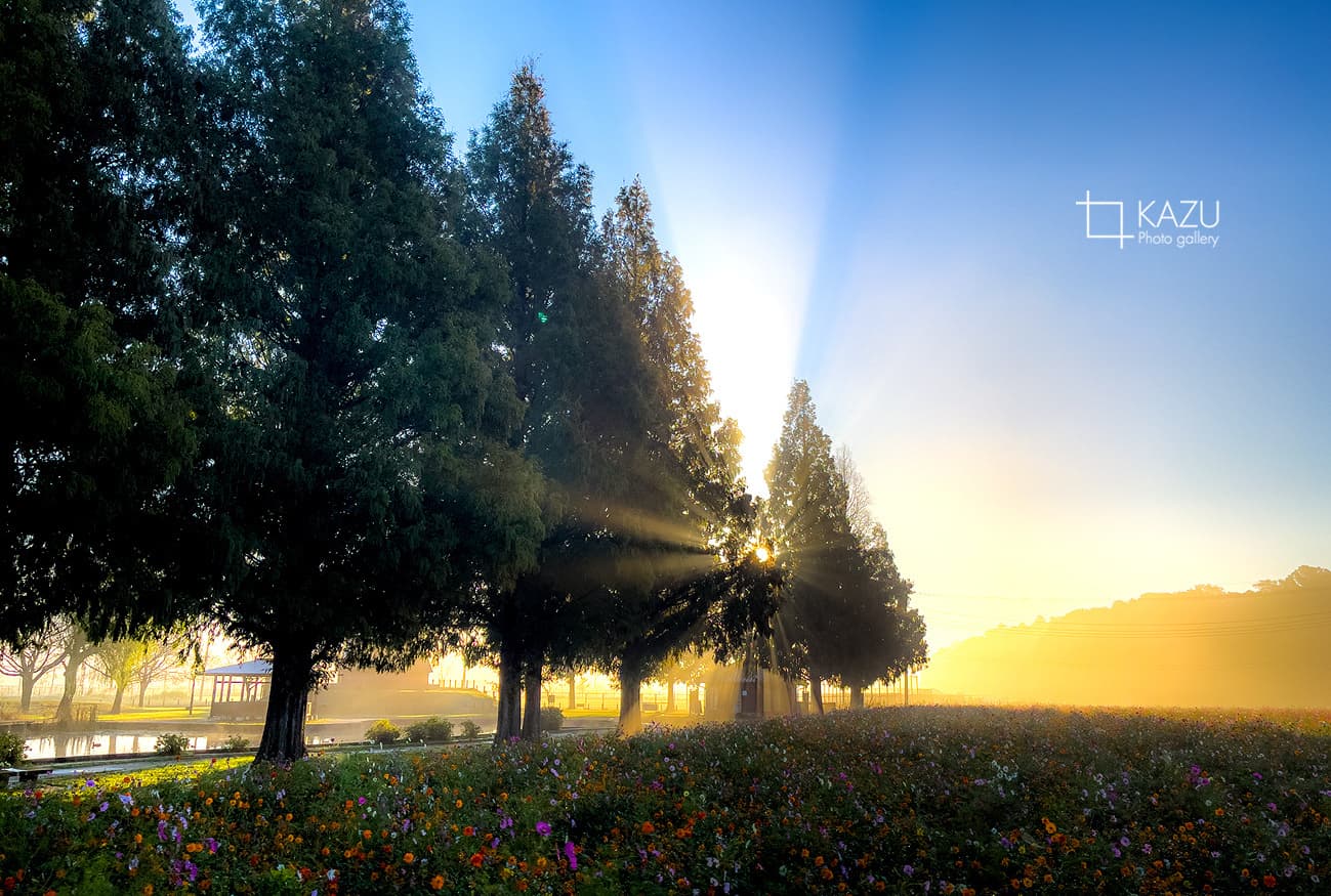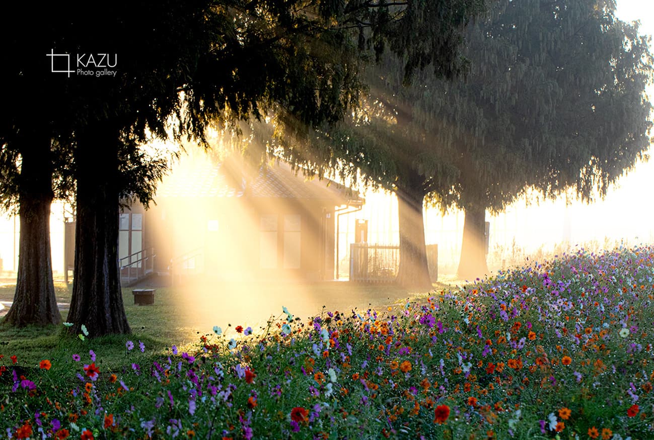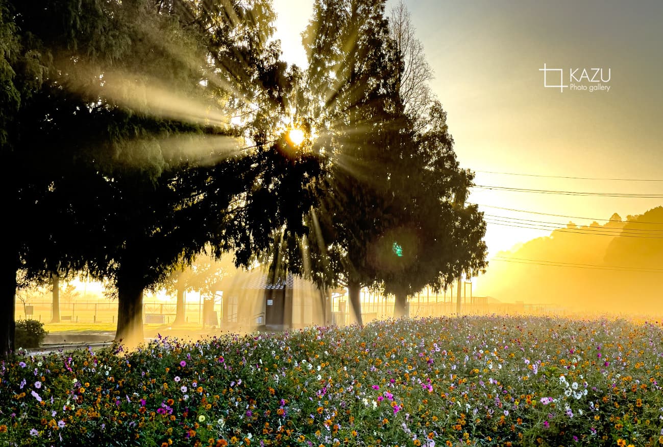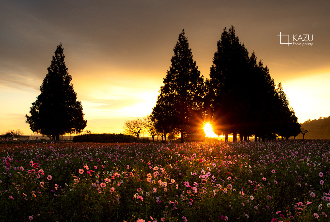 霧予報が出ていたので又々あけぼの山公園のコスモスまで、日の出前40分前、早いかなと思いながら行って見ると結構人がいました皆考えることは一緒です。